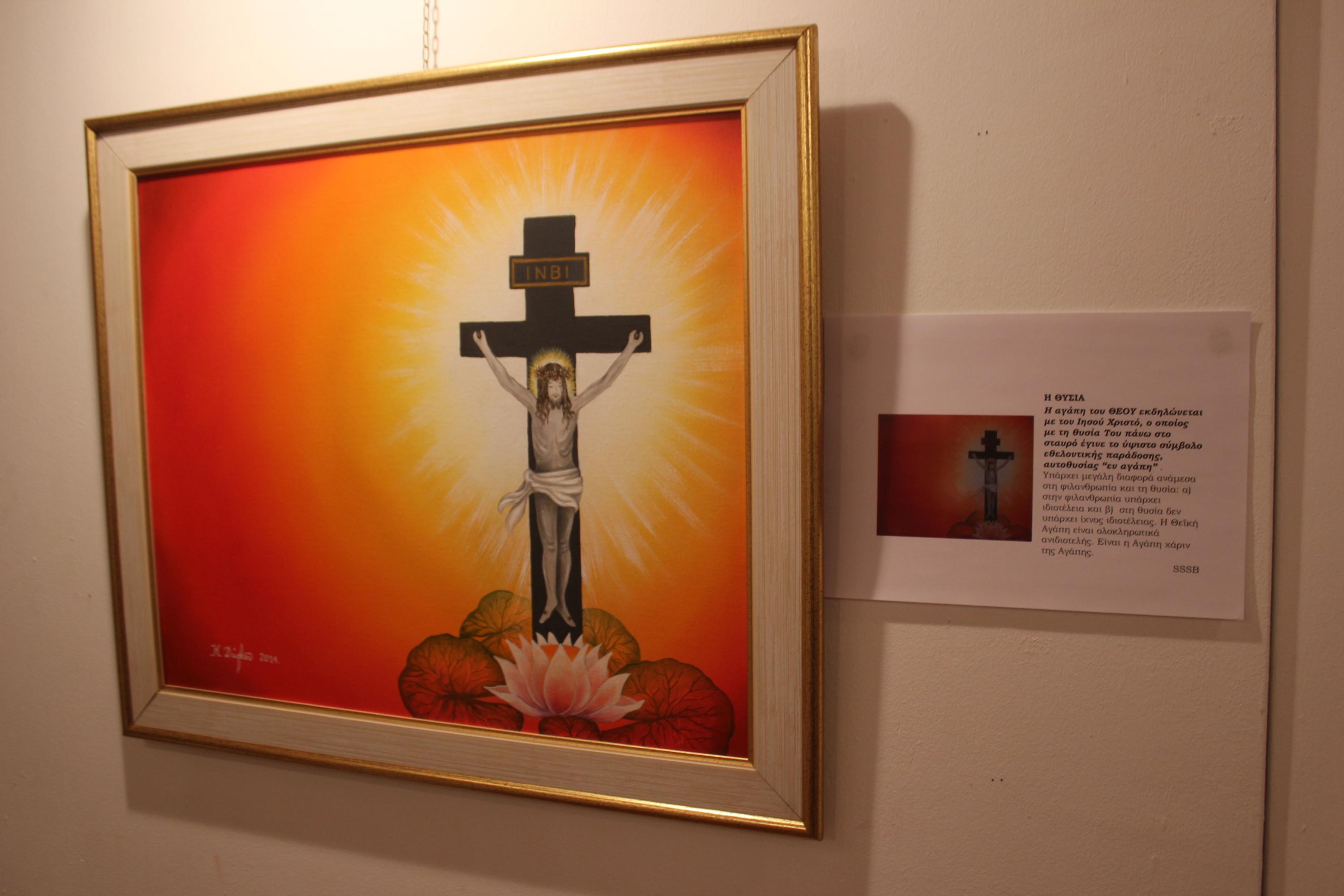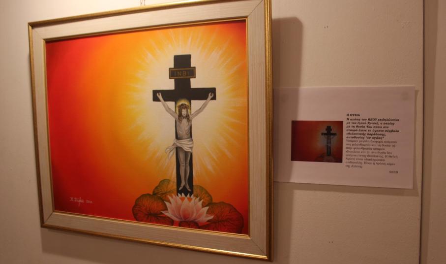 Η έκθεση ζωγραφικής με τίτλο "Η Θεϊκή παρέμβαση στον ανθρώπινο πόνο" φιλοξενείται στην αίθουσα "Εμμ. Ροίδη" στο Πνευματικό Κέντρο Σύρου – Ερμούπολης.