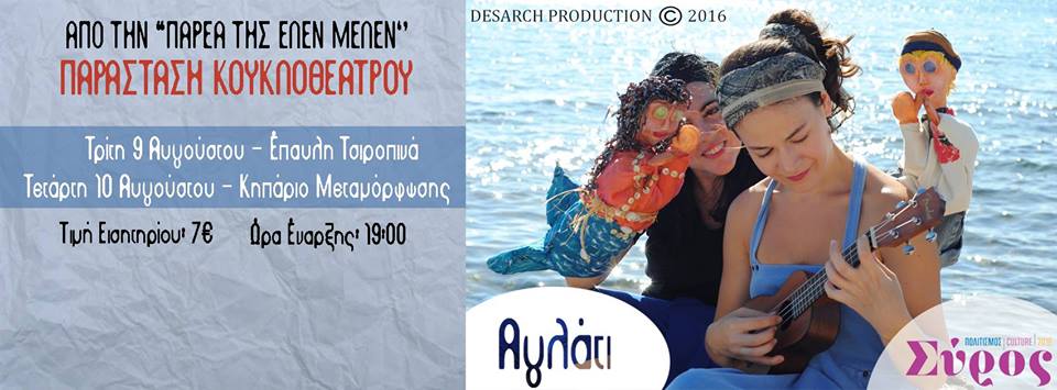Στο πλαίσιο των πολιτιστικών εκδηλώσεων του Δήμου Σύρου – Ερμούπολης «Σύρος – Πολιτισμός 2016», θα πραγματοποιηθεί παράσταση Κουκλοθεάτρου από την «παρέα της Έλεν Μελέν».