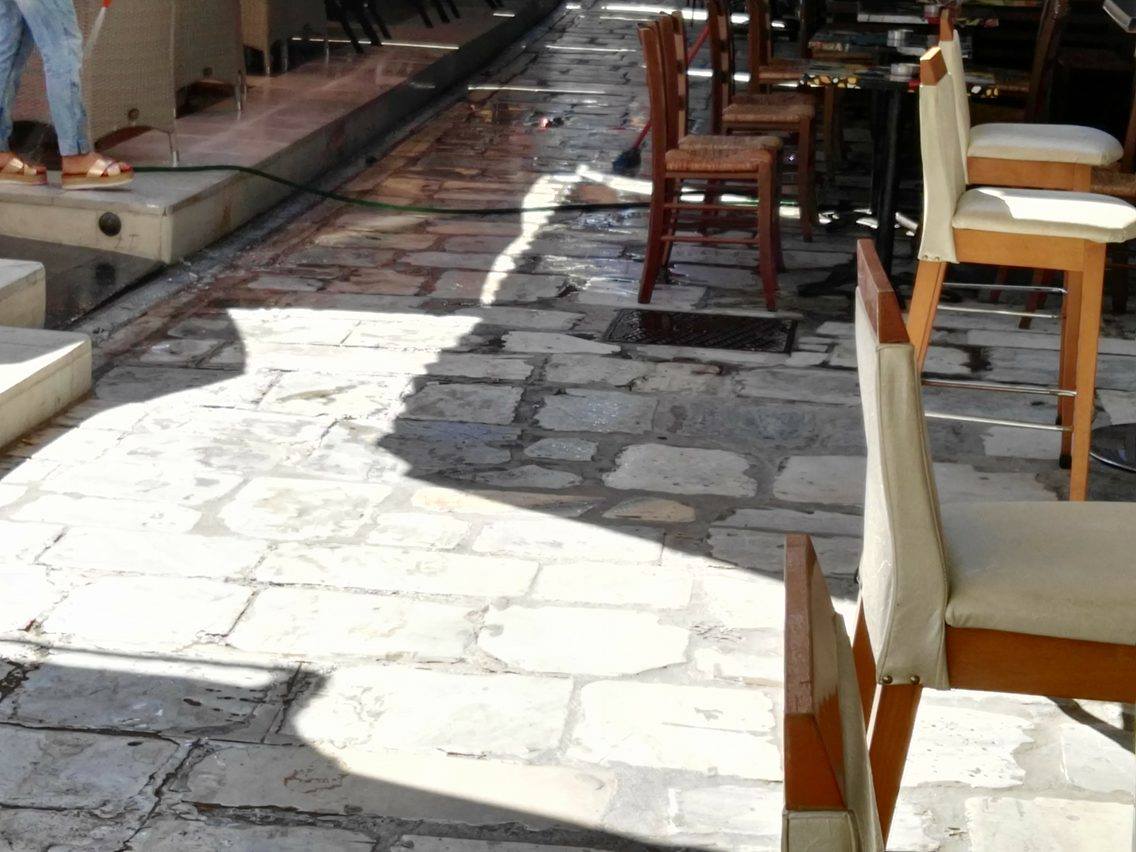 Αναπάντητο ωστόσο, μένει το θέμα του καταλληλότερου τρόπου καθαρισμού των πεζοδρομίων τους και των τμημάτων των προβολών τους, επί των οποίων αναπτύσσουν τα τραπεζοκαθίσματα, αλλά και του πώς θα μπορούσαν να μην “οδηγούνται” αυτά τα νερά στα μικρά φρεάτια.