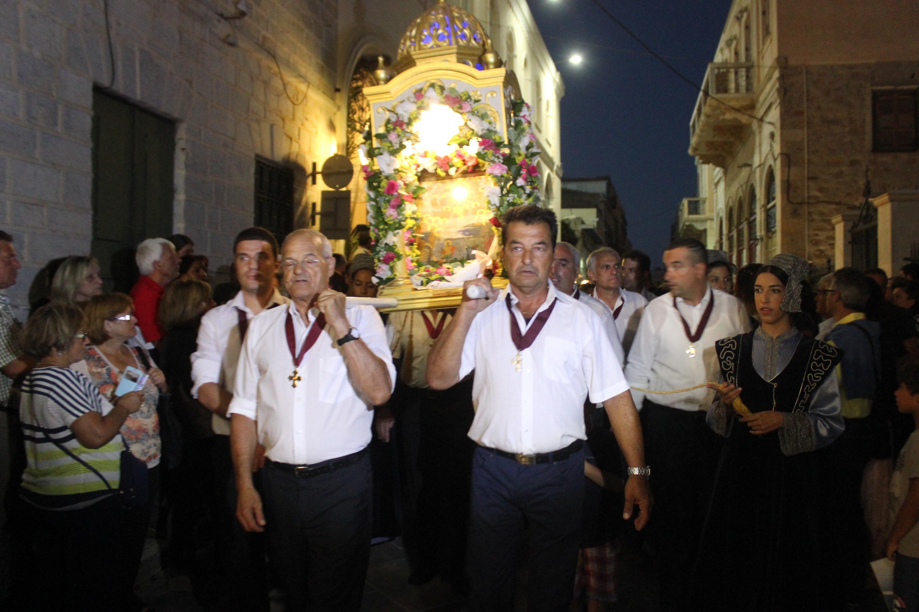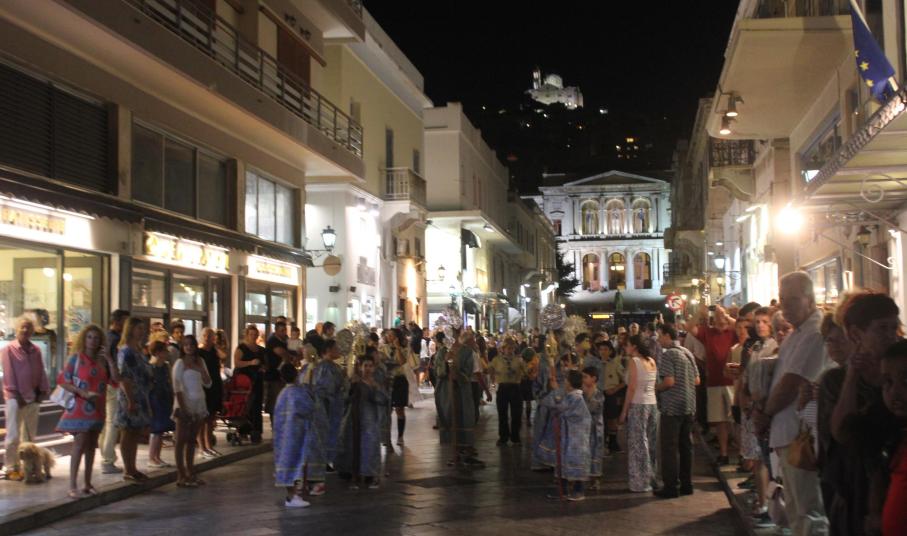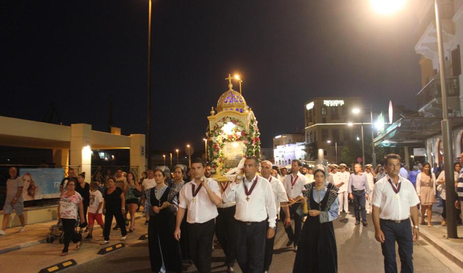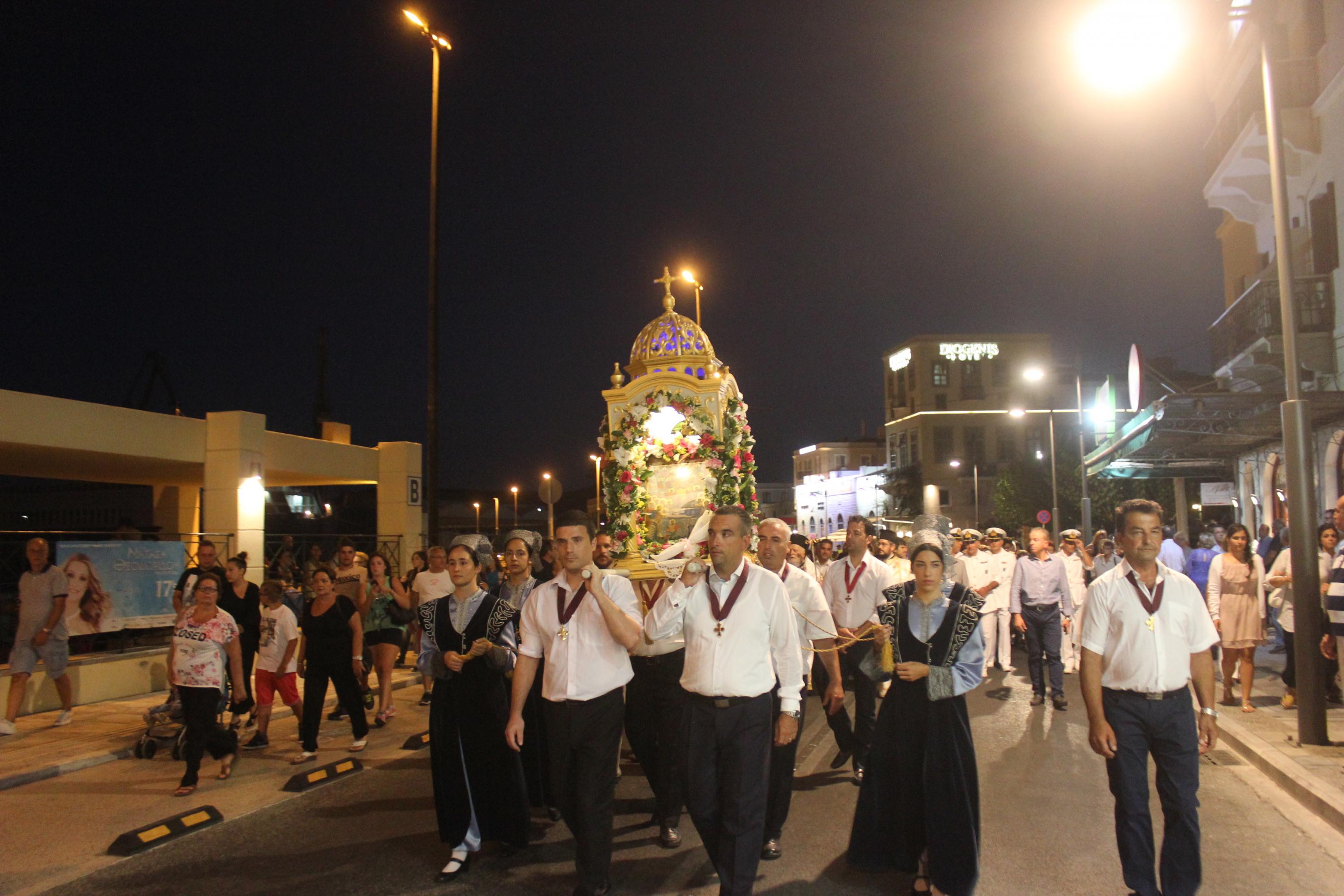Στη συνέχεια, πραγματοποιήθηκε η μεγαλοπρεπής λιτάνευση της Ιερής εικόνος στην παραλιακή οδό της Ερμούπολης, με τη συμμετοχή εκπροσώπων των τοπικών αρχών και πλήθους κόσμου, ο οποίος έσπευσε με ευλάβεια να προσκυνήσει τη χάρη της Παναγίας.