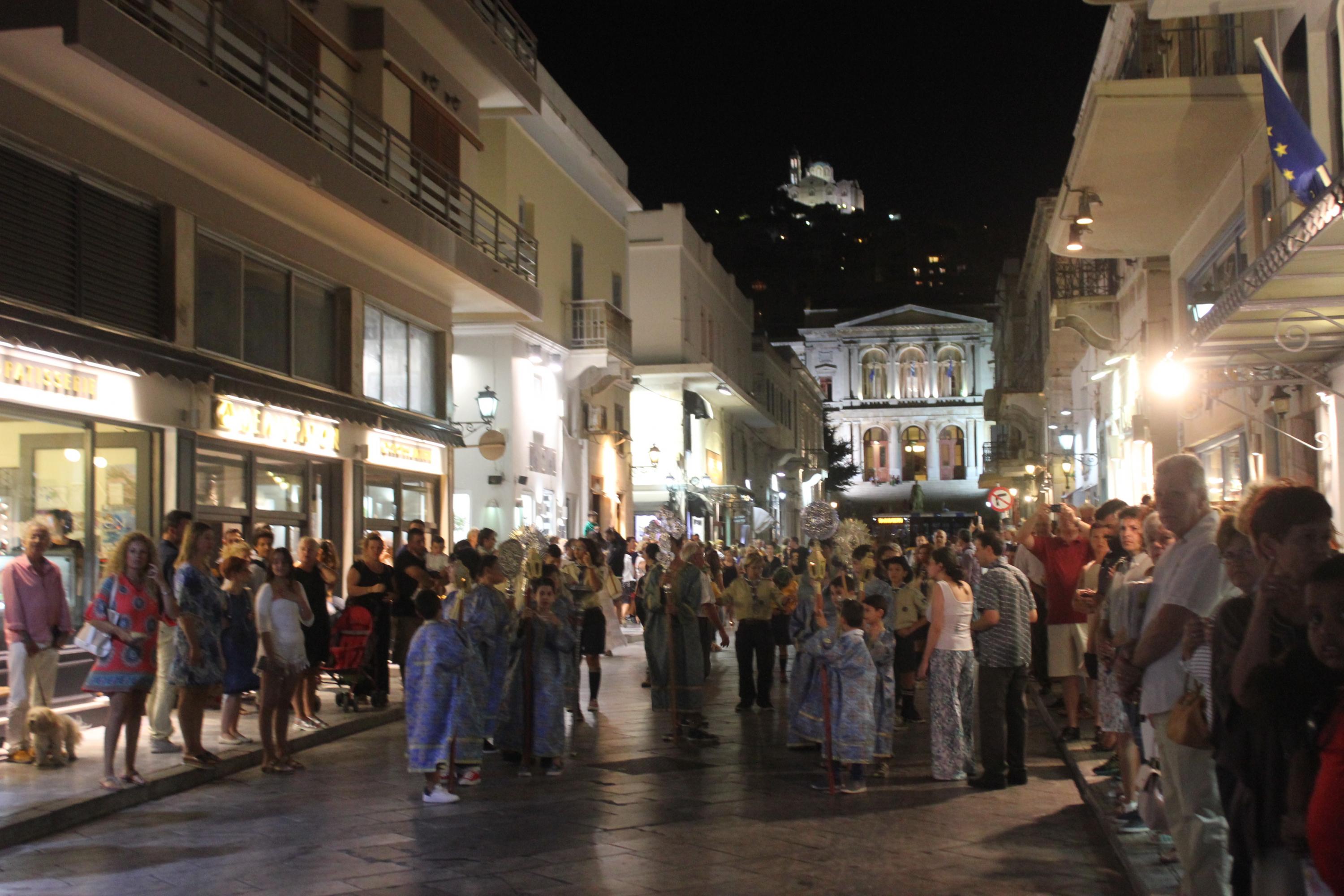 Με λαμπρότητα, κατάνυξη και τη συμμετοχή πλήθους πιστών εορτάστηκε και φέτος η Κοίμηση της Θεοτόκου στον ομώνυμο Ιερό Ναό της Ερμούπολης.