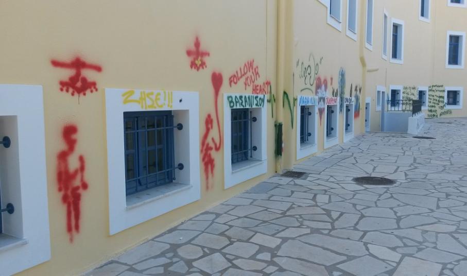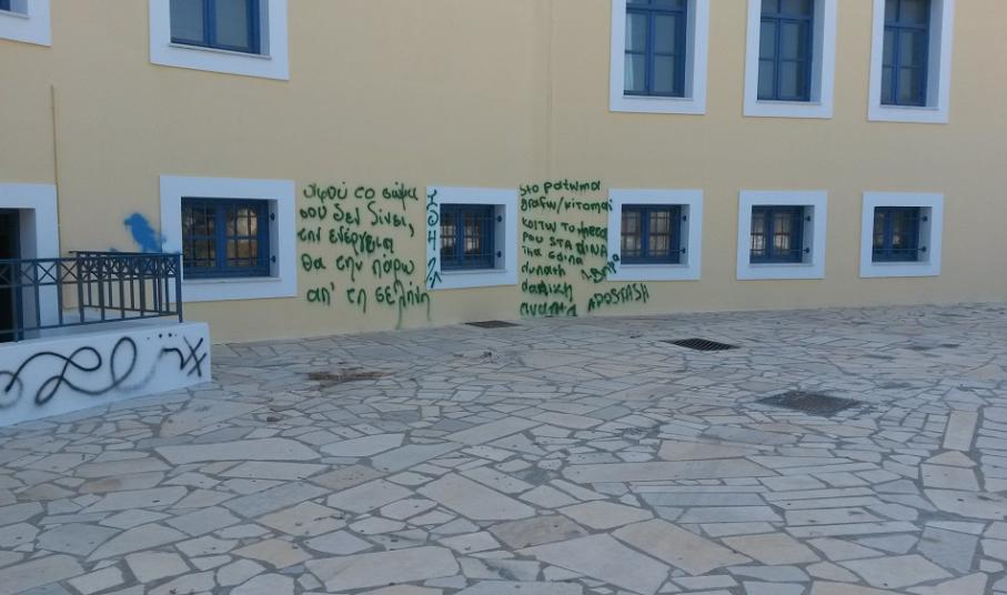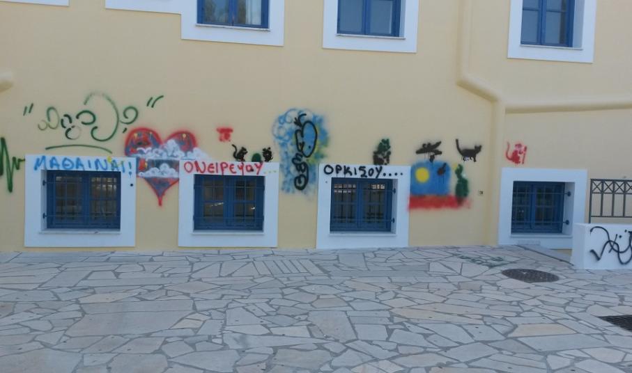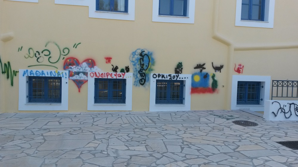 Μπροστά στην απαράδεκτη κατάσταση των γραμμένων τοίχων, στους οποίους μόλις είχαν ολοκληρωθεί οι ελαιοχρωματισμοί, για τη νέα εκπαιδευτική περίοδο που πρόκειται να ξεκινήσει τον επόμενο μήνα, βρέθηκε ο αρμόδιος αντιδήμαρχος, Τοτόμης Πρωτονοτάριος, ο οποίος πέραν της οργής του δεσμεύτηκε για τη λήψη μέτρων προς αποφυγή επανάληψης ανάλογων βανδαλισμών.