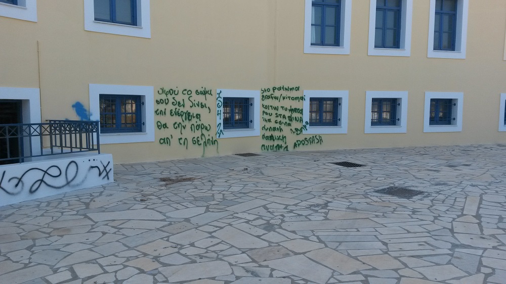 Όπως ο ίδιος ο αντιδήμαρχος αναφέρει για το γεγονός “Τη Δευτέρα 22 Αυγούστου, κατά τη διάρκεια επίσκεψης στο Γενικό Λύκειο Νάξου για την παρακολούθηση των εργασιών συντήρησης και ελαιοχρωματισμού του σχολείου, με μεγάλη αγανάκτηση διαπιστώσαμε βανδαλισμούς στους φρεσκοβαμμένους τοίχους.