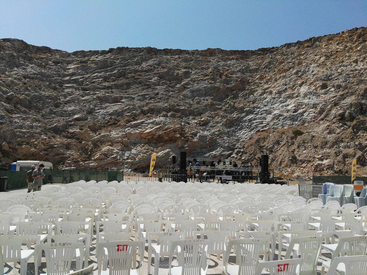 Με απόφασή της, η Οικονομική Επιτροπή του Δήμου Σύρου – Ερμούπολης, κατόπιν γνωμοδότησης και της Επιτροπής Πολιτισμού είχε ενημερώσει από τις 25/5/2016 τους άμεσα ενδιαφερόμενους ιδιώτες – εργολάβους σχετικά με το ότι πρέπει να απομακρύνουν άμεσα τα υλικά που τοποθέτησαν χωρίς τη λήψη άδειας ή κάποιας απόφασης μίσθωσης χώρου, με πρώτιστο μέλημα της δημοτικής πλευράς τη διαφύλαξη του πολιτιστικού χώρου, στον οποίο και διεξάγεται μεγάλο κομμάτι του πολιτιστικού προγράμματος του Δήμου κάθε καλοκαίρι και δη, συναυλίες με σημαντικούς καλλιτέχνες.