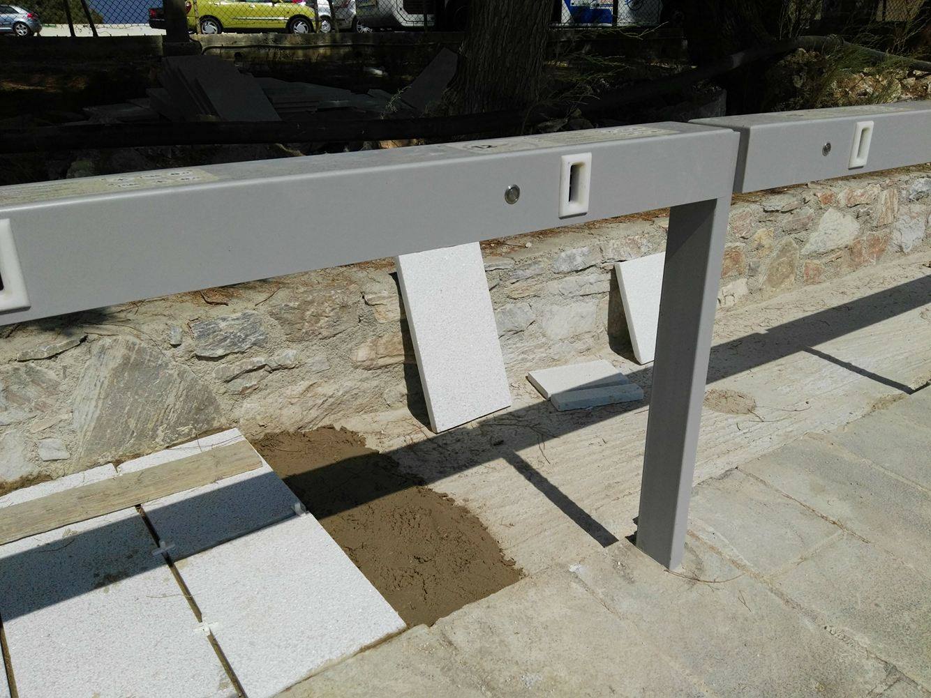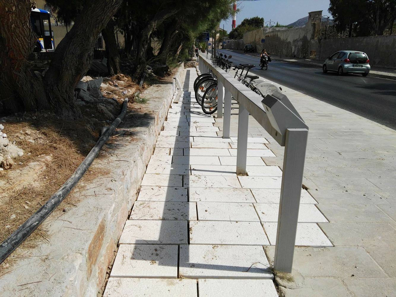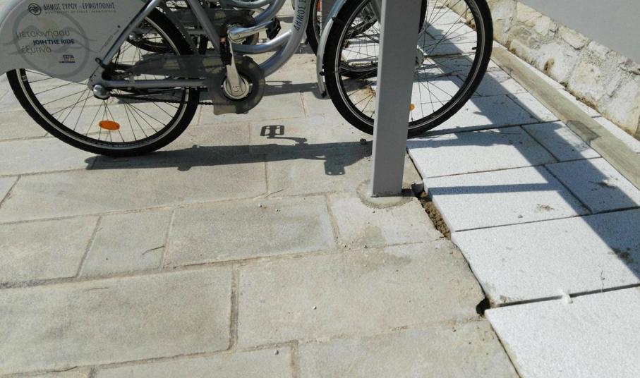 Στην τοποθέτηση μαρμάρινων πλακών που έλειπαν από μεγάλο τμήμα της επιφάνειας που δημιουργήθηκε ο ποδηλατικός σταθμός πλησίον του σούπερ μάρκετ “Μαρινόπουλος” και επί του πεζοδρομίου προχώρησε ο Δήμος Σύρου – Ερμούπολης, με τις σχετικές εργασίες να βρίσκονται σε εξέλιξη.
