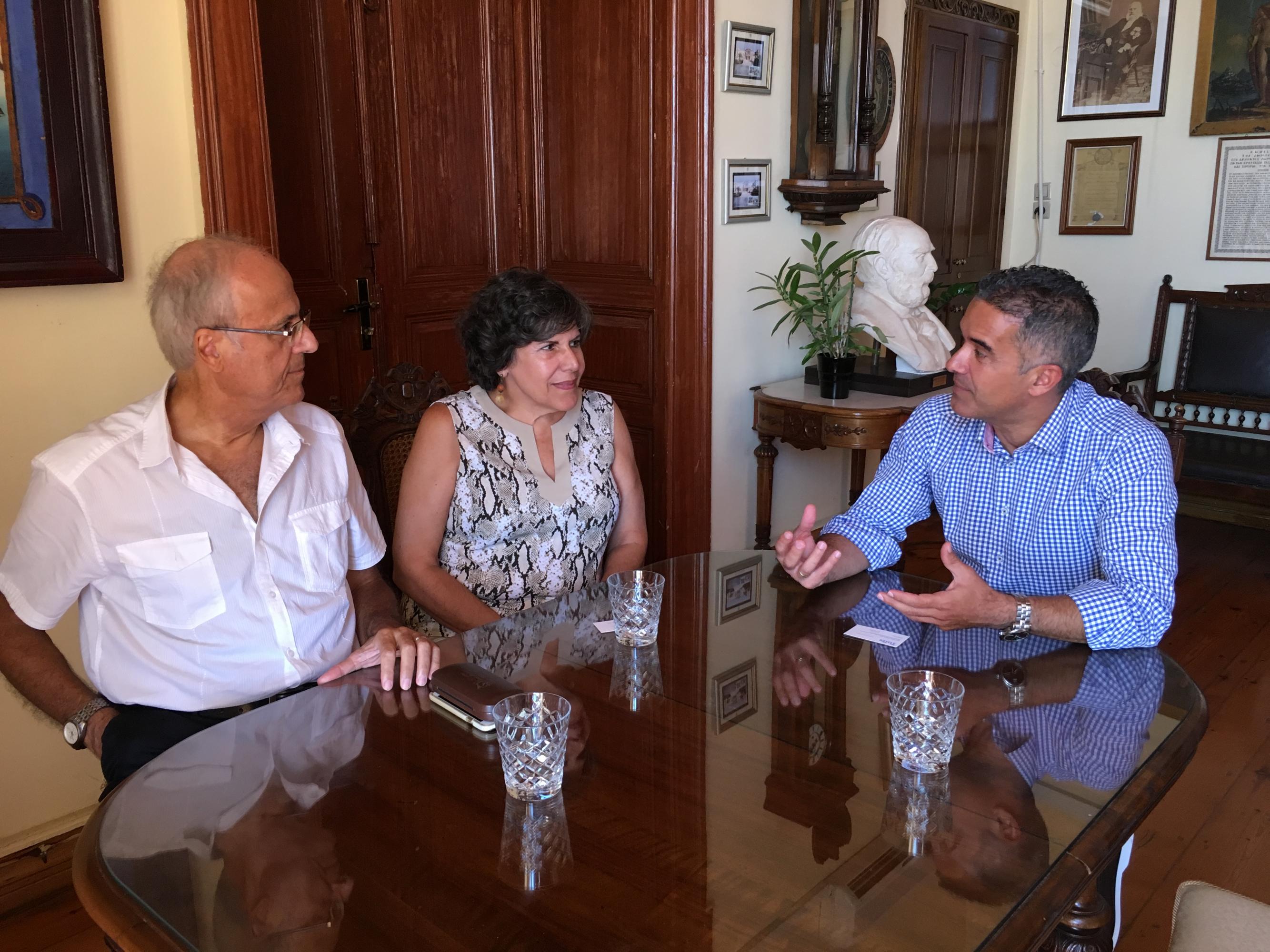 Συνάντηση πραγματοποιήθηκε σήμερα, 2 Σεπτεμβρίου 2016, μεταξύ του Δημάρχου Σύρου – Ερμούπολης, κ. Γιώργου Μαραγκού, της Συριανής Καθηγήτριας του Τμήματος Χημικής και Βιολογικής Μηχανικής του Πανεπιστημίου Tufts της Μασαχουσέτης, κας Μαρίας Φλυτζάνη – Στεφανοπούλου, και του διακεκριμένου ερευνητή και καθηγητή του Τμήματος Χημικών Μηχανικών του Τεχνολογικού Ινστιτούτου της Μασαχουσέτης (ΜΙΤ), κ. Γρηγόρη Στεφανόπουλου.
