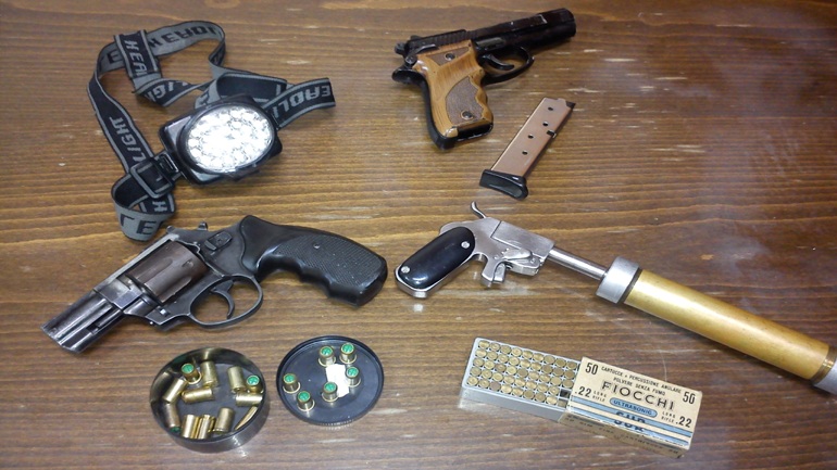 Την 01-09-2016 το απόγευμα συνελήφθησαν στη Θήρα, από αστυνομικούς του Αστυνομικού Τμήματος Θήρας, δυο ημεδαποί ηλικίας 73 και 46 ετών γιατί ύστερα από έρευνα που έγινε στην κατοικία τους βρέθηκαν και κατασχέθηκαν 3 ξίφη, 2 ξύλινα τόξα, 9 μαχαίρια, 4 σουγιάδες, μεταλλική βαλλίστρα, 3 αεροβόλα τυφέκια και αεροβόλο πιστόλι.