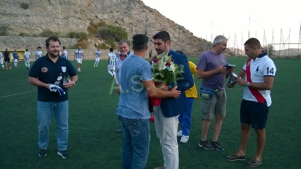 Τέλος, κατά τη διάρκεια των αγώνων της πρώτης ημέρας οι διοικήσεις και των τριών ομάδων που πήραν μέρος τίμησαν έναν αθλητή ο οποίος έχει φορέσει τόσο την φανέλα του Α.Ο. Σύρου όσο και του Α.Ο. Καράβα και του Πάγου. Ο Λεονάρδος Πρίντεζης έχει προσφέρει τις υπηρεσίες του και στις τρεις αυτές ομάδες και τα σωματεία θέλησαν με τον τρόπος τους να του που κι αυτά ένα ευχαριστώ.