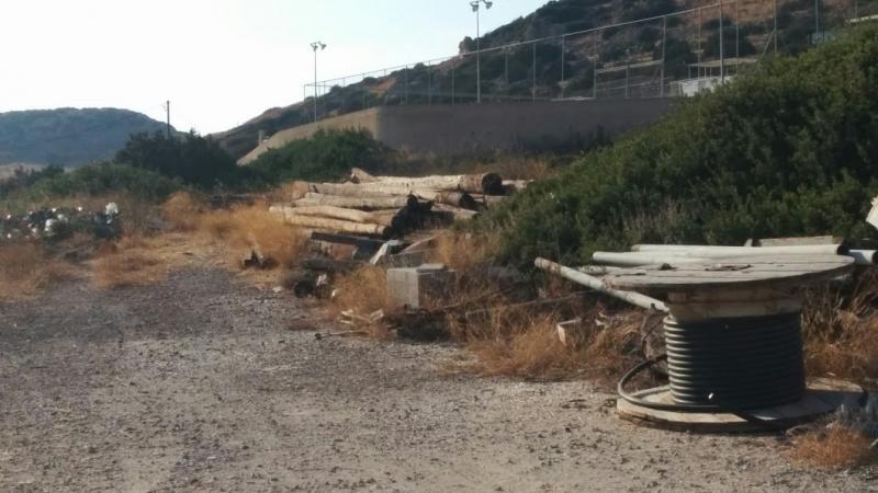 Εδώ και χρόνια χρησιμοποιείτε οικόπεδο ιδιοκτησίας σας στην περιοχή Καταφιά Πάγου, δίπλα στα Δημοτικά Σφαγεία, ως χώρο ελεύθερης εναπόθεσης και αποθήκευσης υλικών του ΔΕΔΔΗΕ (καλώδια με πλαστική επένδυση και ξύλινα καρούλια, κολόνες εμποτισμένες με πίσσα, ξερόκλαδα, μπάζα κ.α.).