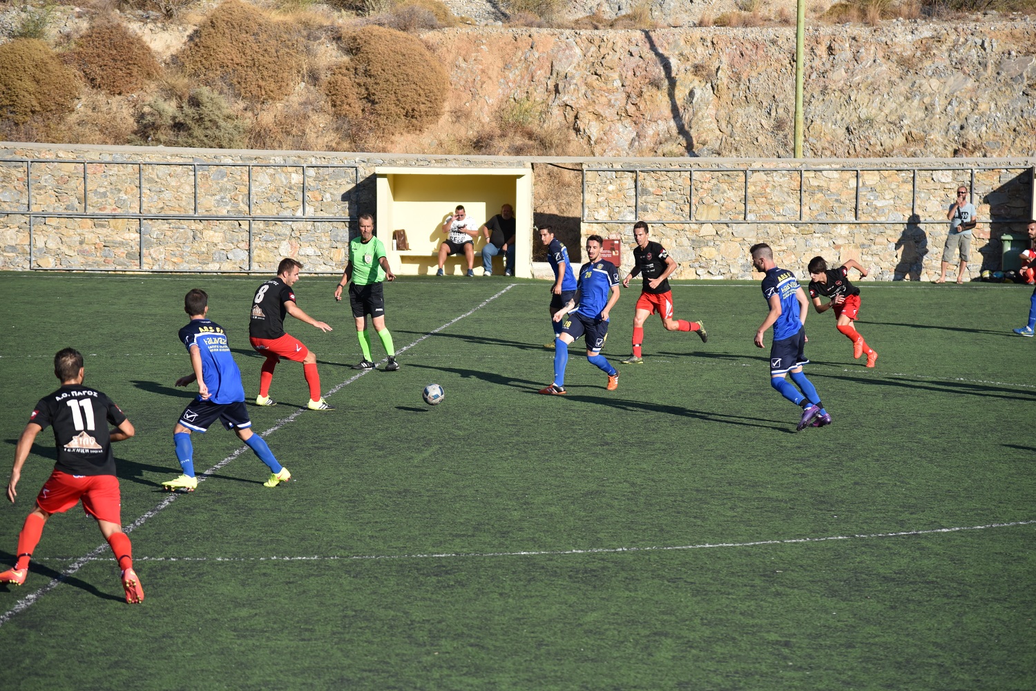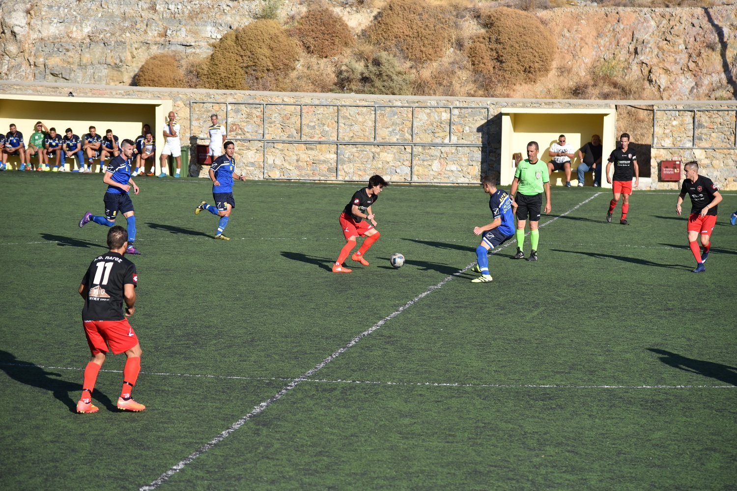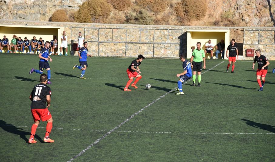 Το πρώτο μέρος έληξε με τον Α.Ο. Σύρου μπροστά, όμως το σκορ ήταν εύθραυστο μιας και ήταν μόλις 1-0.
