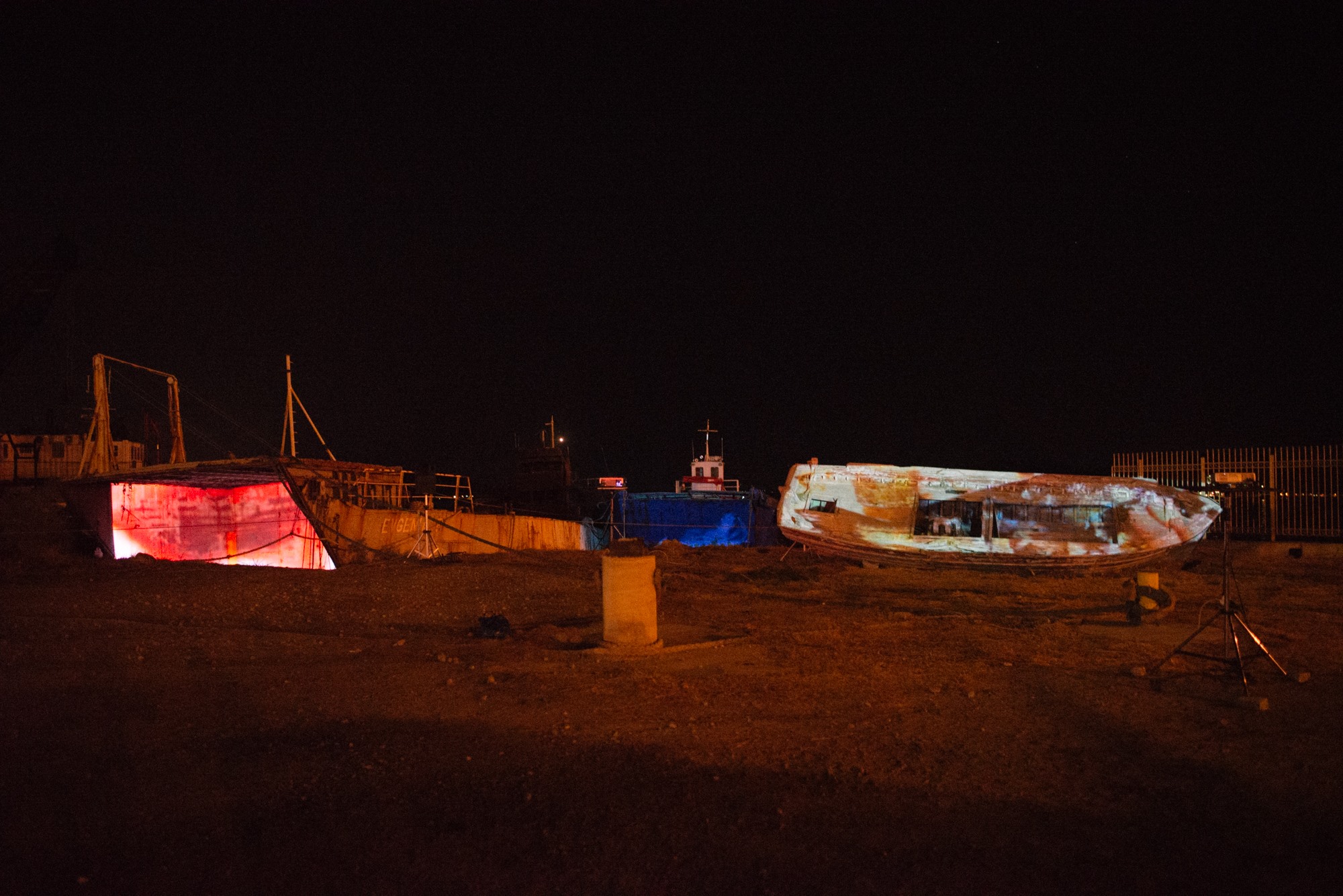 Στο πλαίσιο του Φεστιβάλ «Αισχύλεια 2016» πραγματοποιήθηκαν προβολές video installation art πάνω σε αγκυροβολημένα, αποσυρμένα πλοία που μετέτρεψαν τον κόλπο της Ελευσίνας σε θάλασσα πολιτισμού.