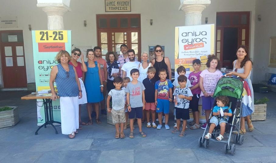 Τα κινούμενα σχέδια που προέκυψαν μέσα από το παιδικό εργαστήριο «Ζωντανεύουμε τη Μύκονο» έκαναν επέλαση στο Γιαλό, μπροστά από το Δημαρχείο – Κτίριο Βοϊνόβιτς.