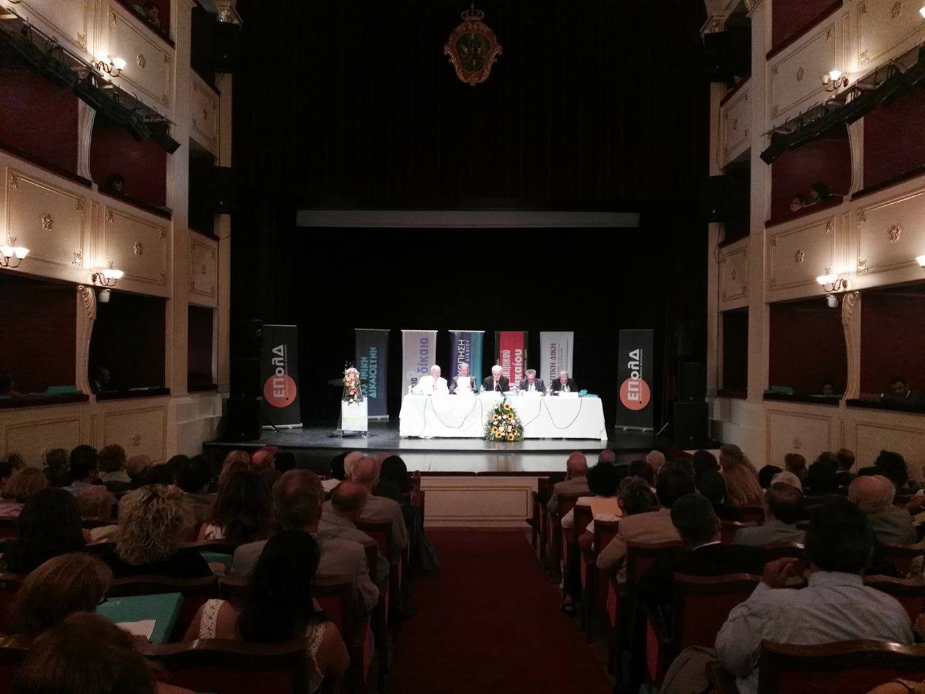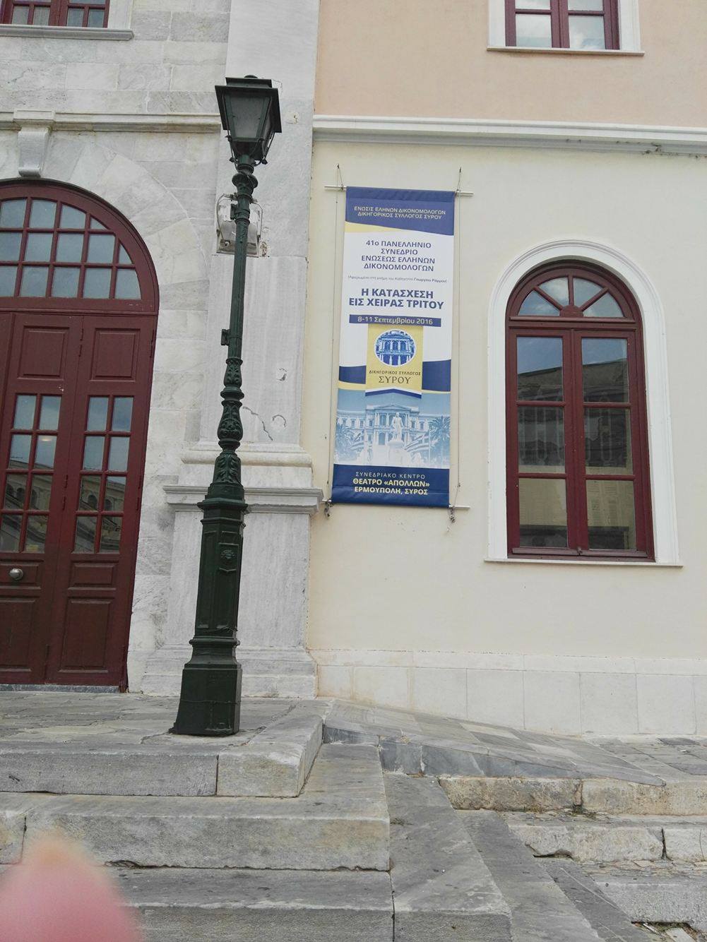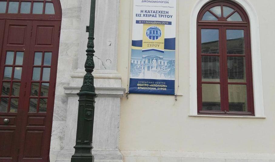Το 41ο Πανελλήνιο Συνέδριο με θέμα “Η κατάσχεση εις χείρας τρίτου” από την Ένωση Ελλήνων Δικονομολόγων πραγματοποιείται με αξιοσημείωτη επιτυχία στην πρωτεύουσα των Κυκλάδων, στο κατάμεστο από κόσμο θέατρο “Απόλλων”.