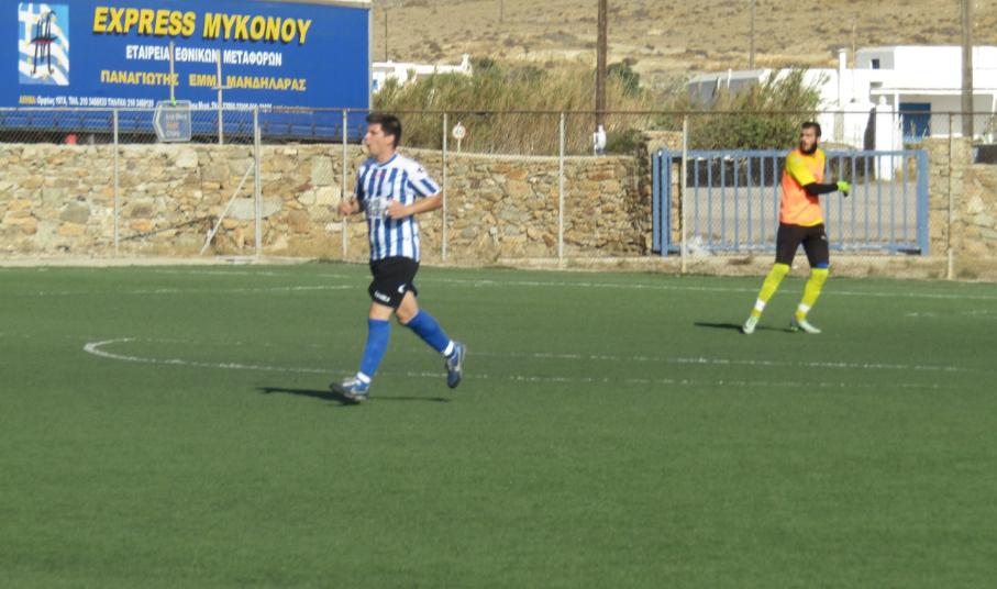 Οι Μυκονιάτες μείωσαν στο 34’ με τον Σερέπα ο οποίος έστειλε τη μπάλα στα δίχτυα με ωραίο πλασέ, μετά τη πολύ καλή σέντρα του Παπαδόπουλου. Με τον ίδιο σκόρερ στο 67’ ο Α.Ο. Μυκόνου έφερε το ματς στα ίσα (2-2), μετά από ένα πολύ όμορφο σουτ έξω από την μεγάλη περιοχή.
