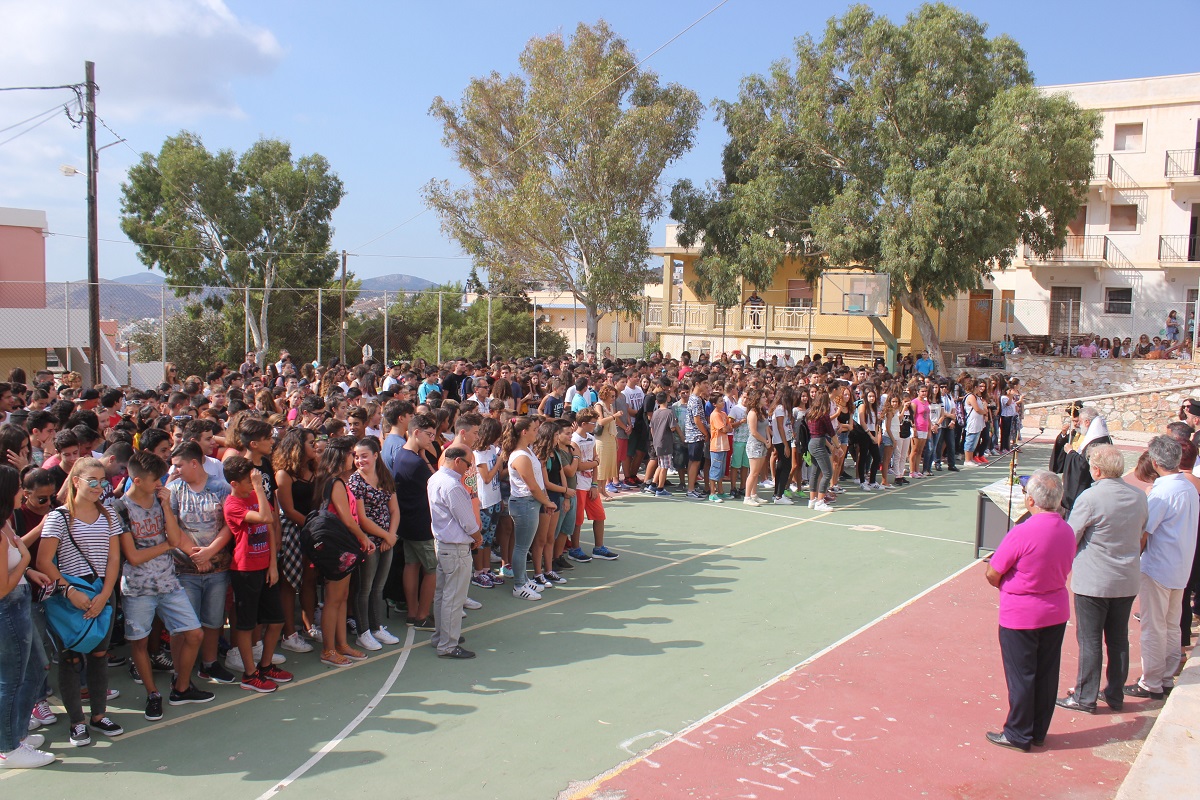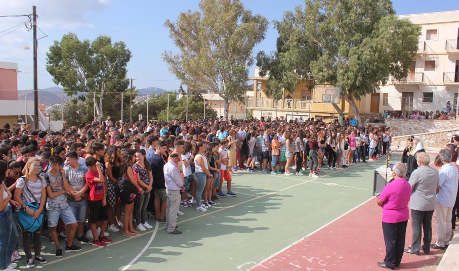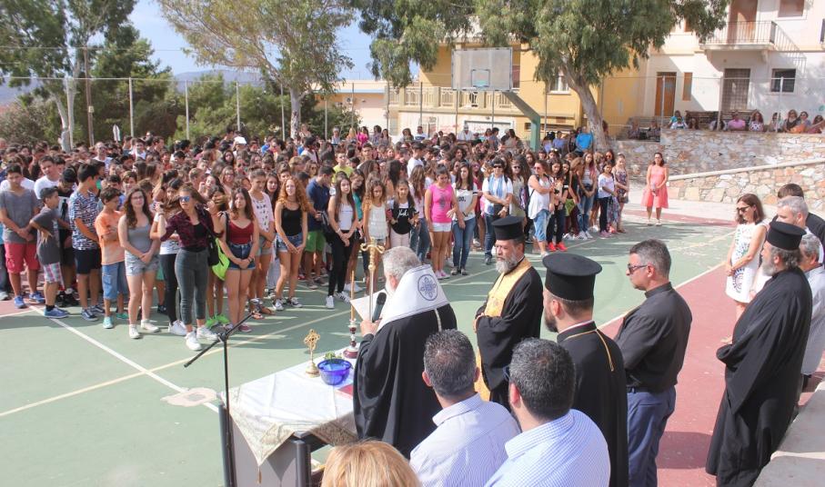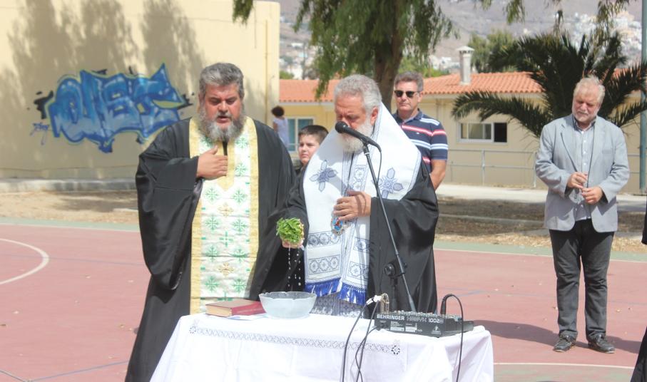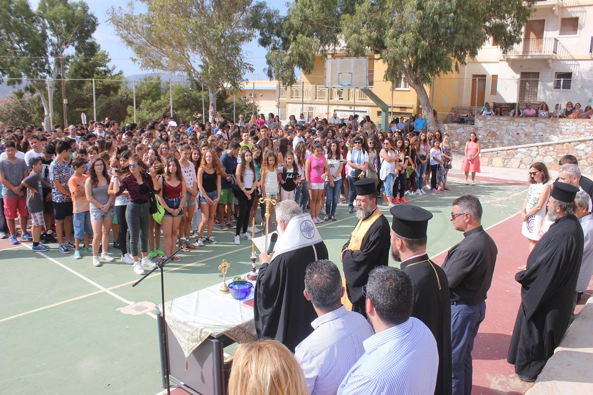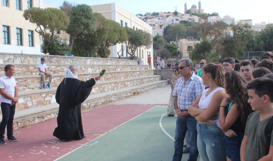 Τη νέα σχολική χρονιά υποδέχτηκαν σήμερα το πρωί μαθητές και εκπαιδευτικοί της Δευτεροβάθμιας Εκπαίδευσης Σύρου, που λίγο πριν χτυπήσει το «πρώτο κουδούνι» συγκεντρώθηκαν στις σχολικές μονάδες του νησιού, για τον καθιερωμένο αγιασμό.