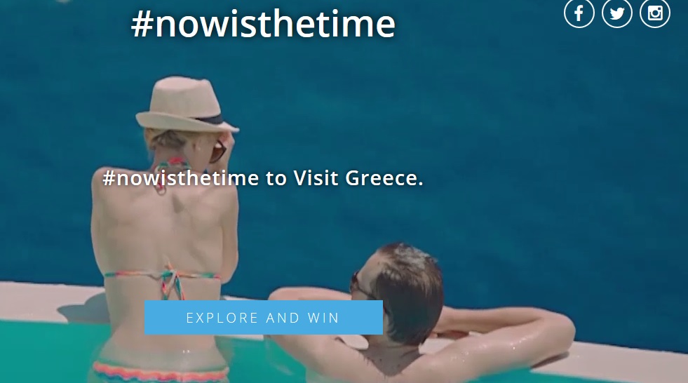 Υπό τον τίτλο “Now is the time” η καμπάνια και ο διαγωνισμός που «τρέχει» μαζί της- με έπαθλα τρία δωρεάν ταξίδια δύο ατόμων στην πανέμορφη χώρα μας – ξεκίνησε 22 Αυγούστου και θα βρίσκεται στον αέρα μέχρι και τις 23 Σεπτεμβρίου. Σύμφωνα με τον Γενικό Γραμματέα ΕΟΤ, Δημήτρη Τρυφωνόπουλο, «για την επιλογή και τον σχεδιασμό των δράσεων της καμπάνιας, σταθμίστηκαν τα μηνύματα που έχουμε για τις τάσεις που επικρατούν σε κάθε χώρα ξεχωριστά, με βάση τόσο τις πολιτικοοικονομικές συγκυρίες όσο και τη δυναμική που παρουσιάζουν οι αγορές. Βασίστηκε δε πρωτίστως στα συναισθήματα που προκαλούν οι Ελληνικοί προορισμοί στους επισκέπτες τους, στοχεύοντας πάντα στην περαιτέρω ενδυνάμωση του φθινοπωρινού τουρισμού σε όλη την Ελλάδα».