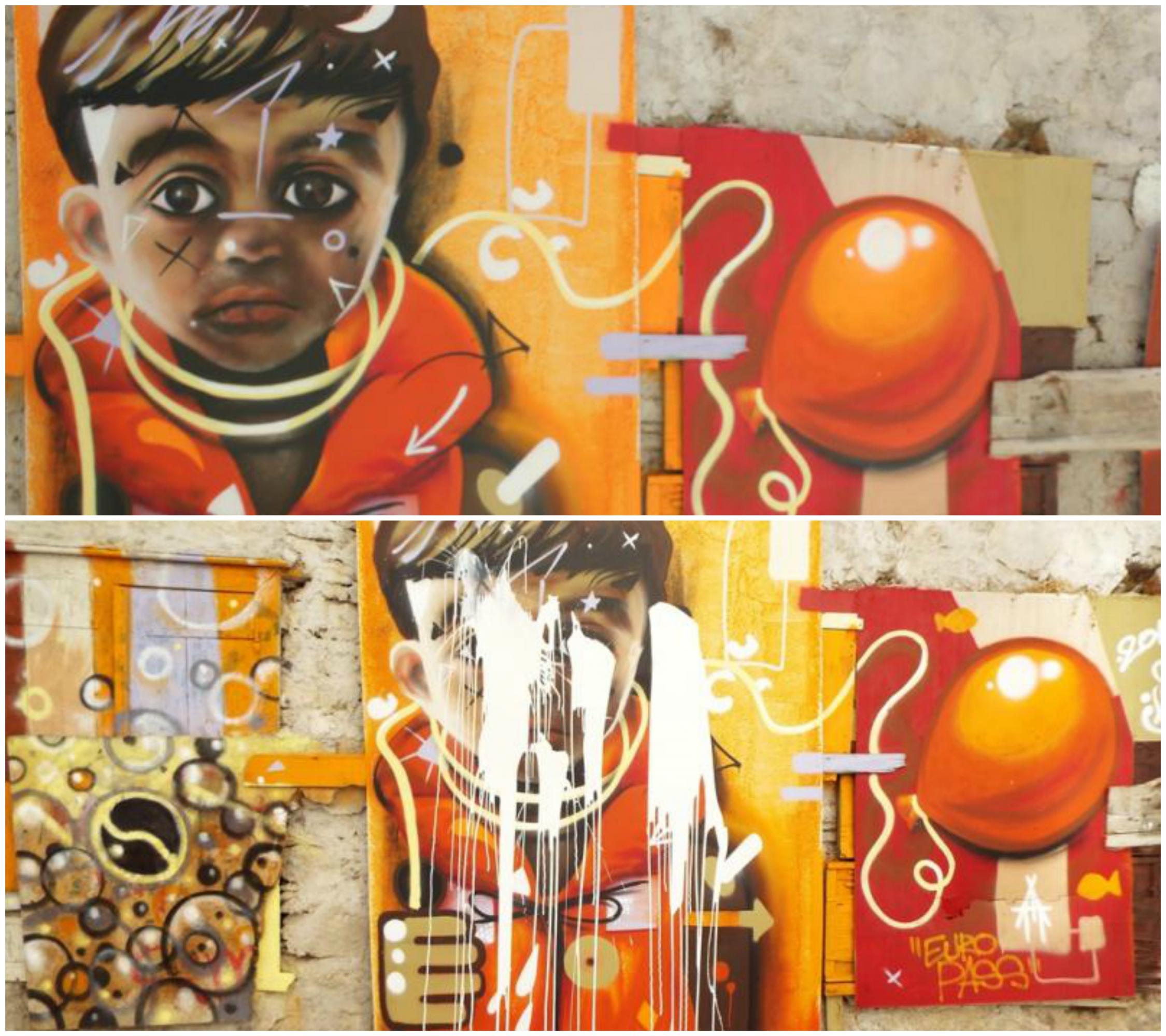 Η απάντηση θα πρέπει να είναι ευρηματική, για να ξεχωρίσει ανάμεσα στις κλισέ δικαιολογίες. “Τα graffiti καταστρέφουν τη φυσιογνωμία της Ερμούπολης”. Επομένως παίρνεις την πρωτοβουλία να καταστρέψεις τα graffiti, που καταστρέφουν την Ερμούπολη για να περάσεις στους περαστικούς το μήνυμα πως ό,τι δεν εκφράζει τα γούστα και τις κοινωνικές ή πολιτικές θέσεις μας, εμείς το καταστρέφουμε”. Απόλυτα δημοκρατικό και ξεκάθαρο, γιατί σκέφτεσαι πως, αν δεν τα λεηλατήσω, δεν πρόκειται να τα απομακρύνουν. Μόνο που δεν “λεηλάτησες” το σύνολο των έργων που δημιουργήθηκαν κατά τη διάρκεια του φεστιβάλ, αλλά επικεντρώθηκες αποκλειστικά στο προσφυγόπουλο με το σωσίβιο κι ένα μπαλόνι γεμάτο όνειρα και ελπίδα.