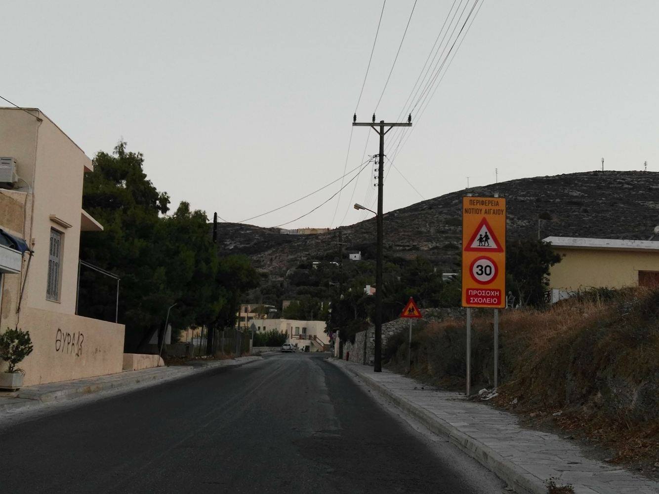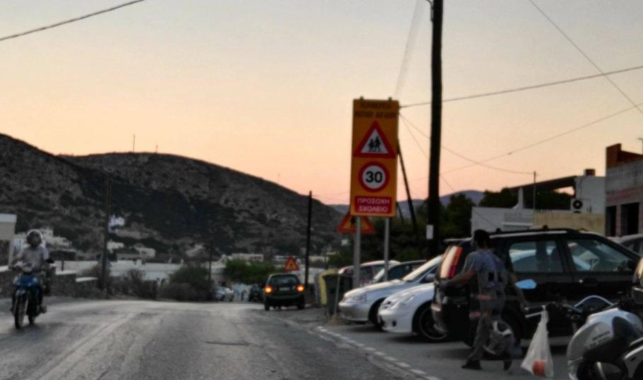 Όπως διαπιστώνεται εκ μέρους των διερχόμενων οδηγών, έχουν τοποθετηθεί σε ασφαλή τμήματα του περιθωρίου των δρόμων μεγάλες πινακίδες, οι οποίες καθίστανται ορατές και κατά τις βραδινές ώρες σε περίπτωση λειτουργίας μερικών σχολείων σύμφωνα με τα απογευματινά ωράριά τους, προκειμένου να διέρχονται οι οδηγοί με μειωμένη ταχύτητα και αυξημένα αντανακλαστικά.