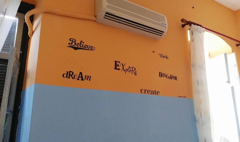 Αποτέλεσμα της ζεστής εθελοντικής παρουσίας των νέων ανθρώπων που βρέθηκαν στη Στέγη είναι η συντήρηση των κουφωμάτων του, το βάψιμο των εσωτερικών επιφανειών των τοίχων του και η σχεδίαση όμορφων εικόνων και μηνυμάτων που χαρίζουν αισιοδοξία, ελπίδα κι αγάπη.