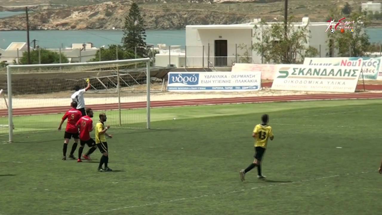 Ο Α.Ο. Πάρου προηγήθηκε στο σκορ μόλις στο 5' με τον Γαβαλά και ο Γιουρτζίδης στο 17 ανέβασε τον δίκτυ του σκορ στο 2-0. Οι γηπεδούχοι εξακολούθησαν να πιέζουν και πριν συμπληρωθεί το πρώτο μισάωρο είχαν αποκτήσει ένα σημαντικό προβάδισμα, αφού ο Σένκα (στο 28') έκανε το 3-0. Οι ομάδες πήγαν στα αποδυτήρια για την ανάπαυλα του ημιχρόνου με τα τρία τέρματα να χωρίσει τα δύο σωματεία. Το σκηνικό δεν άλλαξε στο δεύτερο μέρος, καθώς ο Γαβαλάς με ωραίο τρόπο έκανε το 4-0 στο 50'. Π Κληρονόμος στο 62' έκανε το 5-0 και ο Σαρρής στο 72' διαμόρφωσε το τελικό 6-0. Από την άλλη πλευρά, ο Αστέρας κατέβαλε τεράστια προσπάθεια μέχρι τη διεξαγωγή του αγώνα και παρά το βαρύ σκορ, μόνο η συμμετοχή του θεωρείται επιτυχία και σίγουρα στα επόμενα ματς η εικόνα του θα είναι καλύτερη.