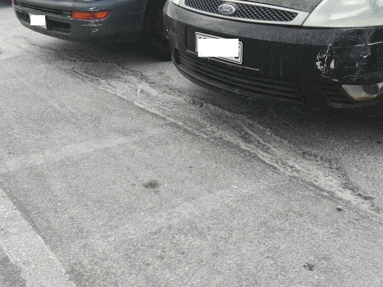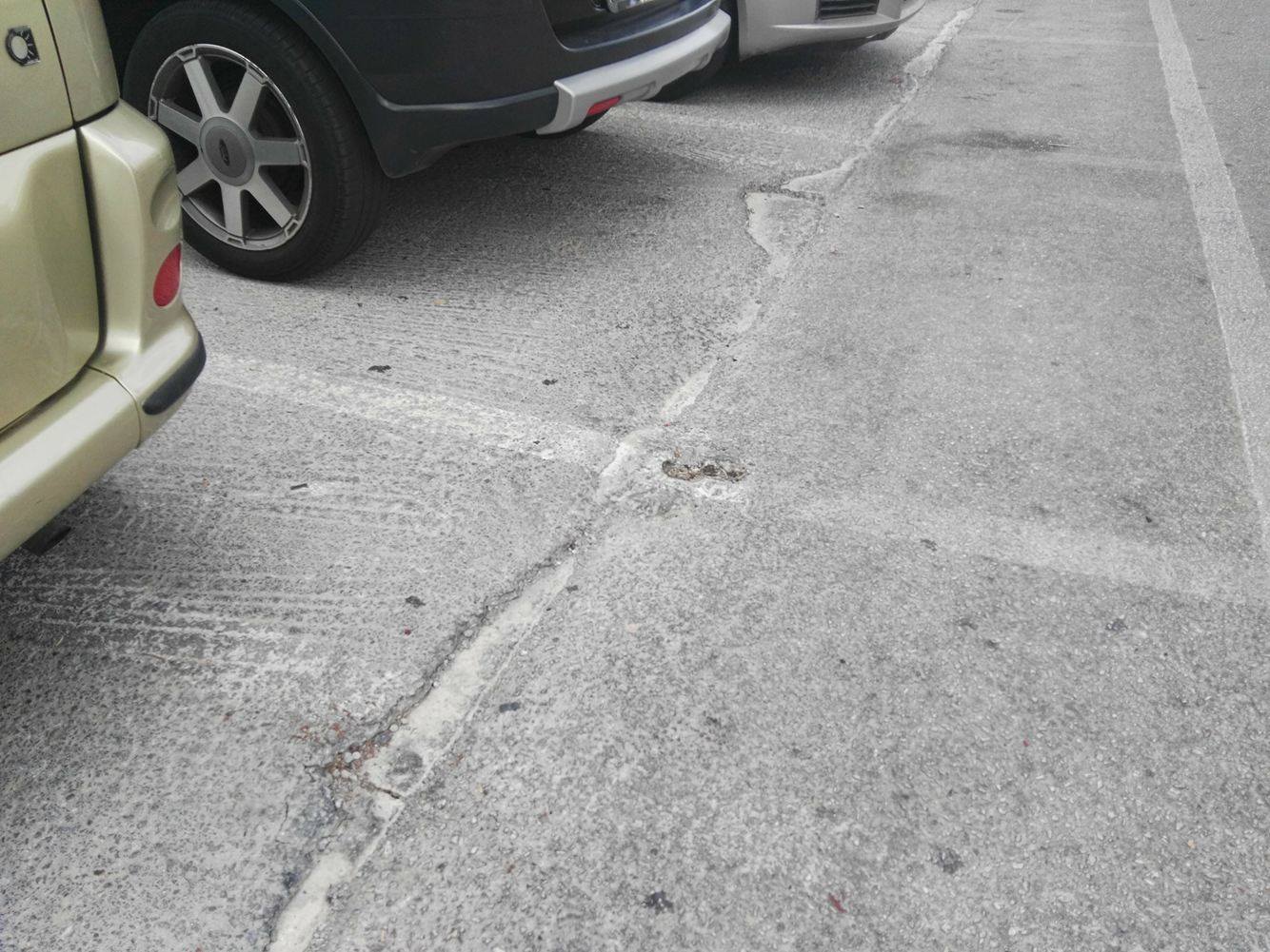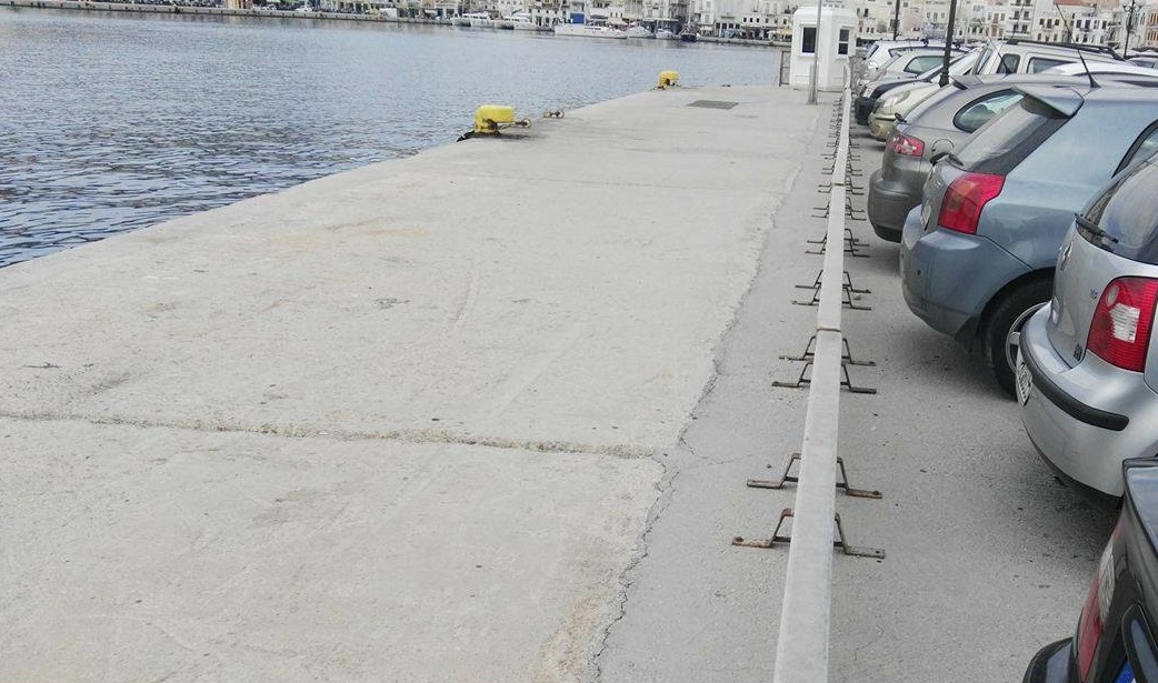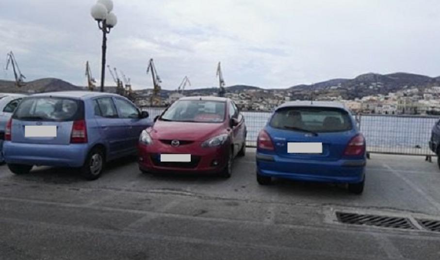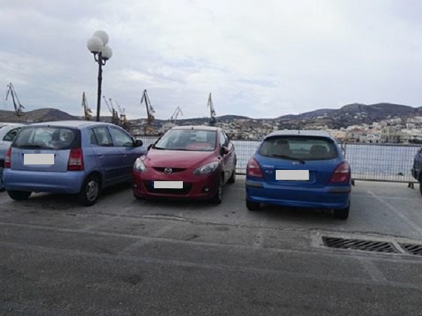Πρόκειται για τμήμα του πιο πολυσυζητημένου χώρου στάθμευσης πλησίον του κέντρου της Ερμούπολης, το οποίο παρουσιάζει φθορές στο κομμάτι που αφήνουν τα οχήματά τους οι οδηγοί που επισκέπτονται την πόλη και συγκεκριμένα στο κομμάτι που είχε καλυφθεί παλαιότερα με μπετόν, ώστε να διατηρηθεί μία αξιοπρεπή εικόνα στην περιοχή.