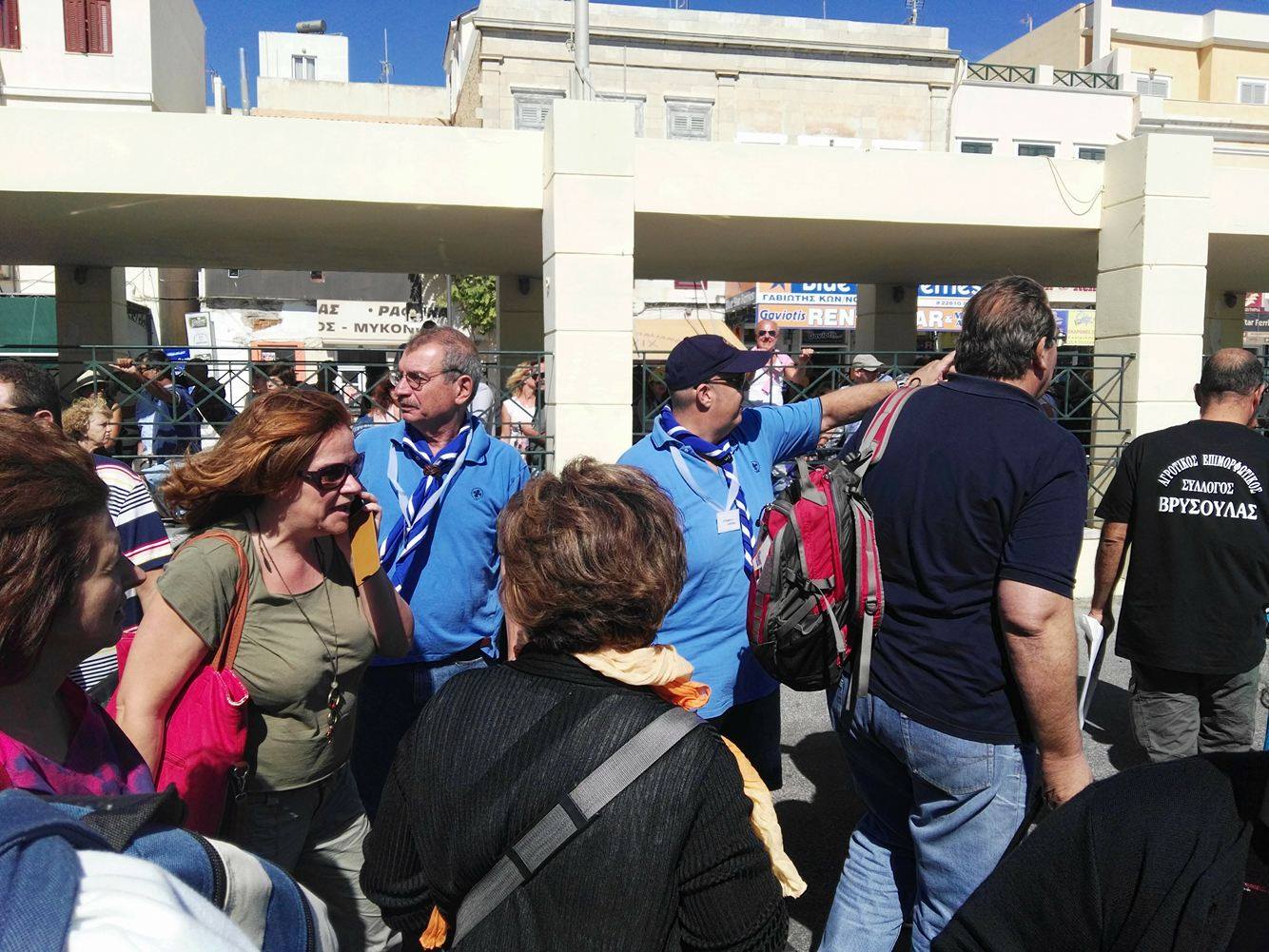 Εγκάρδιο κι αδελφικό καλωσόρισμα επεφύλαξε η ομάδα υποδοχής των Προσκόπων στη Σύρο με επικεφαλής τον Περιφερειακό Έφορο Προσκόπων Κυκλάδων, Σωτήριο Φραγκίδη προς το σύνολο των μελών της Προσκοπικής “οικογένειας” που αφίχθησαν σήμερα το πρωί στο νησί, από όλη την Ελλάδα, στο πλαίσιο της πραγματοποίηση της 68ης Συνάντησης Πτυχιούχων Διακριτικού Δάσους.