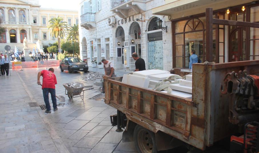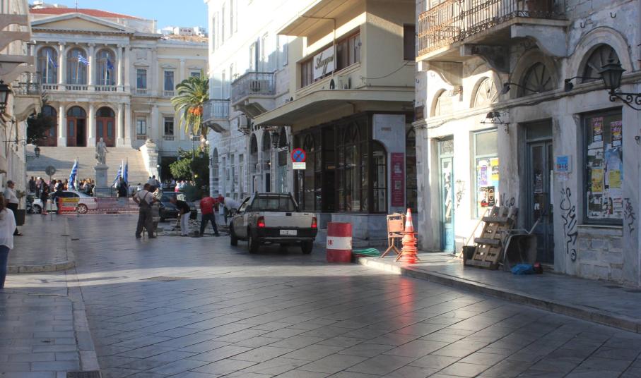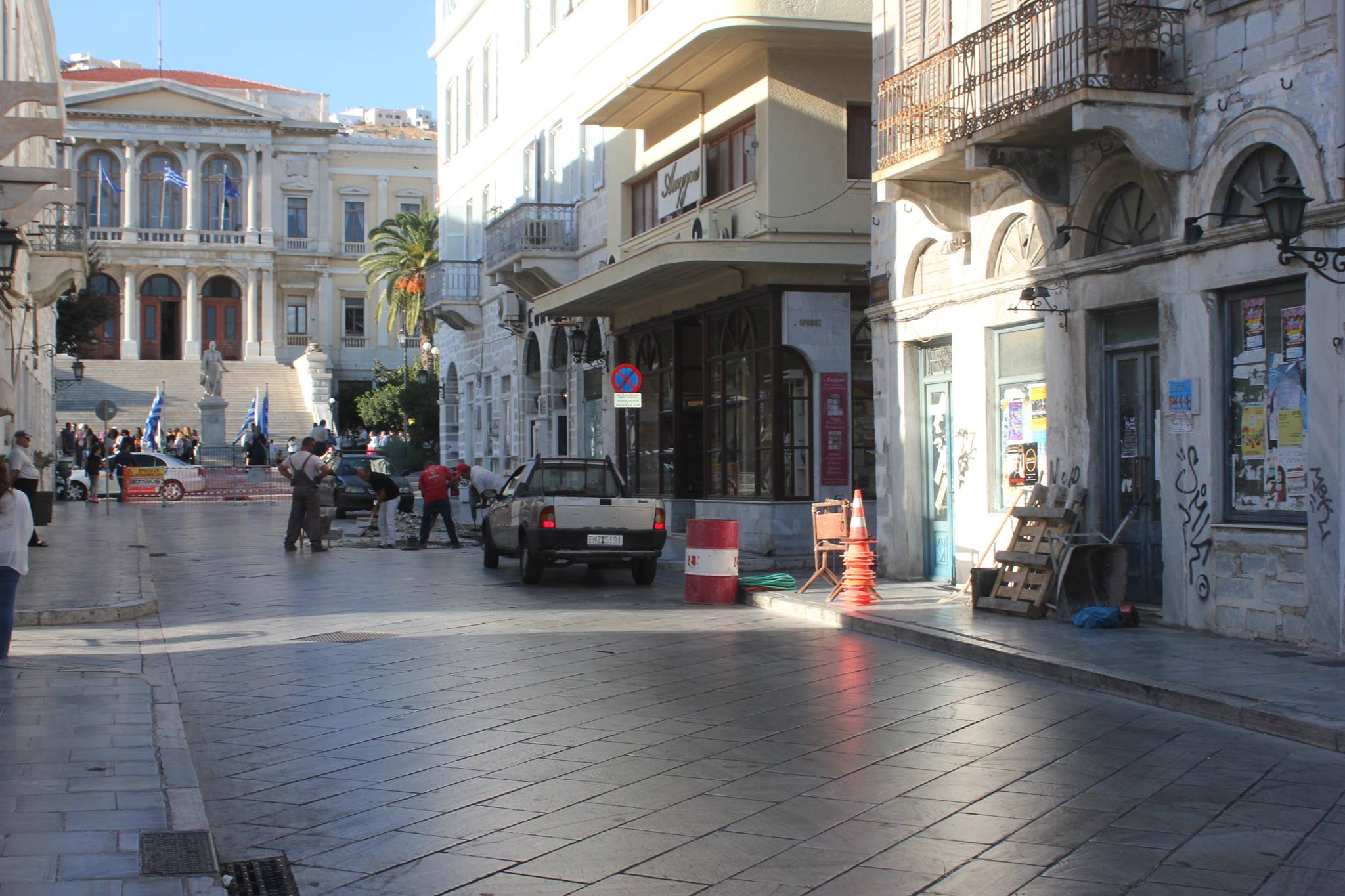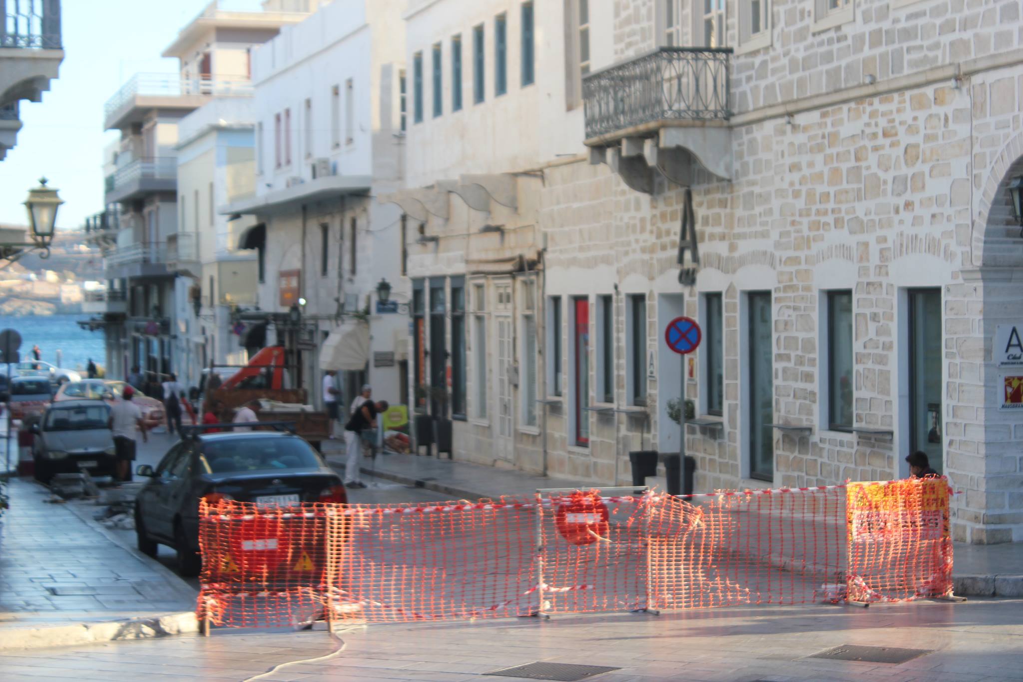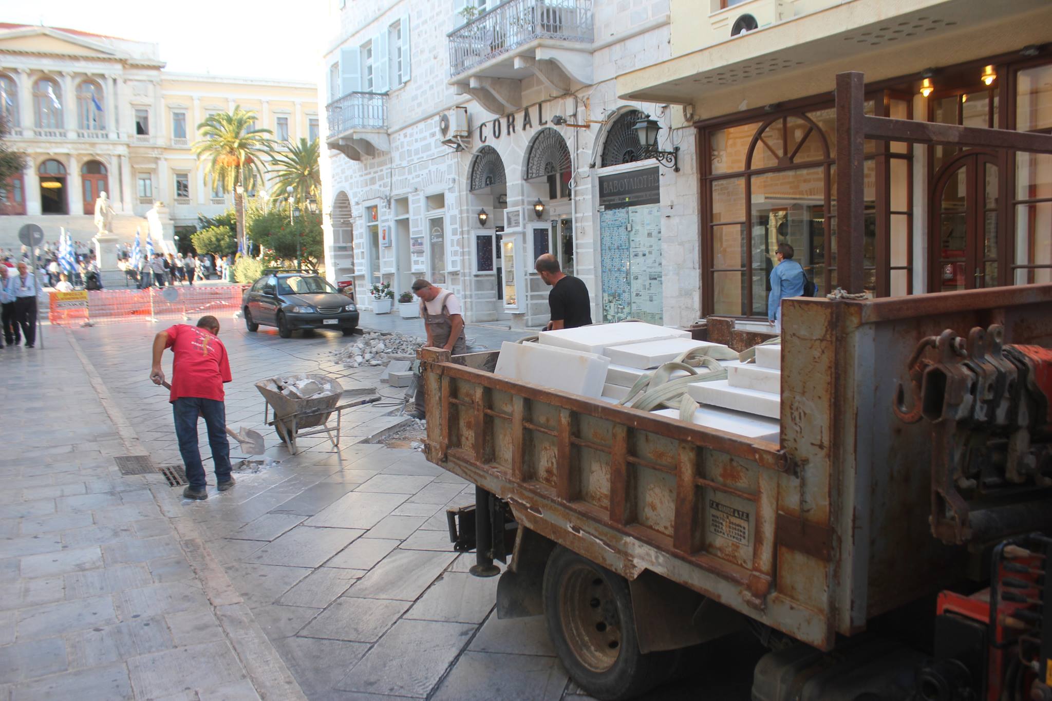 Πέραν του ότι τα διάφορα θέματα των παραδοσιακών οδοστρωμάτων της Ερμούπολης έχουν απασχολήσει έντονα και συνεδριάσεις της Δημοτικής Κοινότητας Ερμούπολης και των αρμόδιων αιρετών μελών, ενώ πολλάκις έχουν επισημανθεί και από την πλευρά των μονίμων κατοίκων, το σοβαρό ζήτημα της καταστροφής των μαρμάρων της πόλης που συνθέτουν τα οδοστρώματά της, απασχόλησαν και το φετινό καλοκαίρι εξαιτίας του αποκρουστικού μπαλώματος στο οποίο προχώρησε ο Δήμος σε τμήμα οδοστρώματος πλησίον του ΟΤΕ.