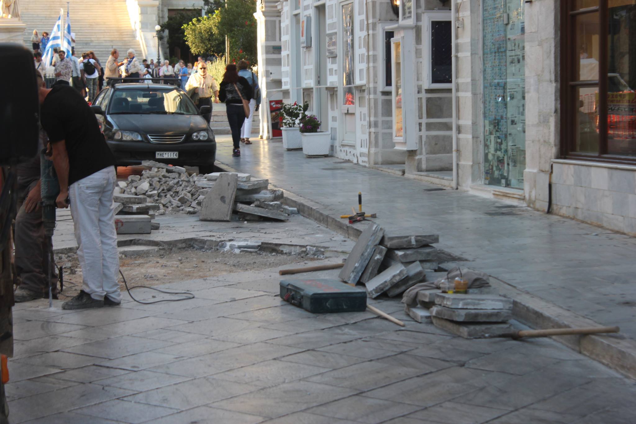 “Προχωρήσαμε σε αποκαταστάσεις των μαρμάρων όπου ήταν σπασμένα στο πλαίσιο της αποκατάστασης του πλακόστρωτου” σχολίασε αρχικά, λέγοντας πως, οι εργασίες έγιναν την τρέχουσα περίοδο, καθώς, “Το καλοκαίρι δεν μπορούσαμε να κλείσουμε τον δρόμο, αφού είχε αρκετή κίνηση λόγω και των επισκεπτών. Τώρα, παρουσιάζεται μειωμένη κίνηση και πρέπει να γίνουν οι αποκαταστάσεις με συνέπεια, την σύντομη ταλαιπωρία των πολιτών και των κατοίκων”.