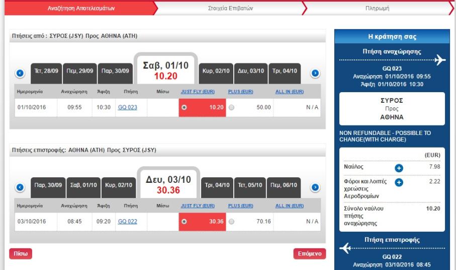 Αρ. πτήσης GQ023 Ώρα αναχώρησης 09:05 Ώρα άφιξης 09:40 - Διάρκεια πτήσης 35 λεπτά (κάθε Τρίτη, Τετάρτη, Πέμπτη)