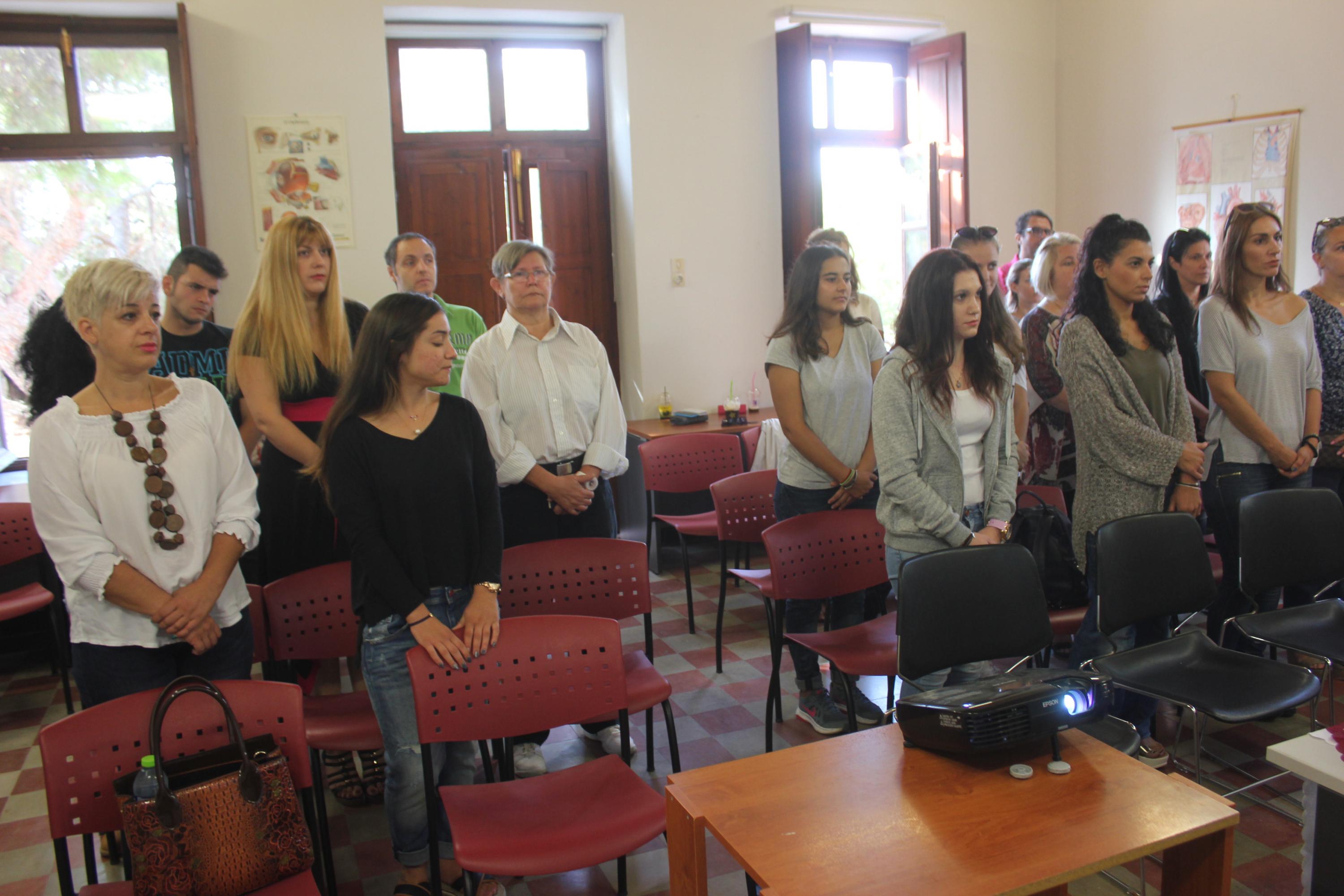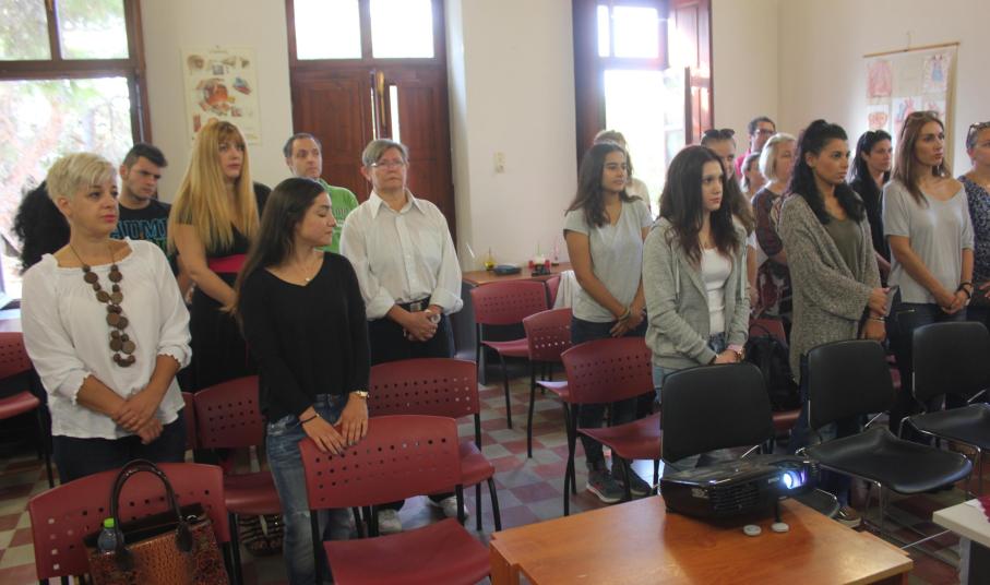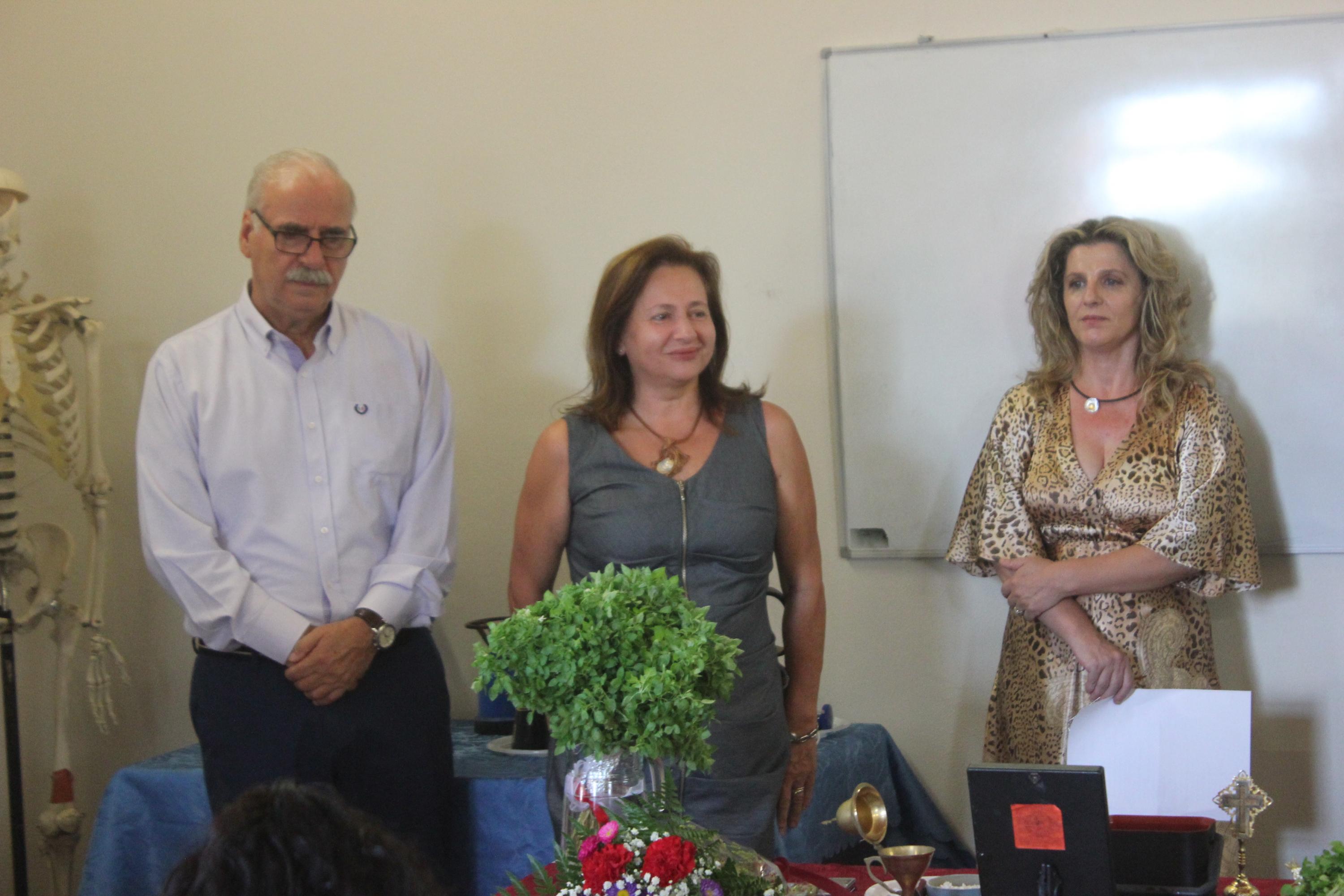 Η Διευθύντρια κ. Ευγενία Νίκου και οι σπουδαστές του Α’ και του Γ’ Εξαμήνου καλωσόρισαν χθες την καινούρια χρονιά, παρουσία του Αναπληρωτή Διοικητή του Νοσοκομείου και καθηγητή στο δεύτερο έτος Ευάγγελου Πανοηλία και της επί σειρά ετών Διευθύντριας της Σχολής κ. Κατερίνας Αβρανά.