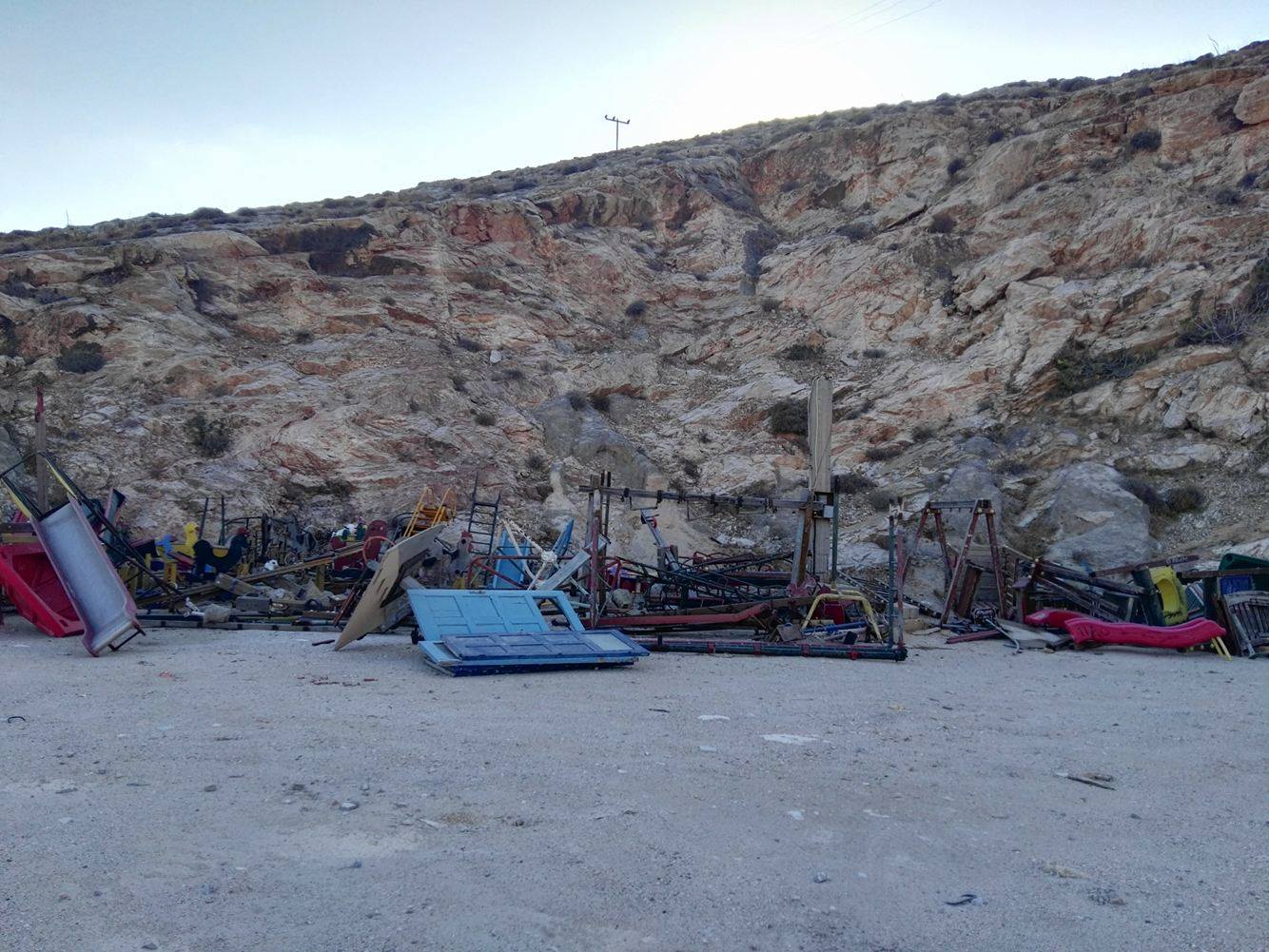 Την ίδια στιγμή που οι περισσότερες παιδικές χαρές της Σύρου έχουν “αδειάσει” από παιχνίδια και κατάλληλο εξοπλισμό με δημοτική απόφαση προκειμένου σταδιακά να βελτιωθούν και να αποκτήσουν τη λειτουργία που επιβάλλεται βάσει ευρωπαϊκών οδηγιών, ο εξοπλισμός που έχει αφαιρεθεί, έχει αφεθεί εκτεθειμένος σε ανοικτό χώρο πλησίον του πολιτιστικού χώρου “Μάνος Ελευθερίου”.