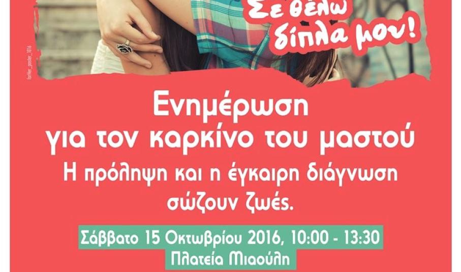 Στην κεντρική πλατεία της Ερμούπολης, μπροστά στο Δημαρχείο, θα υπάρχει ειδικά διαμορφωμένο υπαίθριο περίπτερο, όπου οι γυναίκες θα μπορούν, από τις 10:00-13:30, να ενημερώνονται από εξειδικευμένες ιατρούς για θέματα που αφορούν τους γυναικολογικούς καρκίνους, τον καρκίνο του μαστού καθώς και τρόπους πρόληψης και έγκυρης διάγνωσης. Επιπλέον, θα παρέχεται η δυνατότητα για δωρεάν ψηλάφηση σε όσες γυναίκες το επιθυμούν.
