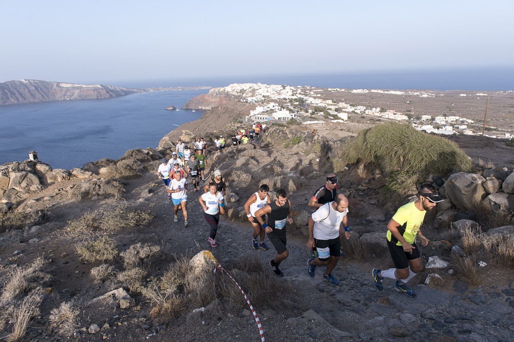 Το Σάββατο πιάνοντας το όριο των 500 συμμετεχόντων (βάσει του ορίου ασφαλείας των διαδρομών που είχε τεθεί από τον πρώην μαραθωνοδρόμο, κάτοχο της πανελλήνιας επίδοσης στην κλασική διαδρομή, προπονητή τρεξίματος και διευθυντή της All About Running, Νίκο Πολιά, που σχεδίασε και επιμελήθηκε τις διαδρομές) δρομείς όλων των δυνατοτήτων είχαν την ευκαιρία να τρέξουν στις εξαιρετικές διαδρομές των 5χλμ (τρέξιμο και δυναμικό περπάτημα), 10 χλμ και 15 χλμ (συνολική θετική υψομετρική: 834 μ.) που είχαν θέα τις μοναδικές εικόνες του ηφαιστείου, της Καλντέρας και των οικισμών Ημεροβίγλι, Φηροστεφάνι και της Οίας. Όλες οι διαδρομές είχαν ως σημείο εκκίνησης και τερματισμού το εργοστάσιο αφαλάτωσης στην Οία.