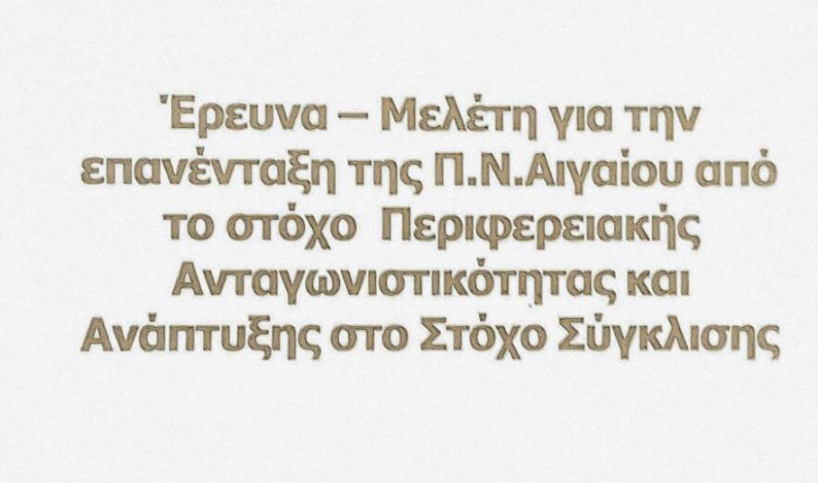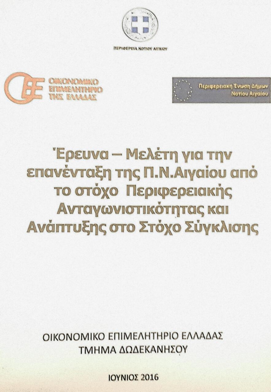 Με τη μελέτη αυτή, το Οικονομικό Επιμελητήριο ανέλαβε να τεκμηριώσει ότι η Περιφέρεια Νοτίου Αιγαίου λανθασμένα έχει ενταχθεί στον Στόχο 2, από το 2008, και θα πρέπει να επανενταχθεί στον Στόχο 1. Η εκτίμηση αυτή προκύπτει από τις σοβαρές επιφυλάξεις που εγείρονται σχετικά με τον τρόπο προσδιορισμού του ΑΕΠ που παράγεται στην Περιφέρεια Νοτίου Αιγαίου, που το καθιστά στατιστικό στοιχείο ανεπαρκές για να αποδώσει την οικονομική πραγματικότητα στην Περιφέρεια.