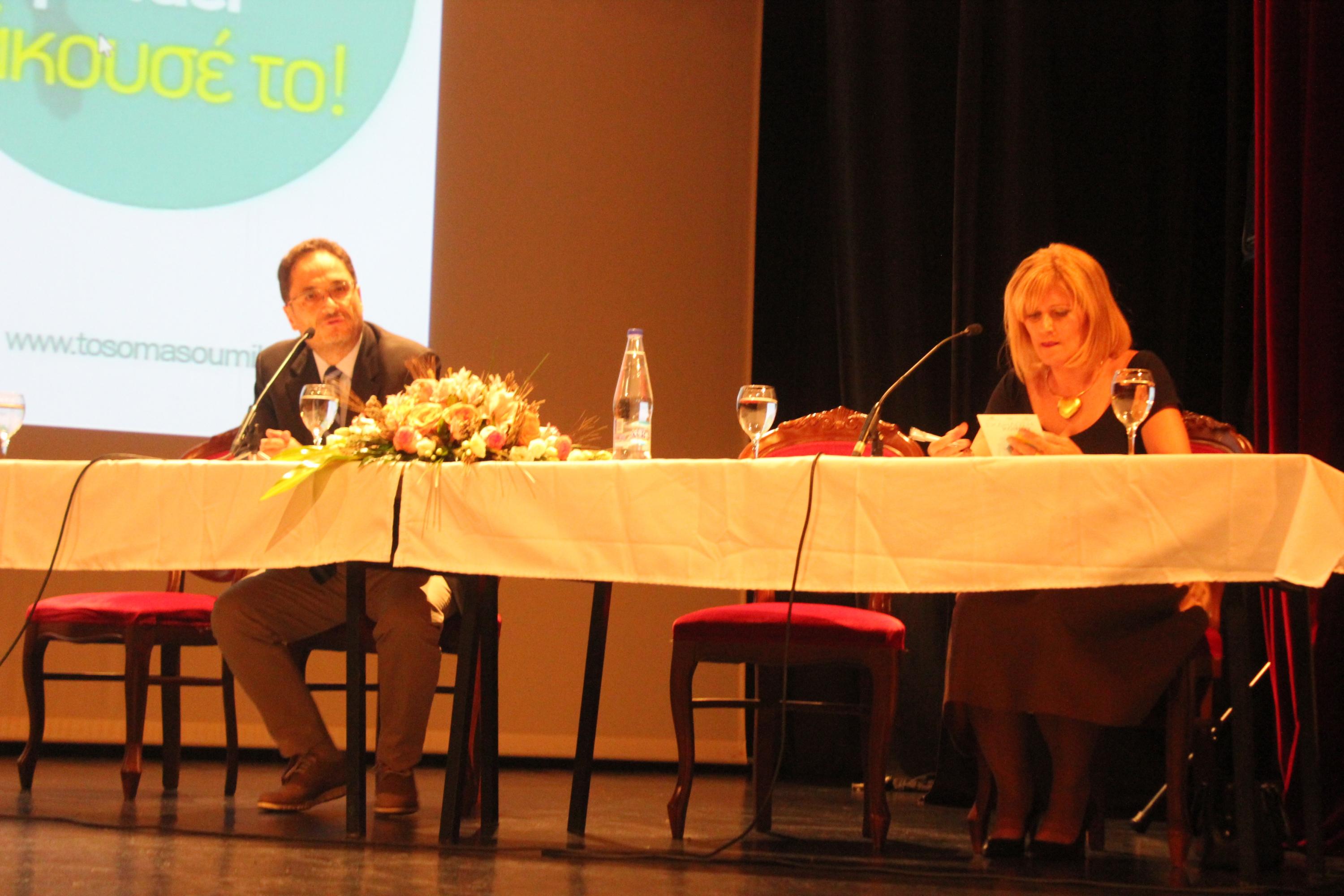 Το κοινό καλωσόρισαν ο πρόεδρος της ΕΡΕ-ΕΠΕΡΕ Παναγιώτης Τρόντζας και η πρόεδρος του Συλλόγου Ρευματοπαθών Κυκλάδων Μαρία Ρούσσου.