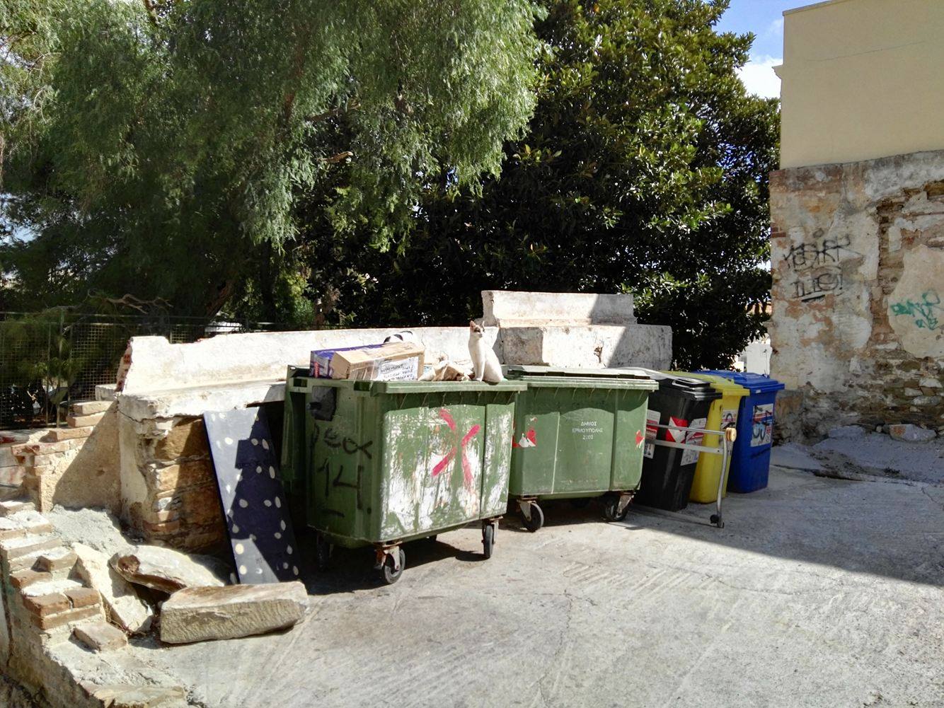 Σαφώς και δεν πρέπει να παραβλεφθεί το γεγονός πως, αρκετοί δημότες επιδιώκοντας να ταΐζουν τα αδέσποτα της γειτονιάς καθώς και τον μεγάλο αριθμό γατών της περιοχής, τοποθετούν σε διάφορα σημεία ειδικές τροφές για ζώα, με αποτέλεσμα αυτά να βρίσκουν σταθερό “καταφύγιο”, με ό,τι αυτό συνεπάγεται για τη συσσώρευση των ακαθαρσιών.