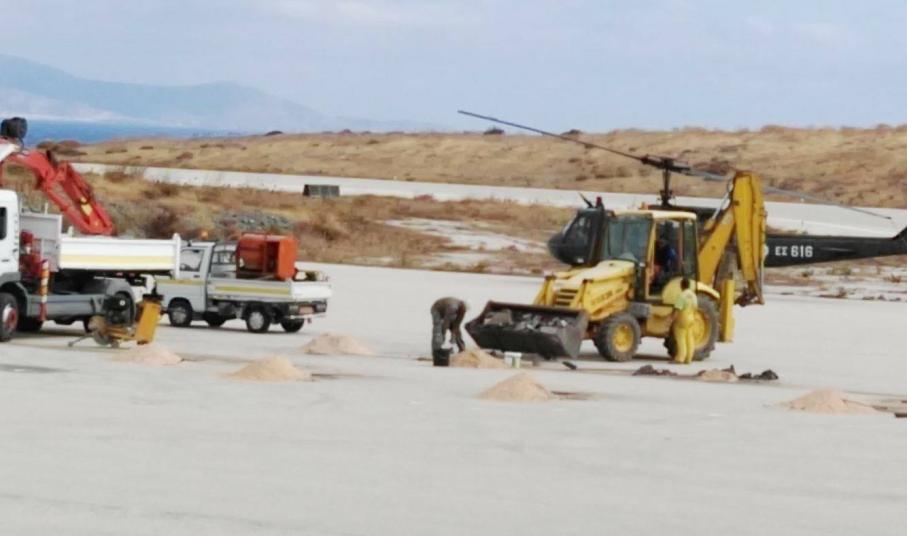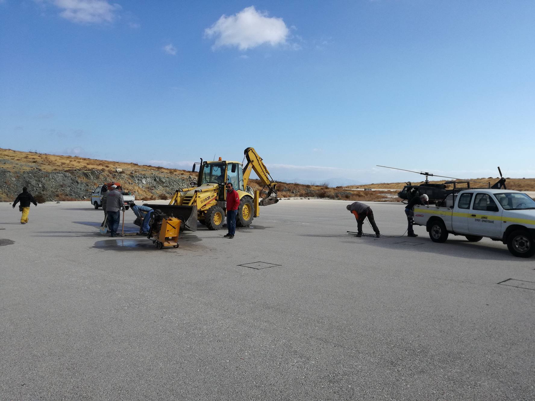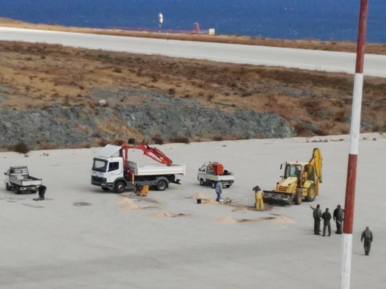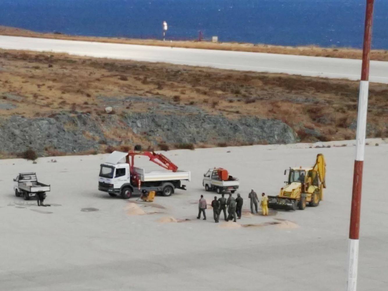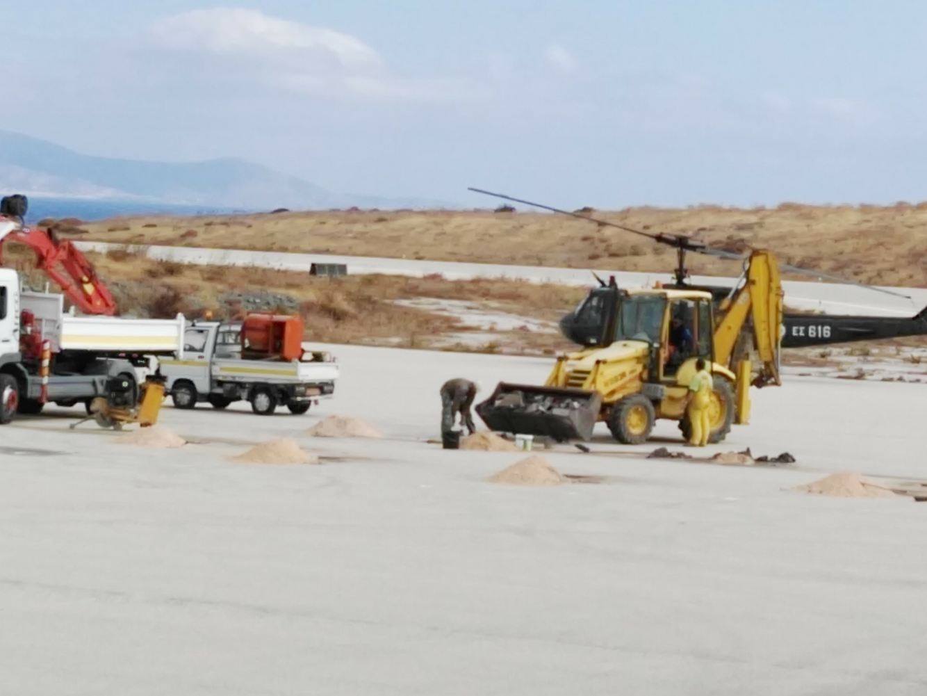 Μηχανήματα έργου με τους χειριστές τους, καθώς και εργάτες του Τμήματος Μικρών Έργων του Δήμου, κατόπιν των εγκρίσεων της Υπηρεσίας Πολιτικής Αεροπορίας (ΥΠΑ) και καθ΄ υπόδειξη των αρμοδίων της Πολεμικής Αεροπορίας προχώρησαν χθες και στις παρεμβάσεις επί της “πίστας” του αεροδρομίου, προκειμένου να διαμορφωθεί καταλλήλως, ο χώρος που θα προσαπογειώνεται το ελικόπτερο των αεροδιακομιδών, αλλά επίσης, θα φυλάσσεται και θα παραμένει.