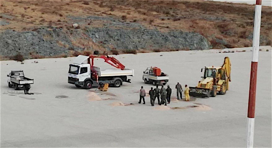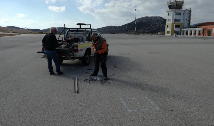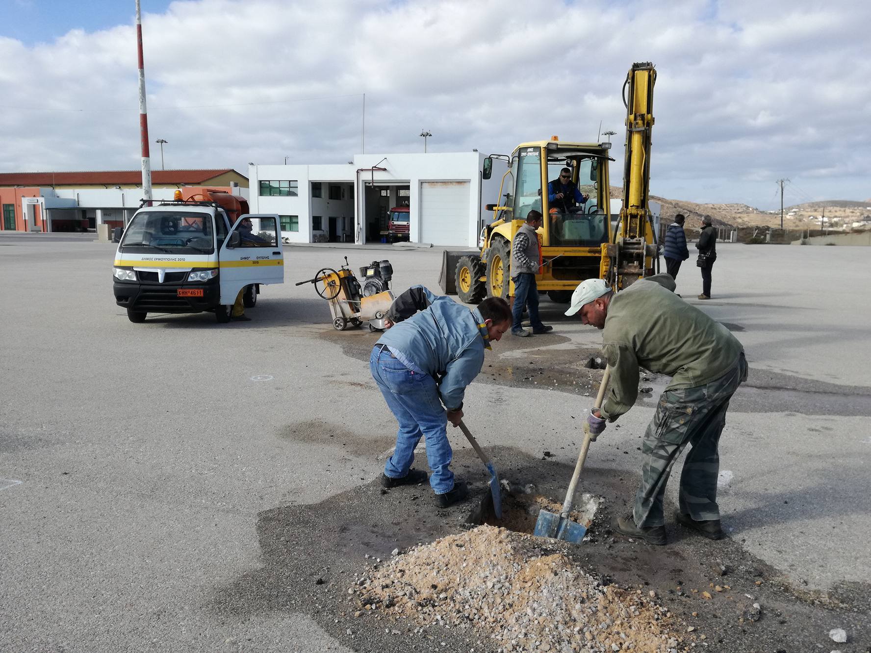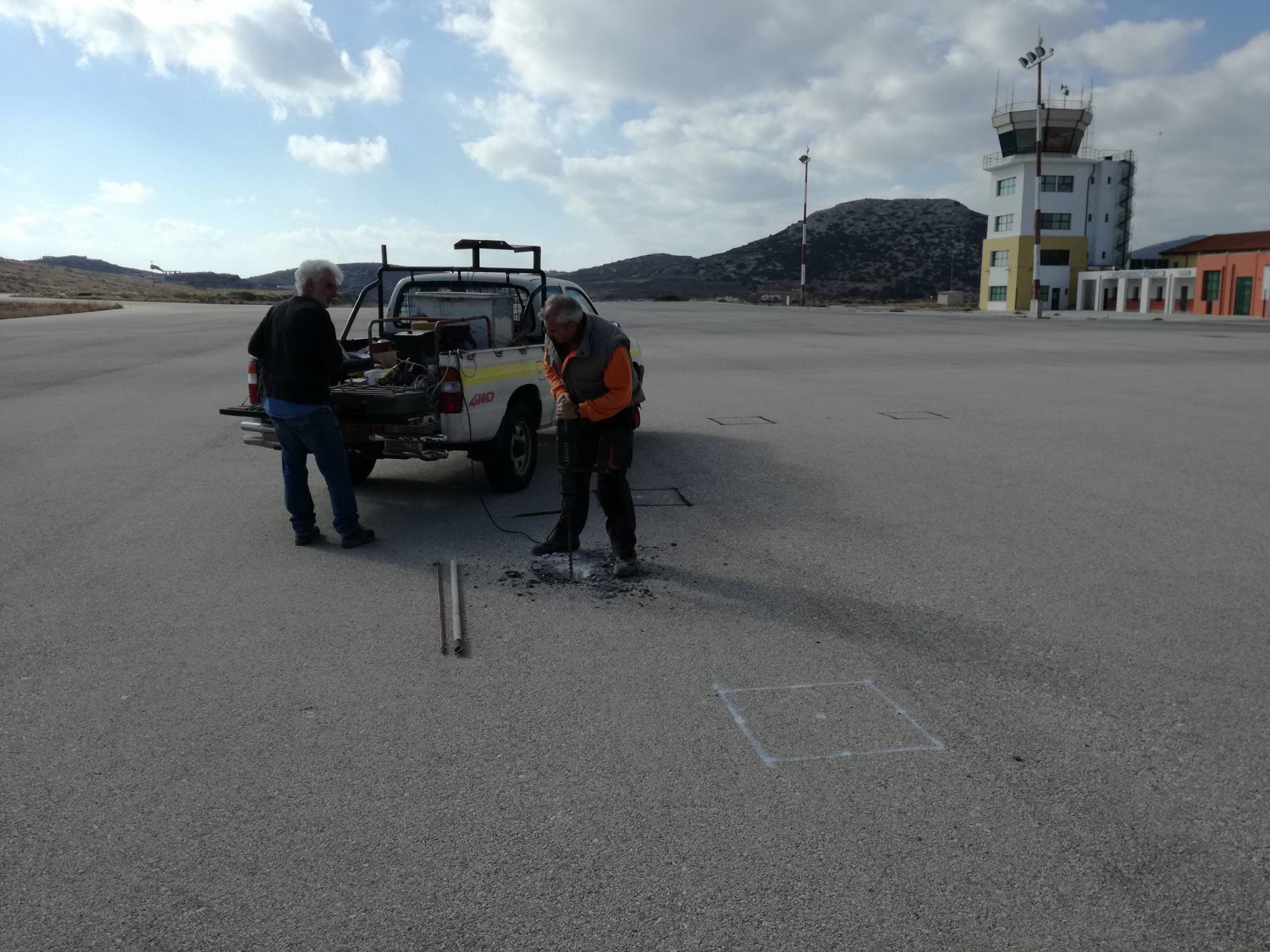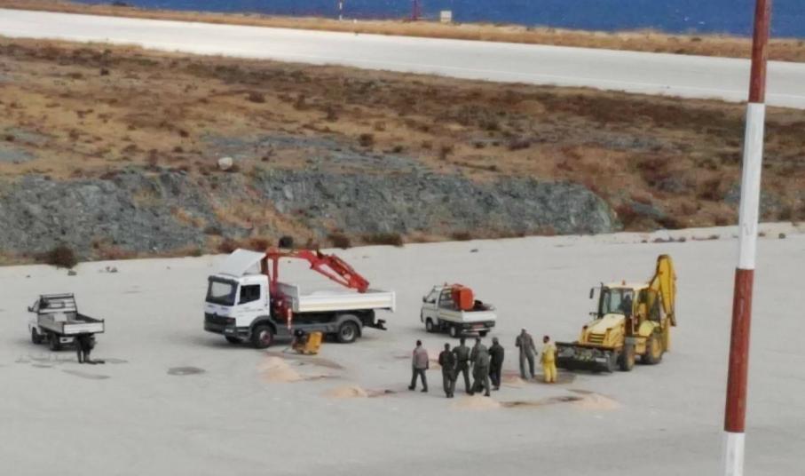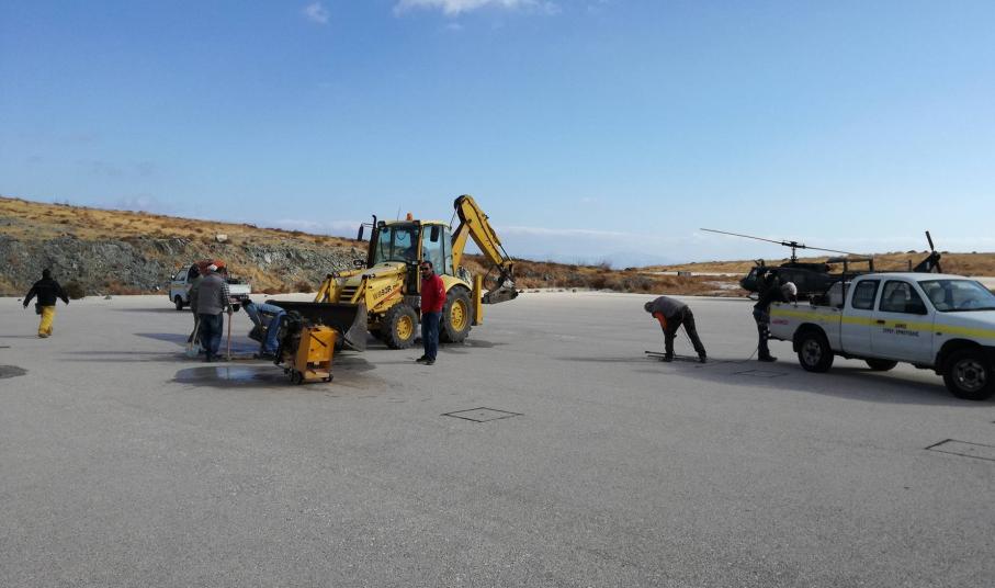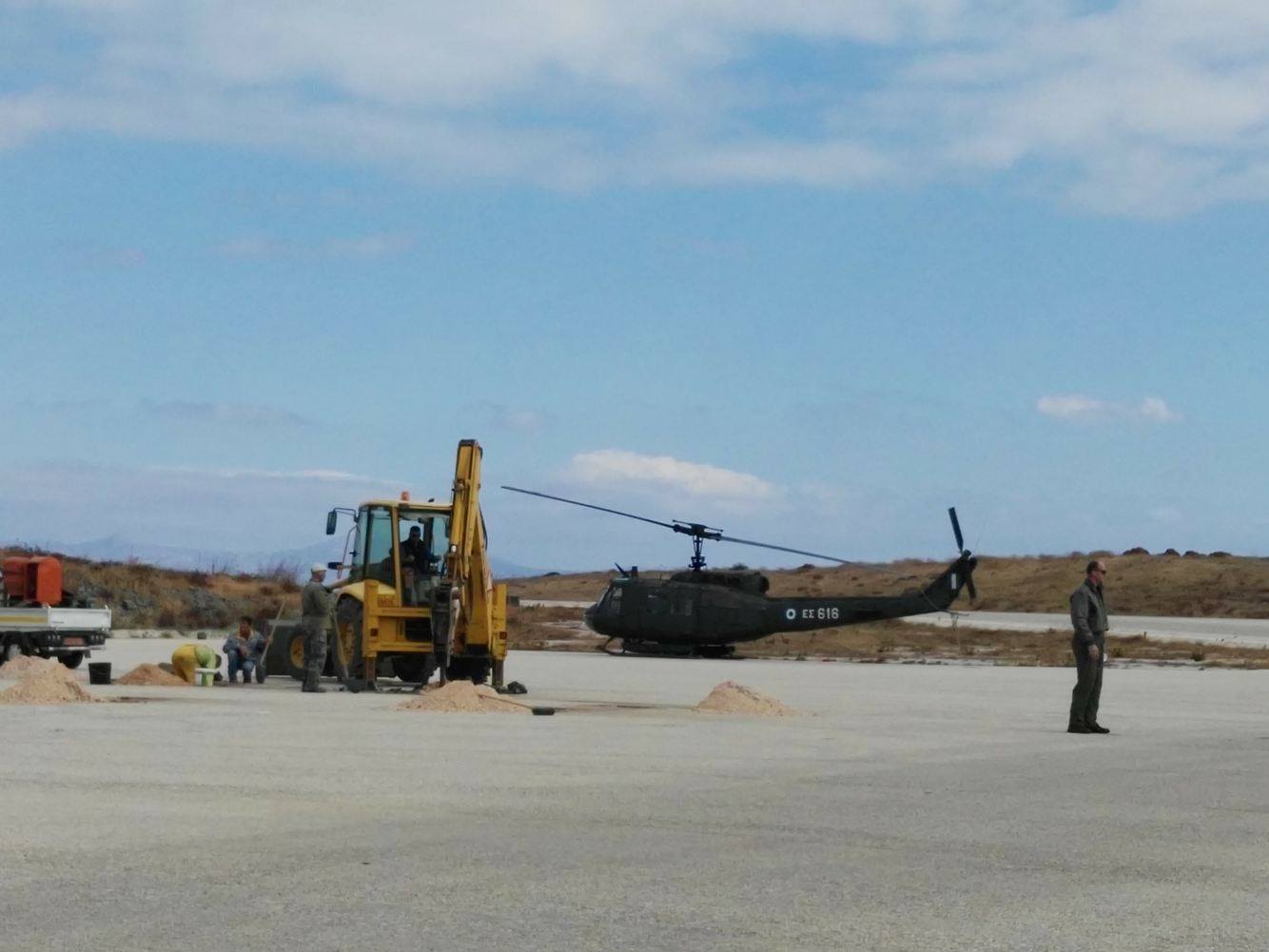 Μηχανήματα έργου με τους χειριστές τους, καθώς και εργάτες του Τμήματος Μικρών Έργων του Δήμου, κατόπιν των εγκρίσεων της Υπηρεσίας Πολιτικής Αεροπορίας (ΥΠΑ) και καθ΄ υπόδειξη των αρμοδίων της Πολεμικής Αεροπορίας προχώρησαν χθες και στις παρεμβάσεις επί της “πίστας” του αεροδρομίου, προκειμένου να διαμορφωθεί καταλλήλως, ο χώρος που θα προσαπογειώνεται το ελικόπτερο των αεροδιακομιδών, αλλά επίσης, θα φυλάσσεται και θα παραμένει.