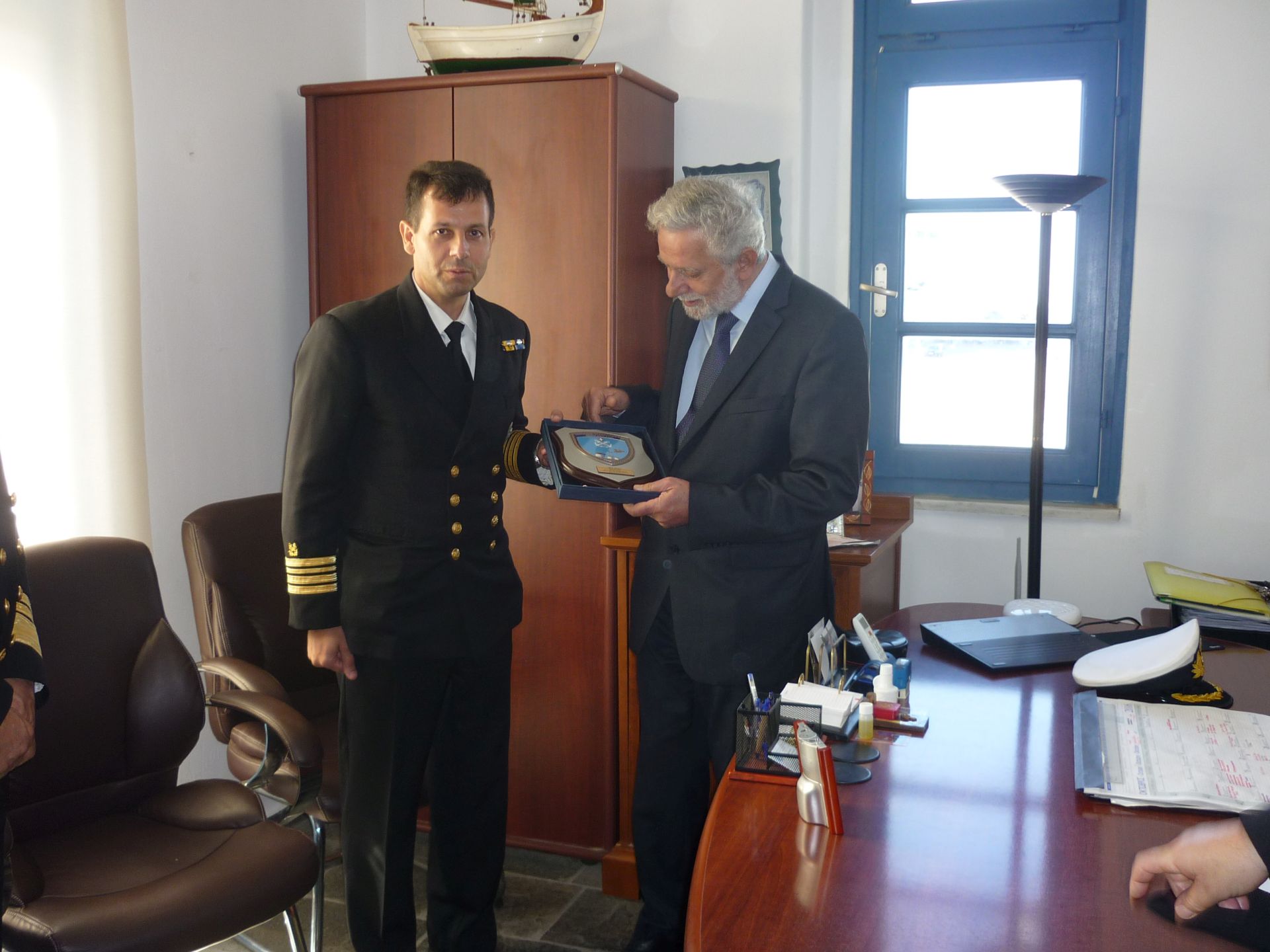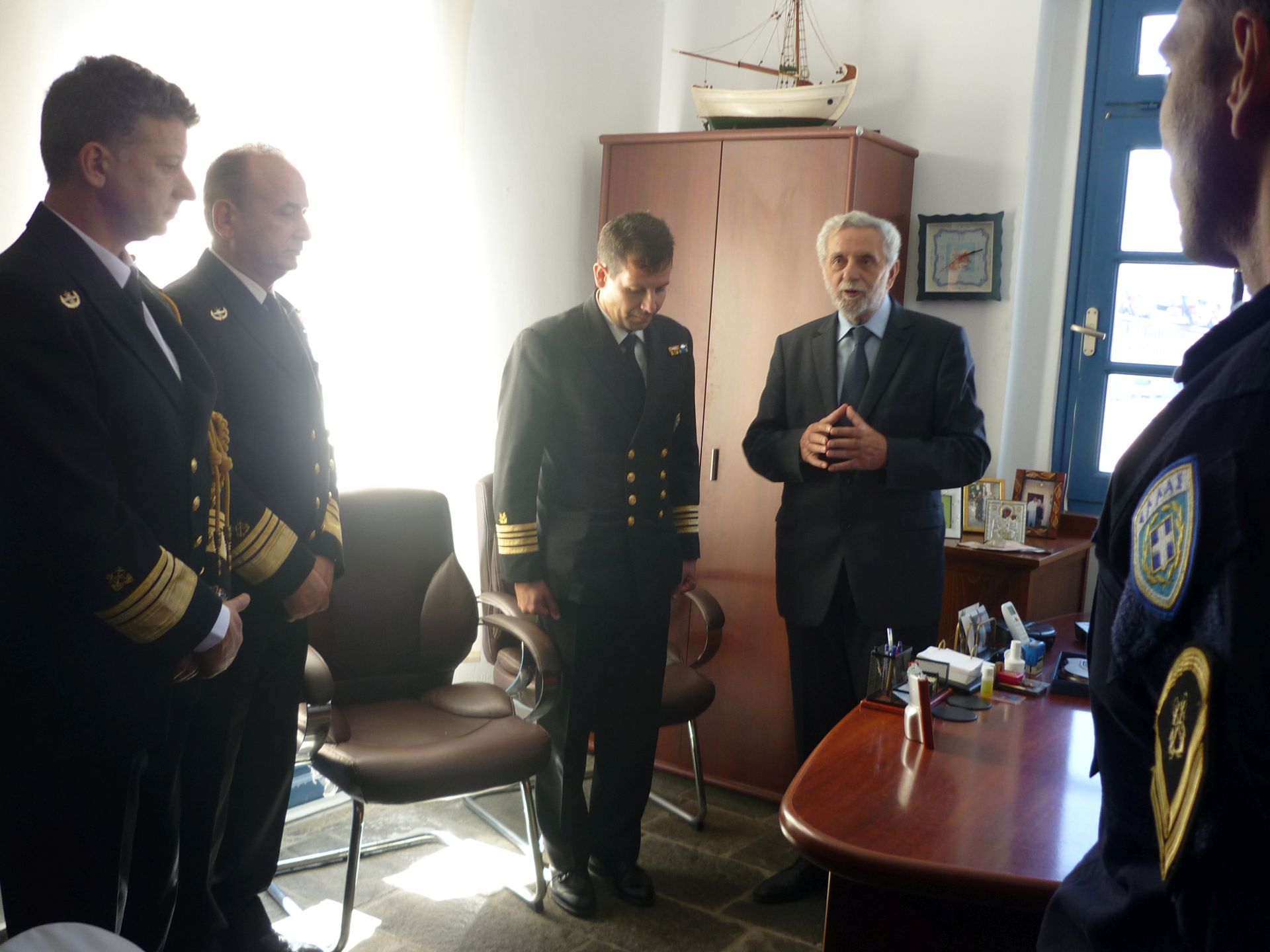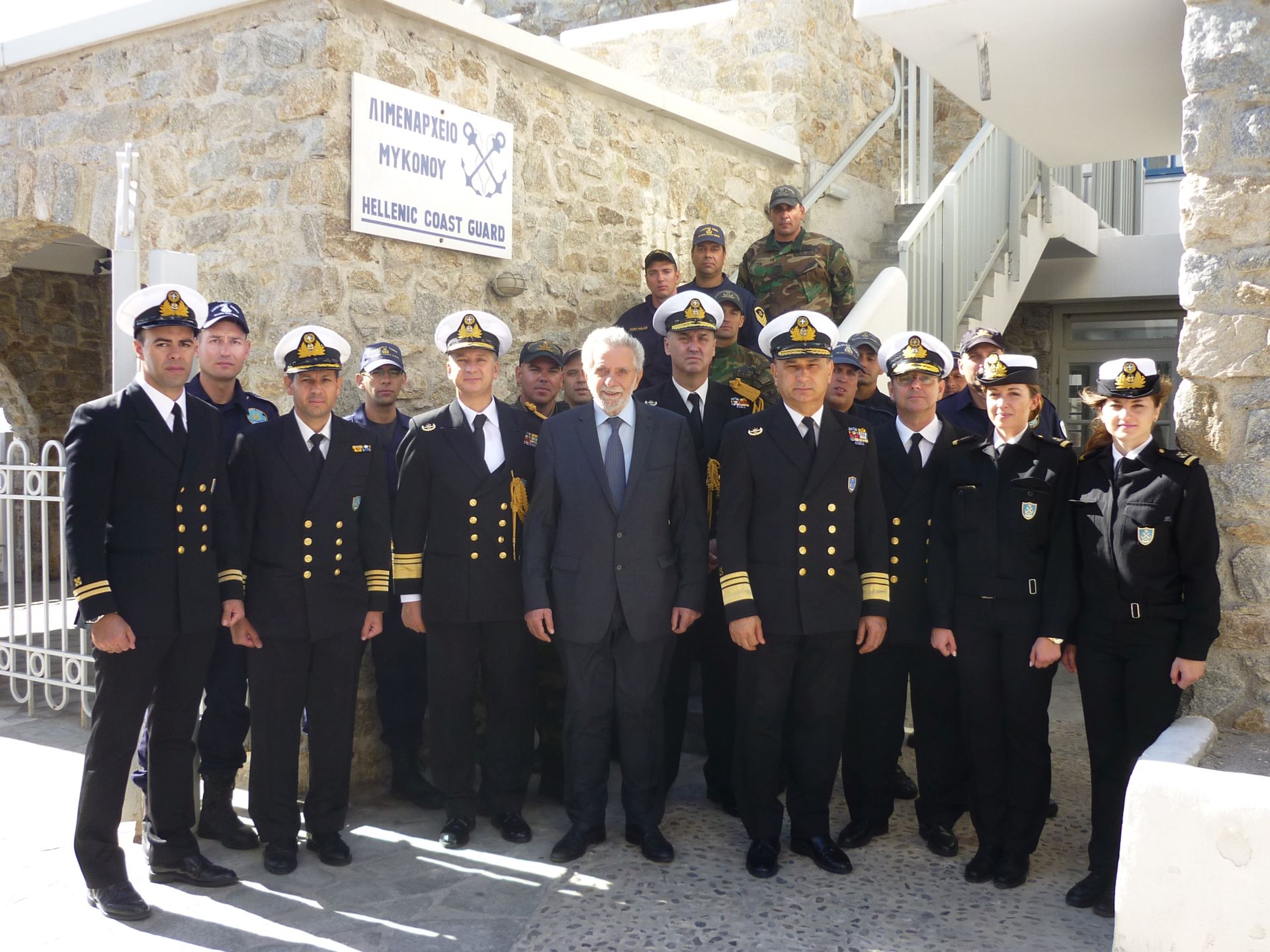 Ο Υπουργός Ναυτιλίας και Νησιωτικής Πολιτικής κ. Θοδωρής Δρίτσας και ο Αρχηγός του Λιμενικού Σώματος – Ελληνικής Ακτοφυλακής Αντιναύαρχος Λ.Σ. Σταμάτιος Ράπτης, στο πλαίσιο των εορταστικών εκδηλώσεων που πραγματοποιήθηκαν την 19 και 20 Οκτωβρίου 2016, για τη μνήμη του Πολιούχου Μυκόνου, Αγίου Μεγαλομάρτυρα Αρτεμίου, επισκέφθηκαν και τη Λιμενική Αρχή Μυκόνου, συνοδευόμενοι από τον Α’ Υπαρχηγό του Λ.Σ. – ΕΛ.ΑΚΤ. Αντιναύαρχο Λ.Σ. Θεόδωρο Κλιάρη και το Διοικητή της 6ης Περιφερειακής Διοίκησης Λ.Σ. –ΕΛ.ΑΚΤ. Αρχιπλοίαρχο Λ.Σ. Χαράλαμπο Αϊβαλιώτη.