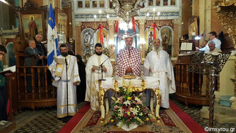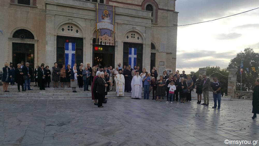 Με την ευχή και ευλογία του Σεβ. Ποιμενάρχη μας κ. Δωροθέου Β’, στον κατάμεστο από πιστούς, Ιερό και μεγαλοπρεπή Ναό της Αναστάσεως του Κυρίου που δεσπόζει στον λόφο του Βροντάδου της Σύρου, εορτάσθηκε η μνήμη του Αγίου Μεγαλομάρτυρος Αρτεμίου, προστάτου του Συνδέσμου Σιτεργατών και Εργατών Λιμένος Σύρου, για τους οποίους τελέσθηκε αρτοκλασία. Για τον λόγο αυτό διεκομίσθη από τον ομώνυμο Ναό της Μυκόνου, το χαριτόβρυτο απότμημα των Λειψάνων του. Κατά την άφιξη του, στα προπύλαια του Ναού, πλήθος κόσμου όλων των ηλικιών, έραναν με άνθη το ιερό λείψανο ενώ στην συνέχεια τελέσθηκε, λόγω της μνήμης του Αγίου Ιακώβου του Αδελφοθέου, η Αρχαιοπρεπής Λειτουργία του, από τους Πανοσιολ. Αρχιμ. Νικόλαο Γαβαλά, Αιδεσιμολ. Πρωτοπρ. Αντώνιο Χαλά και Πέτρο Μαραγκό και τον Διάκονο Βασίλειο.