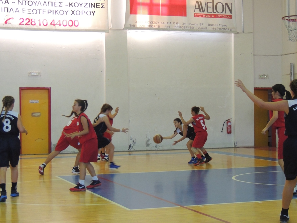 Σε μία επανάληψη του περσινού τελικού των κορασίδων, η ομάδα του Α.Ο. Ερμούπολης κατάφερε πάλι να πάρει το ροζ φύλλο αγώνος, επικρατώντας της αξιόμαχης ομάδας από την Τήνο με 47-35. Οι αθλήτριες του Ανδρέα Μαύρου πέτυχαν το 2 στα 2 παραμένοντας έτσι στην κορυφή του ομίλου, αφού ξεπέρασαν και το εμπόδιο του Περιστεριώνα.