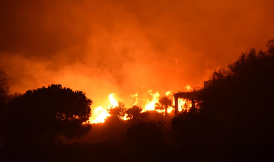 17:30 Η πυρκαγιά εξαπλώνεται ακόμη περισσότερο, με τις φλόγες να έχουν ανέβει σε όλη την πλαγιά του λόφου και να προχωρούν με μεγάλη ορμή.