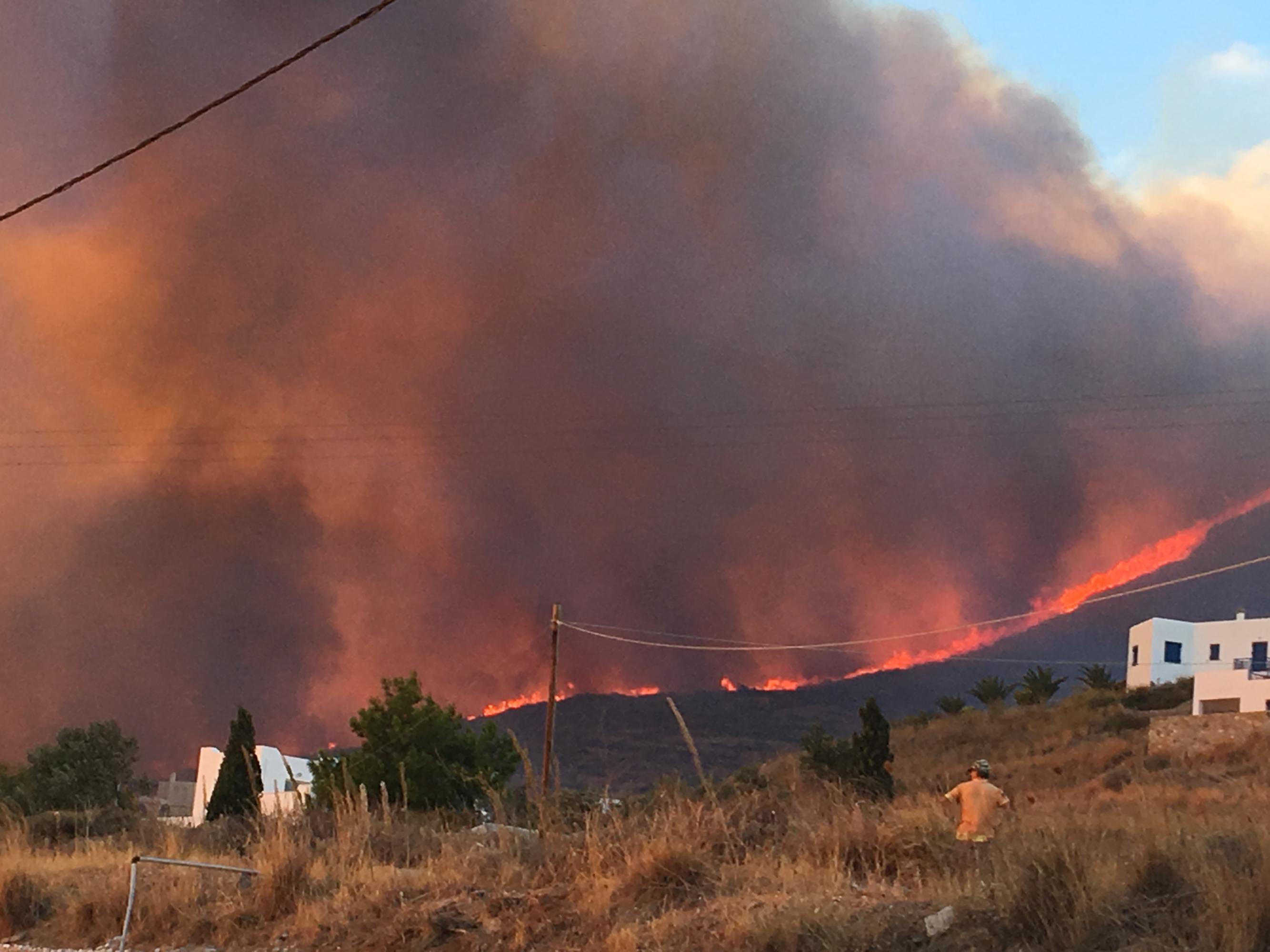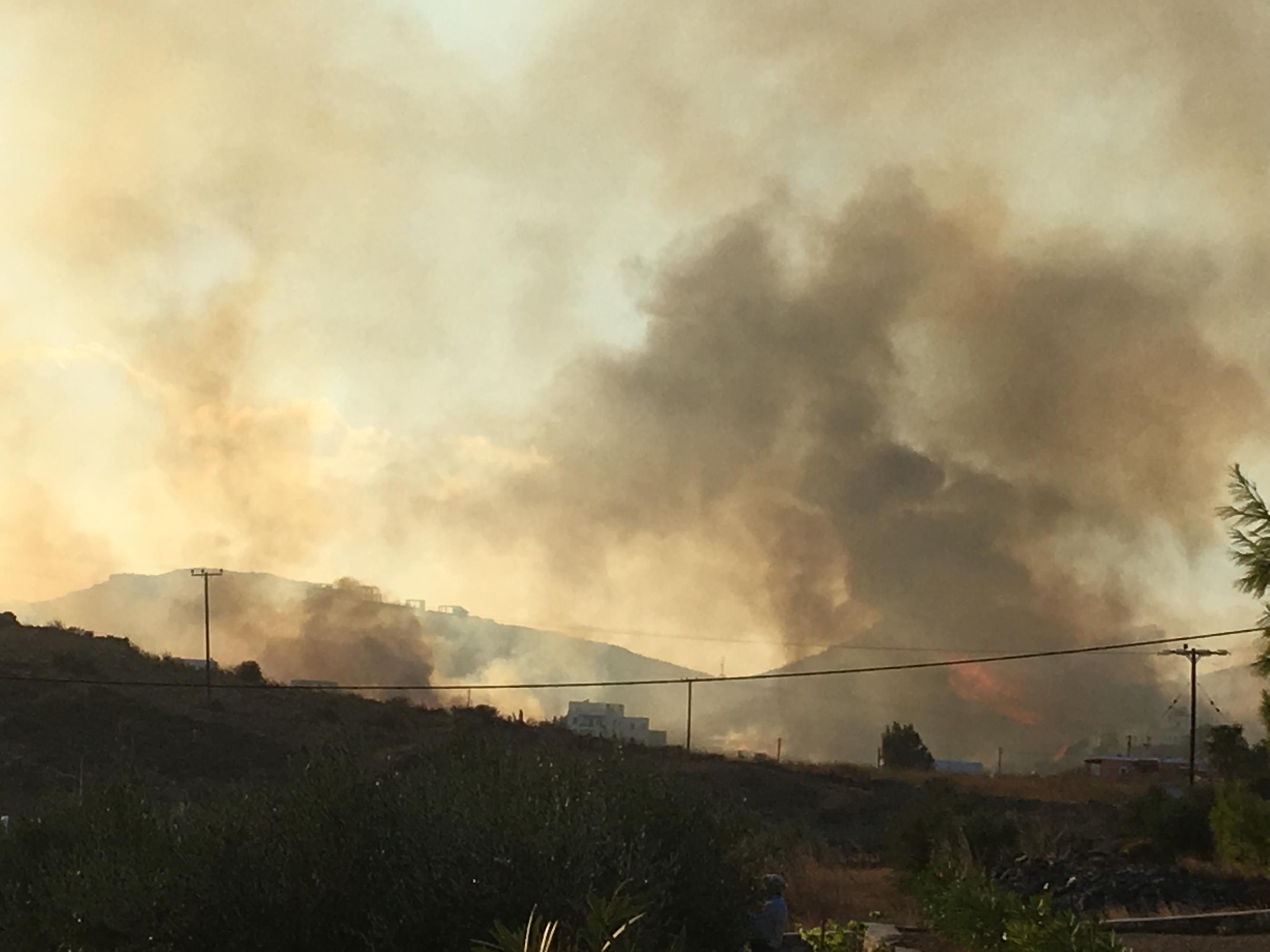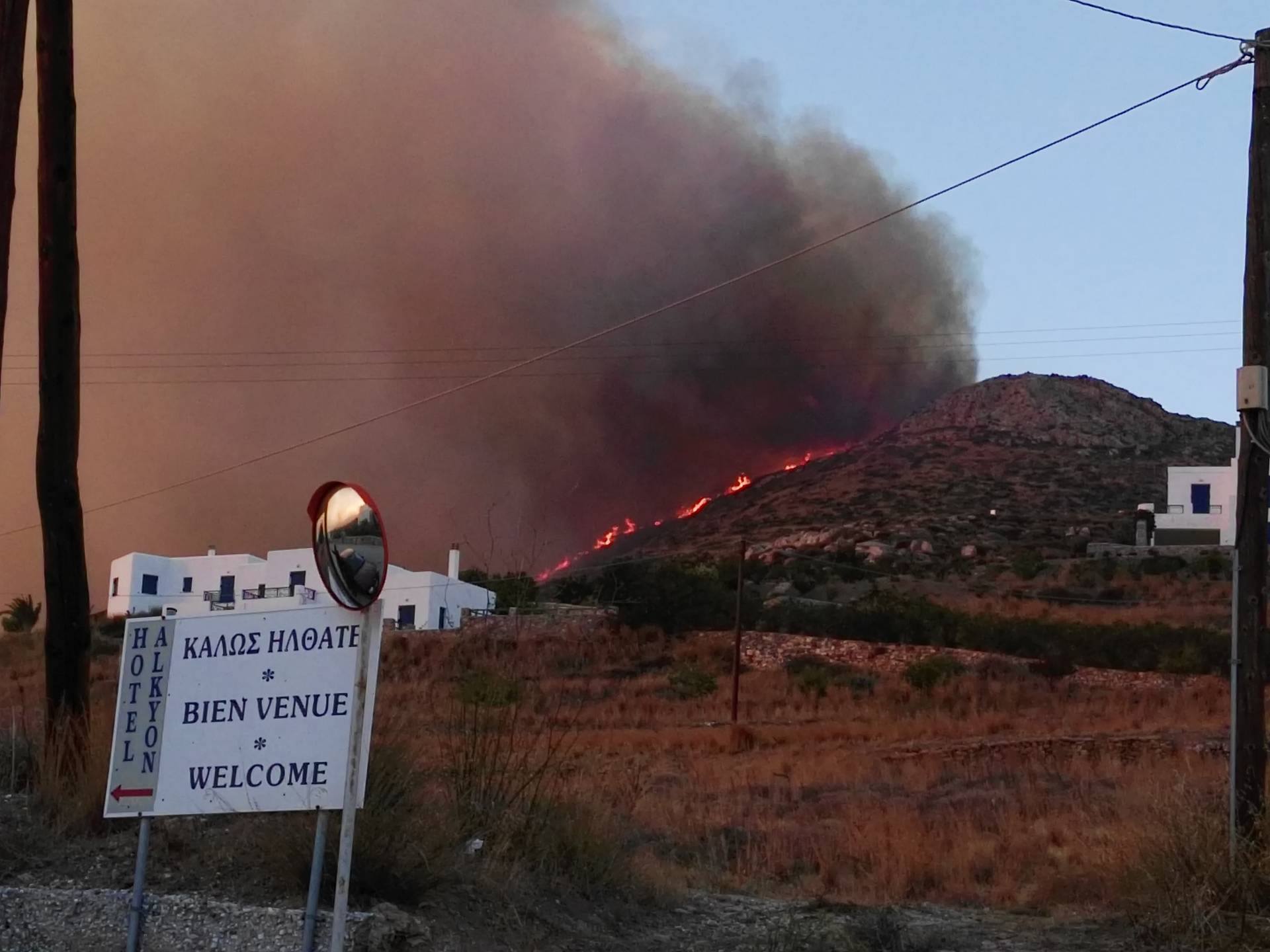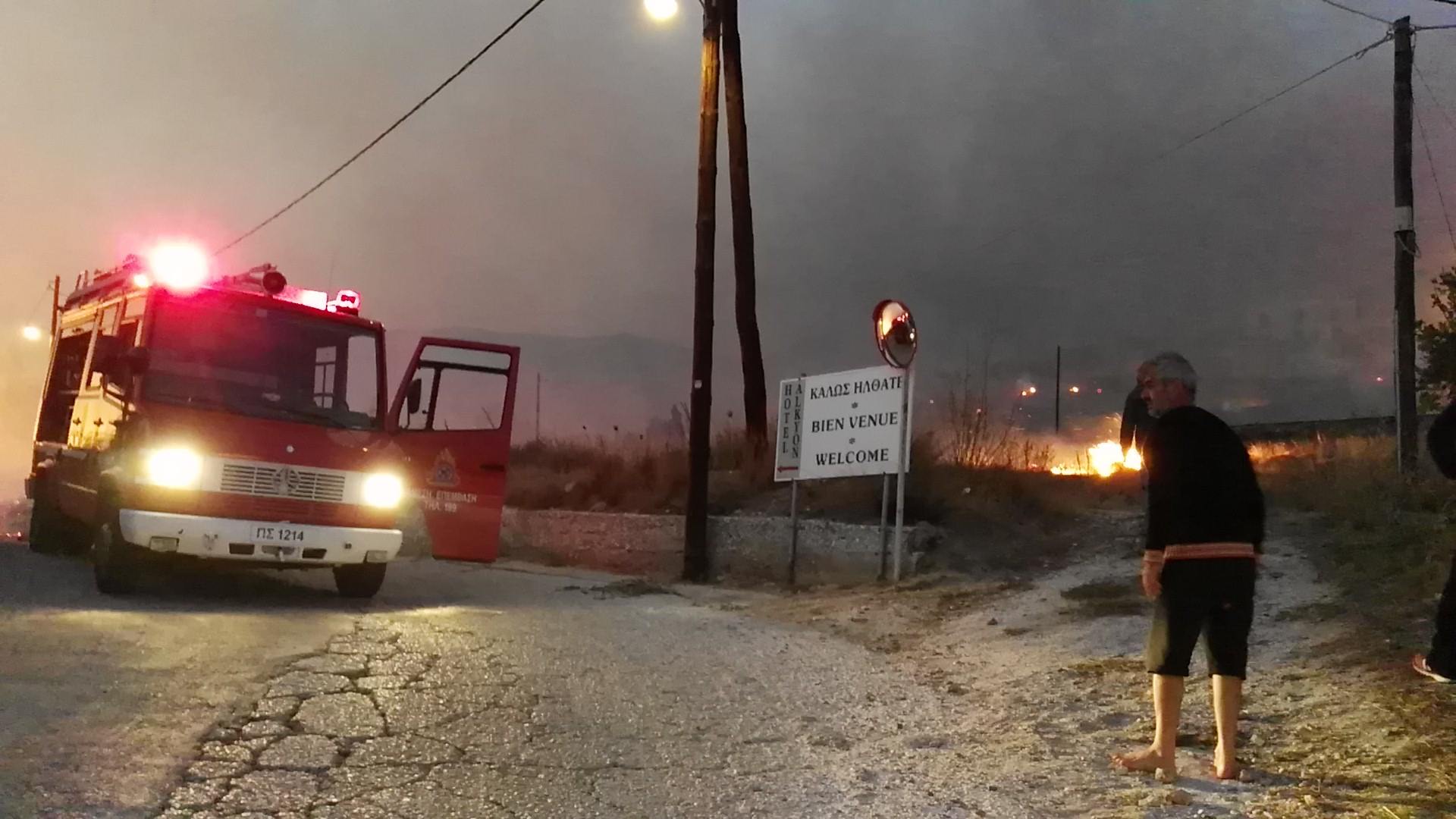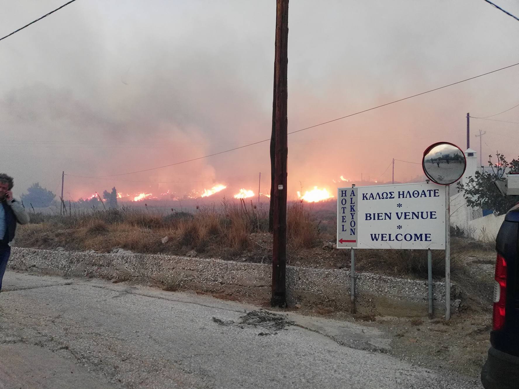 19:30 Η πυρκαγιά έφτασε έως και το χαμηλό σημείο του κεντρικού δρόμου στο Μέγα Γιαλό, ενώ από νωρίς επεκτάθηκε, λόγω των ριπών του ανέμου, στην Αμπέλα και τα Τρία Λαγγόνια. Αυτή τη στιγμή συνεχίζει να επεκτείνεται προς Άδειατα.
