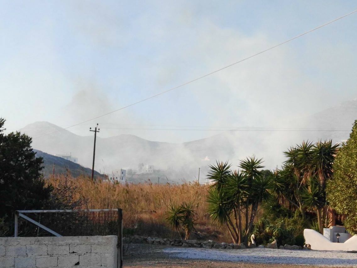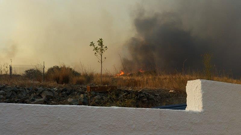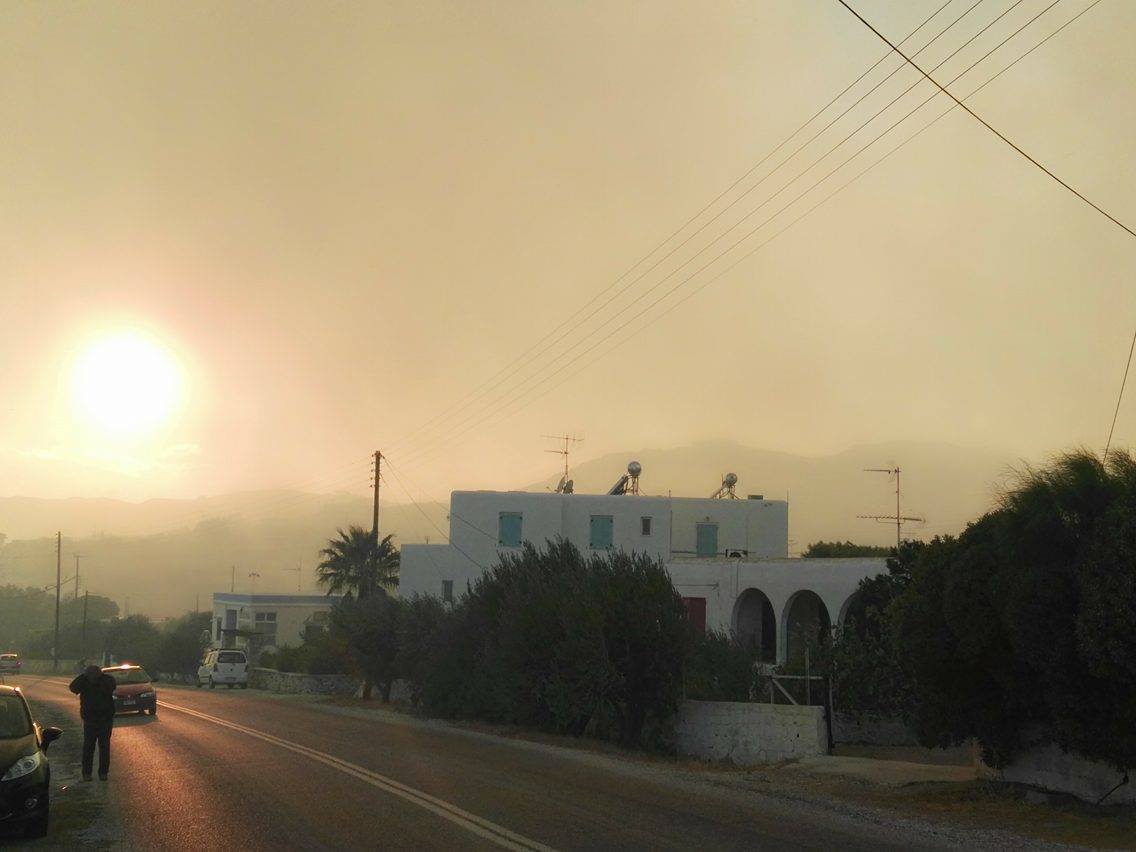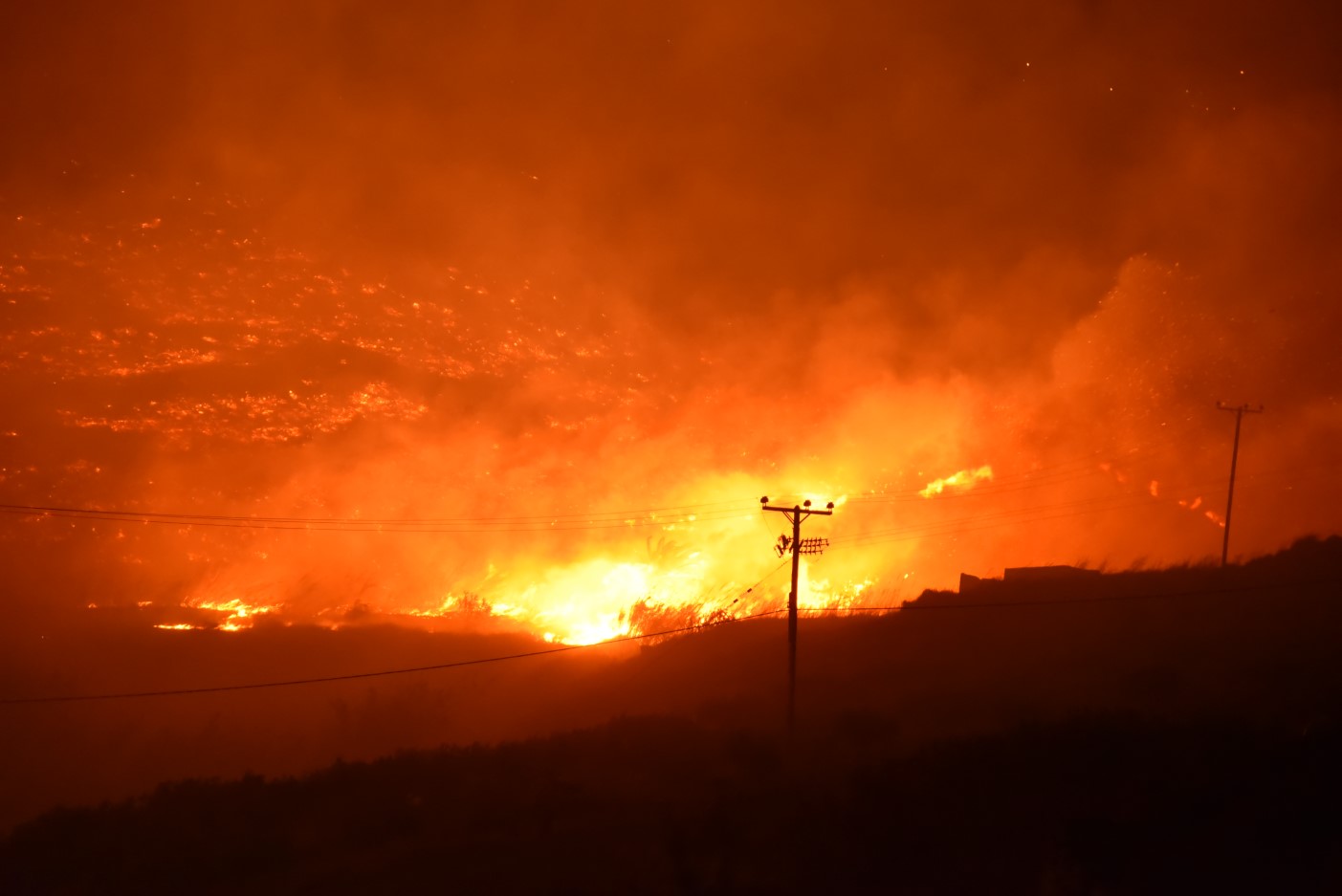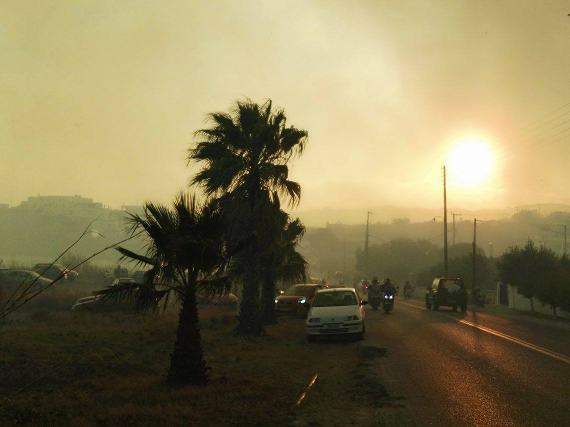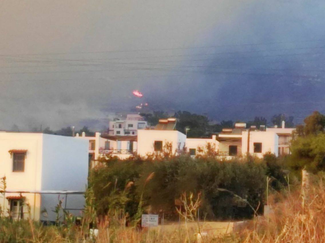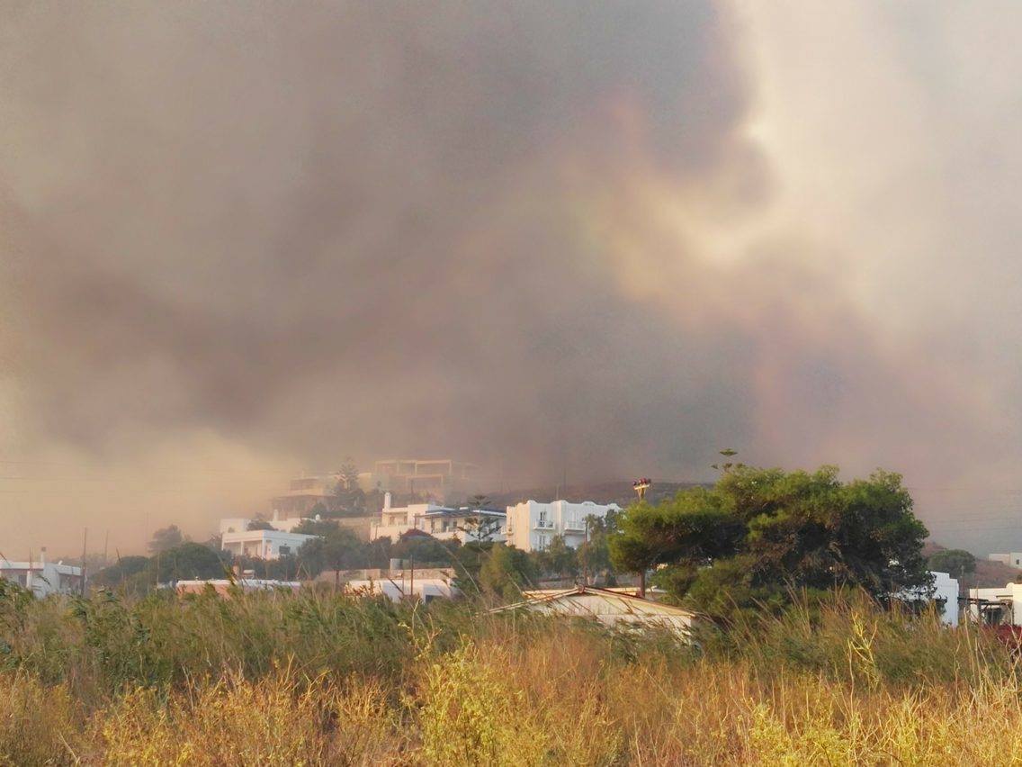 19:30 Η πυρκαγιά έφτασε έως και το χαμηλό σημείο του κεντρικού δρόμου στο Μέγα Γιαλό, ενώ από νωρίς επεκτάθηκε, λόγω των ριπών του ανέμου, στην Αμπέλα και τα Τρία Λαγγόνια. Αυτή τη στιγμή συνεχίζει να επεκτείνεται προς Άδειατα.