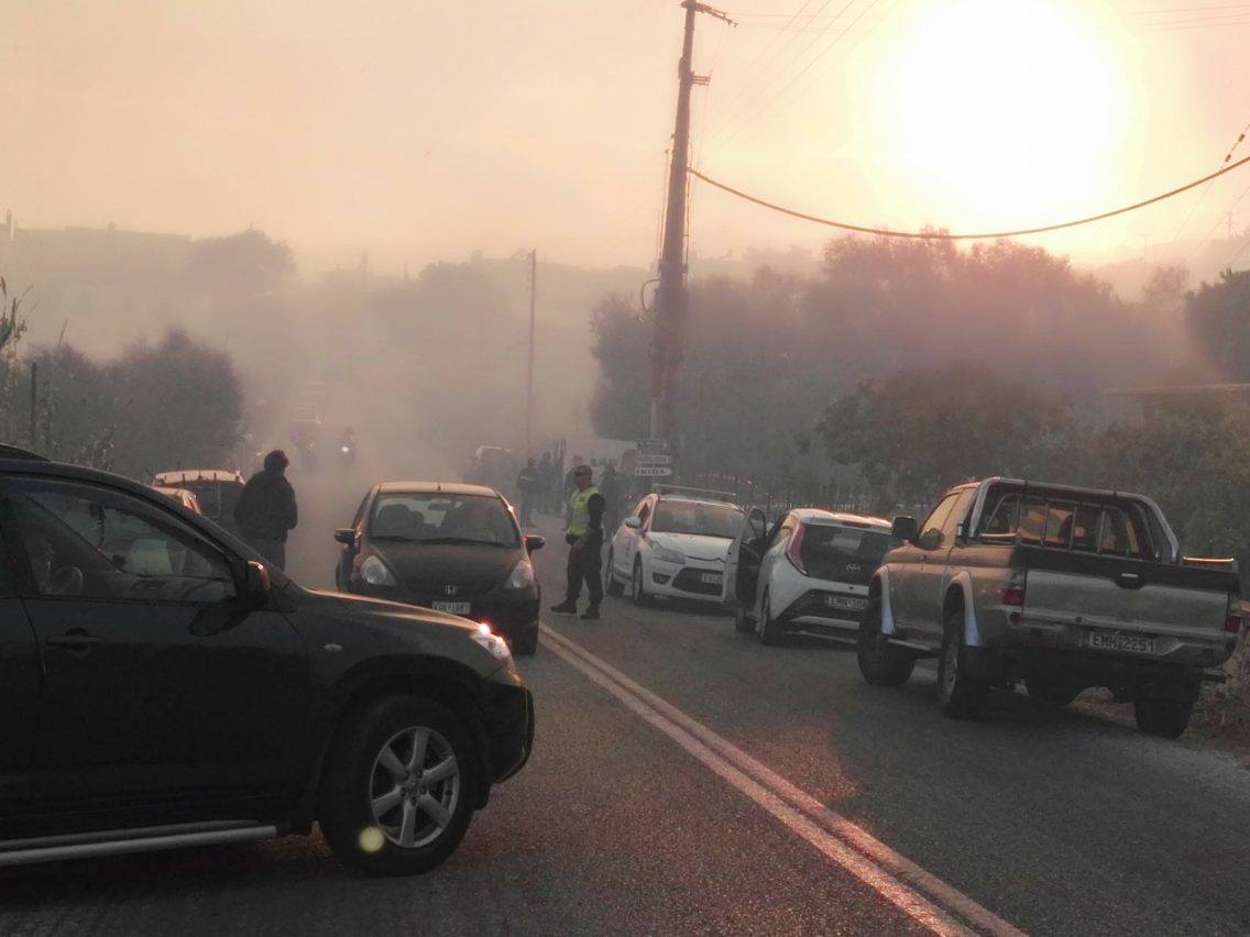 Οι αρχές έχουν κλείσει το δρόμο στο ύψος του περιπτέρου της Ποσειδωνίας στη διασταύρωση, προκειμένου να προστατεύσει τους πολίτες, καθώς το μέτωπο μεταβαίνει ολοταχώς προς το δρόμο.