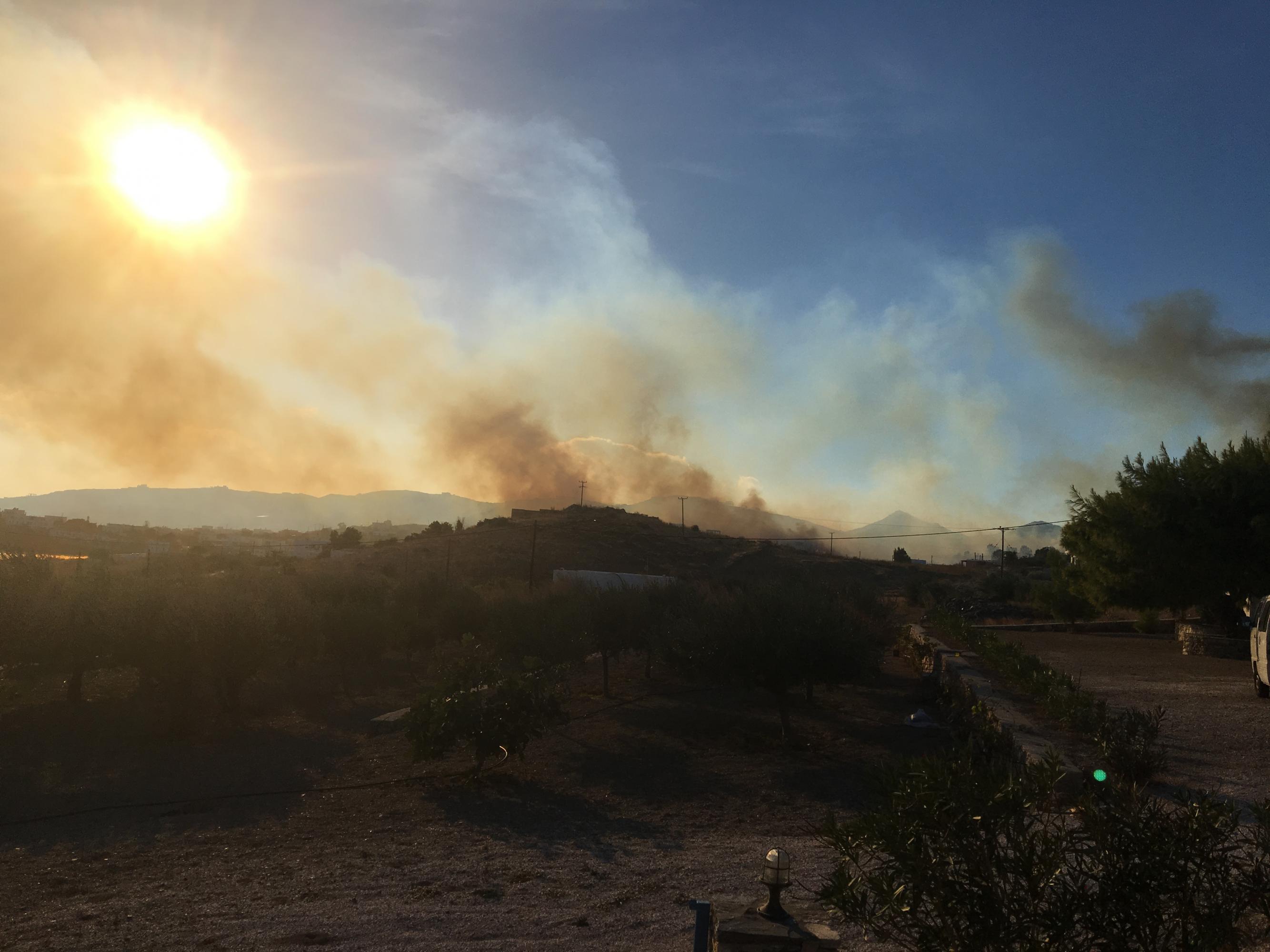 21:30 Το μέτωπο της πυρκαγιάς, που ζώνει την περιοχή της Ποσειδωνίας μένει ανεξέλεγκτο. Οι δυνάμεις της πυροσβεστικής επιχειρούν ακατάπαυστα, ωστόσο οι θυελώδεις άνεμοι βοηθούν στην εξάπλωση του ήδη μεγάλου μετώπου.