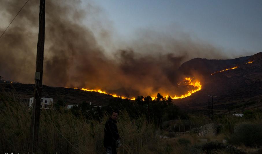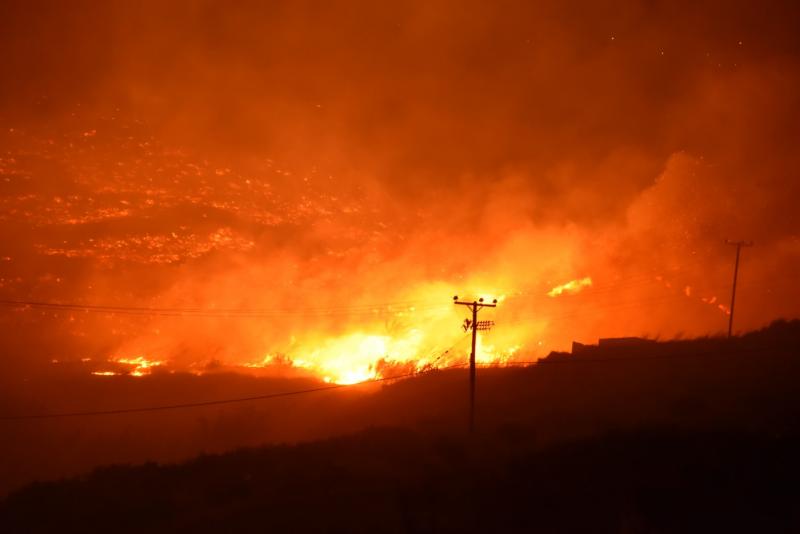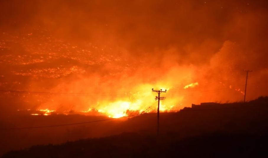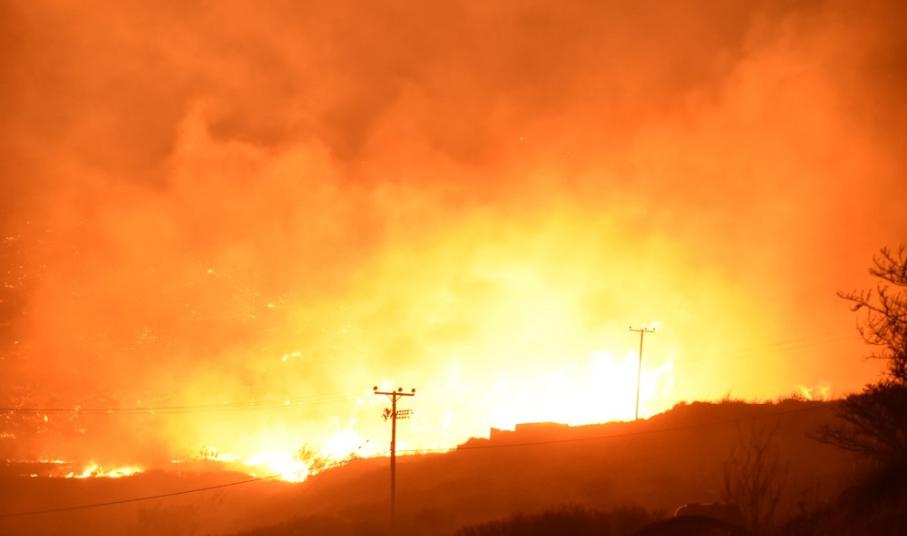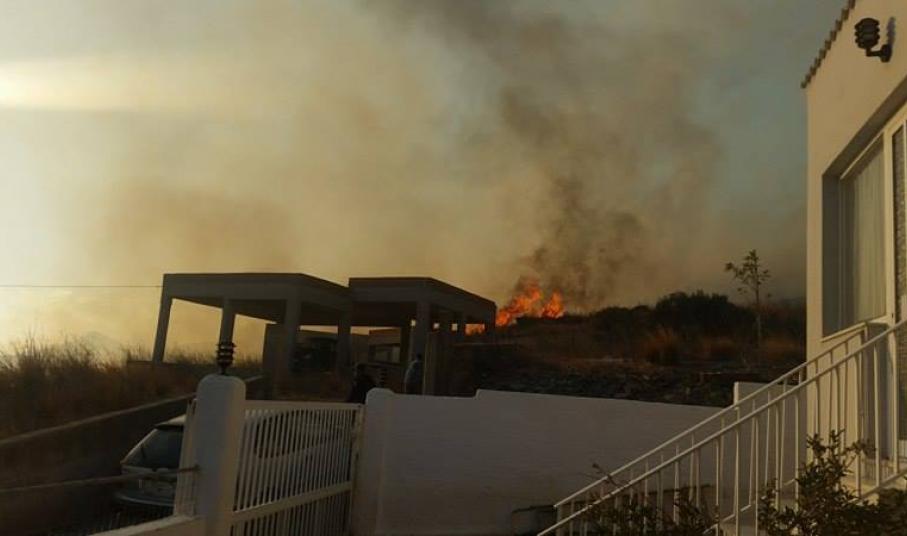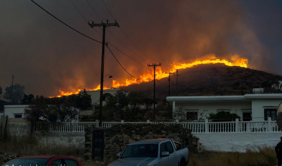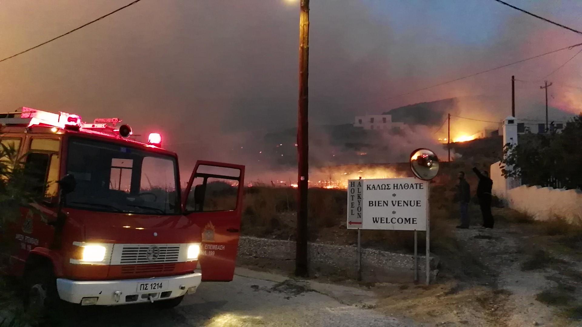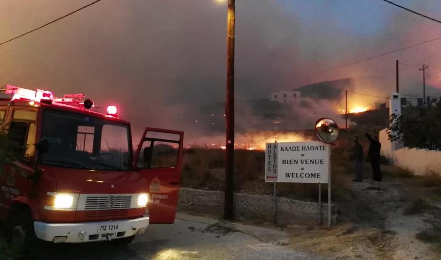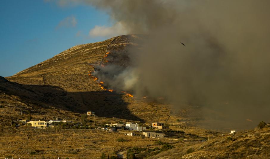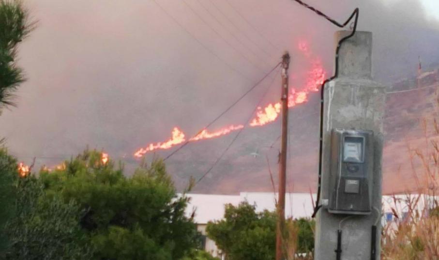 Η φωτιά ξέσπασε λίγα λεπτά πριν τις 5 χθες το απόγευμα στην περιοχή του Μέγα Γιαλού, με τις πληροφορίες να κάνουν λόγο για βραχυκύκλωμα σε καλώδιο υψηλής τάσης της ΔΕΗ, που προκάλεσε και εκτεταμένη διακοπή ρεύματος στο νησί.