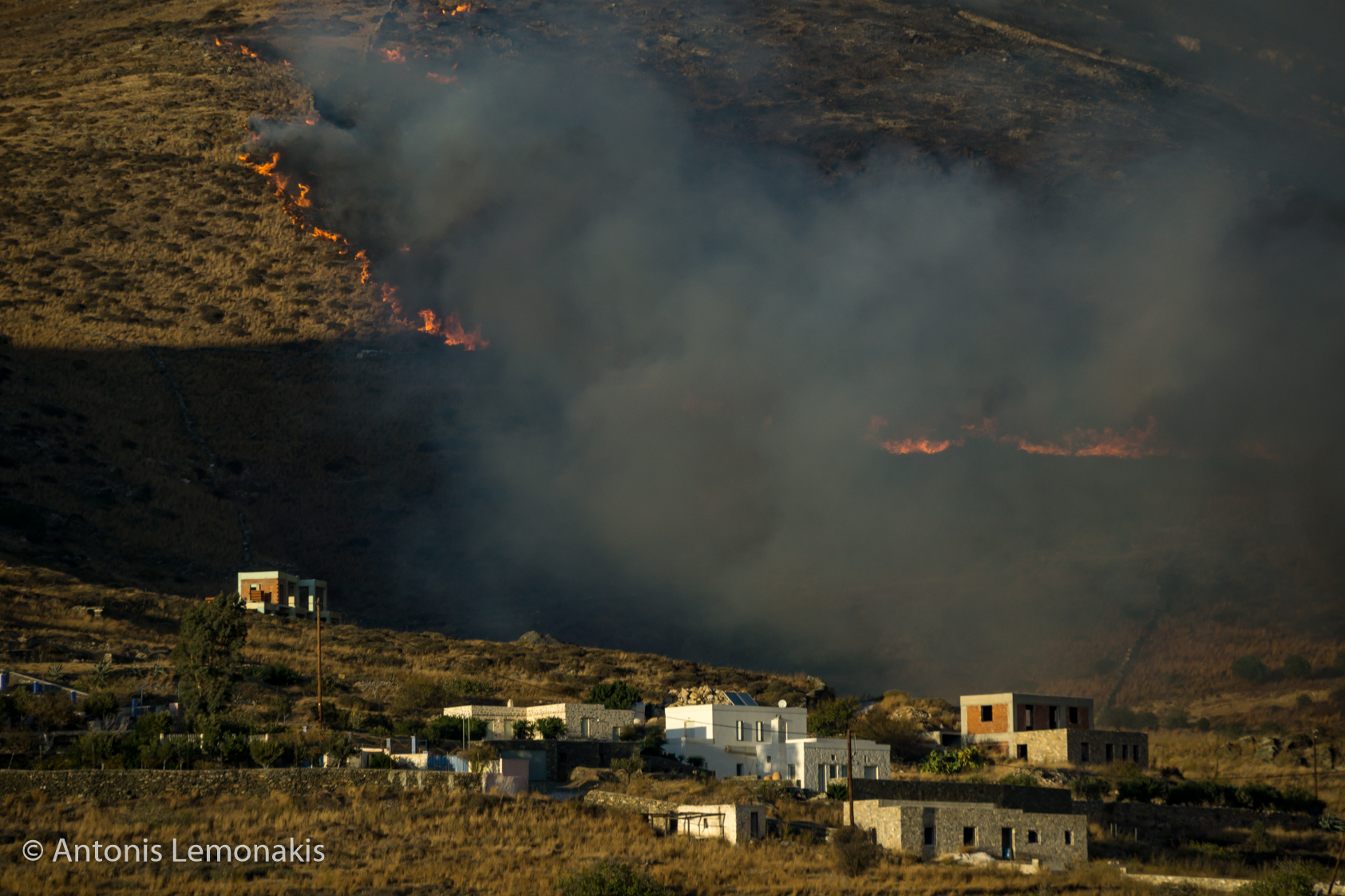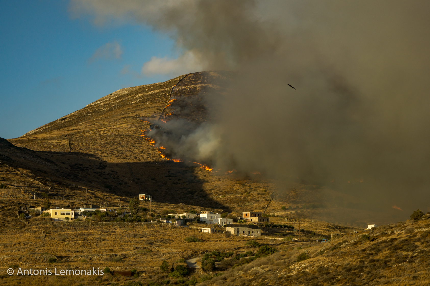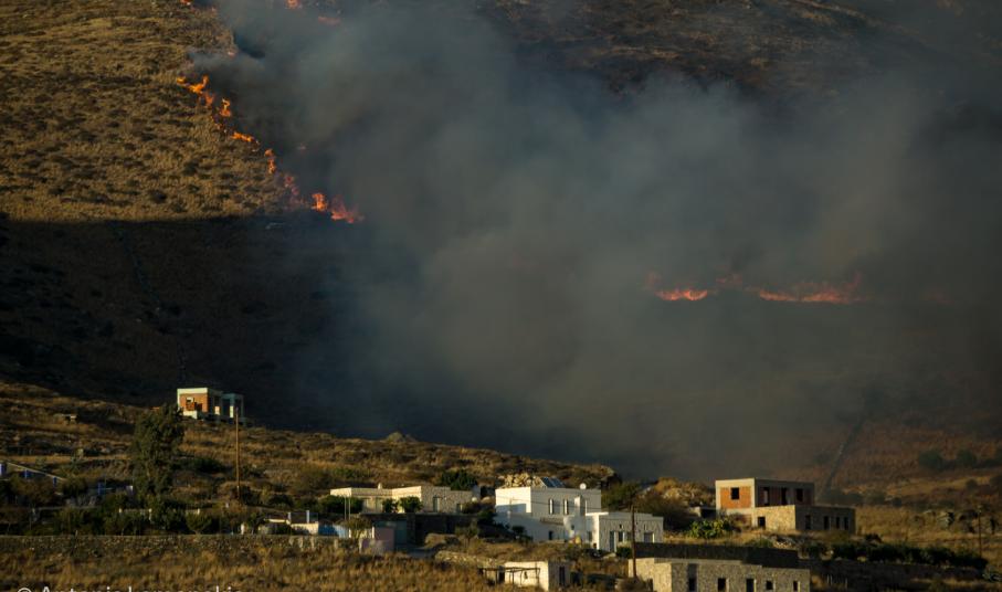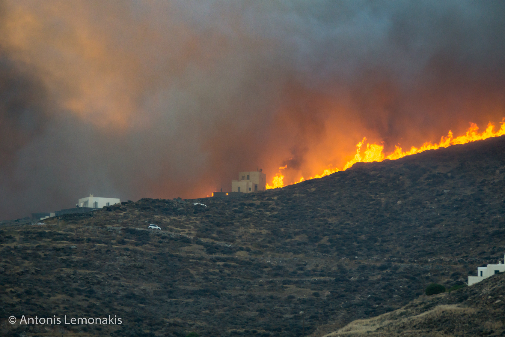 Την πύρινη απειλή αντιμετώπισε για ακόμα μία φορά η Σύρος, με την μεγάλη φωτιά που ξέσπασε εχθές στο νότιο τμήμα του νησιού και ήταν ιδιαιτέρως μεγάλης έκτασης και επικινδυνότητας.