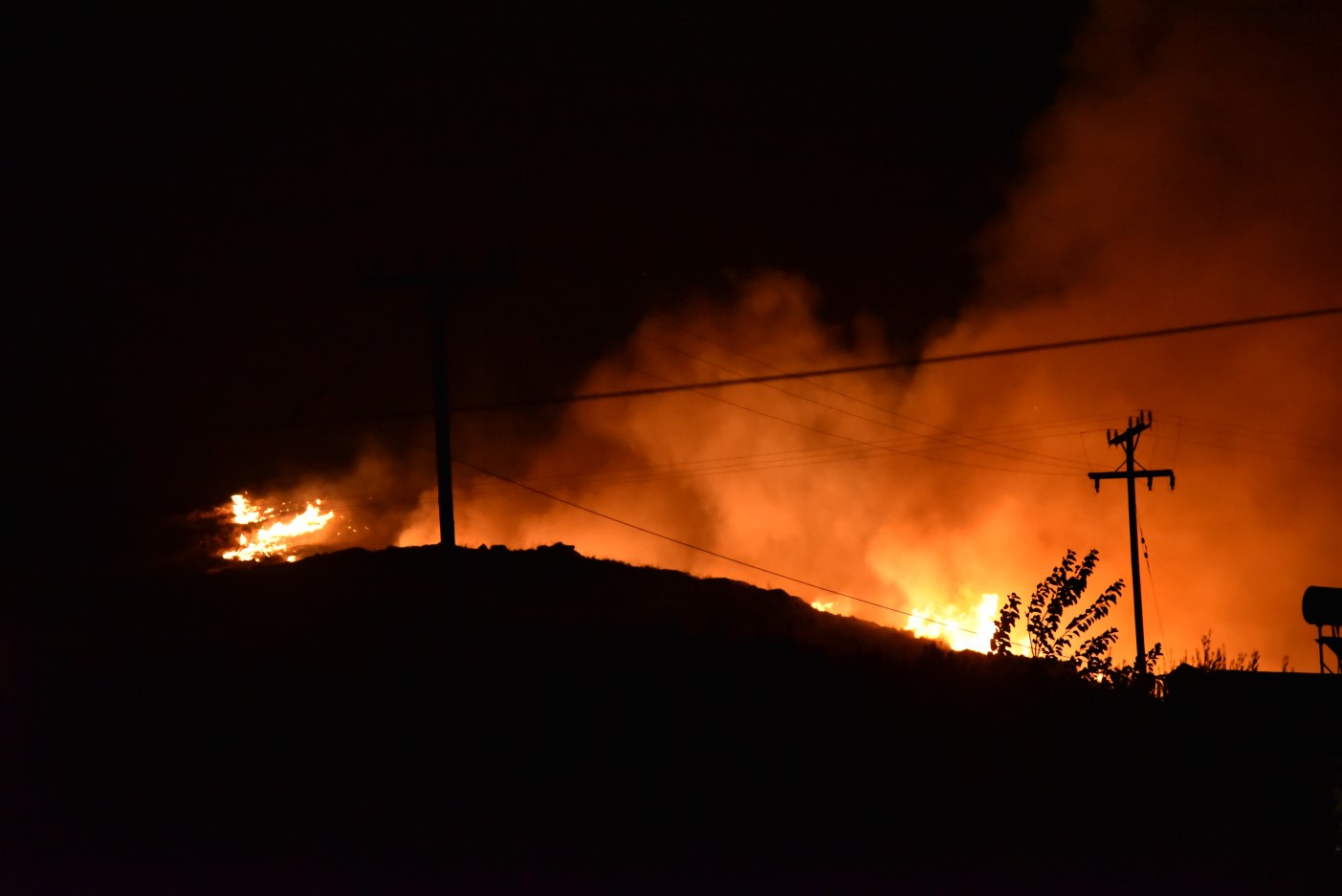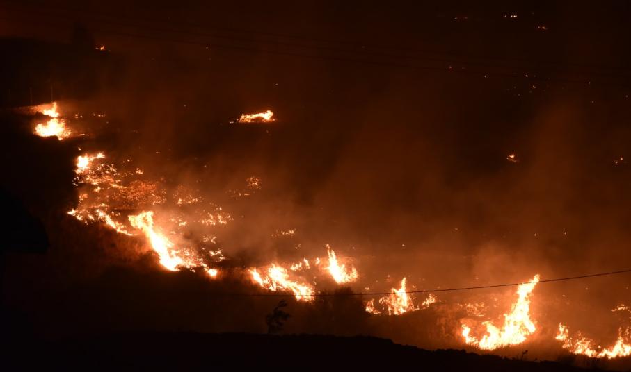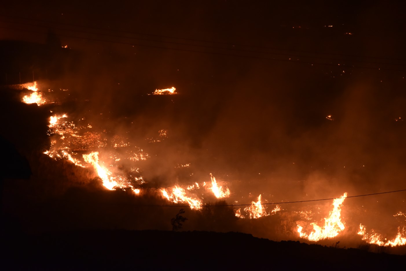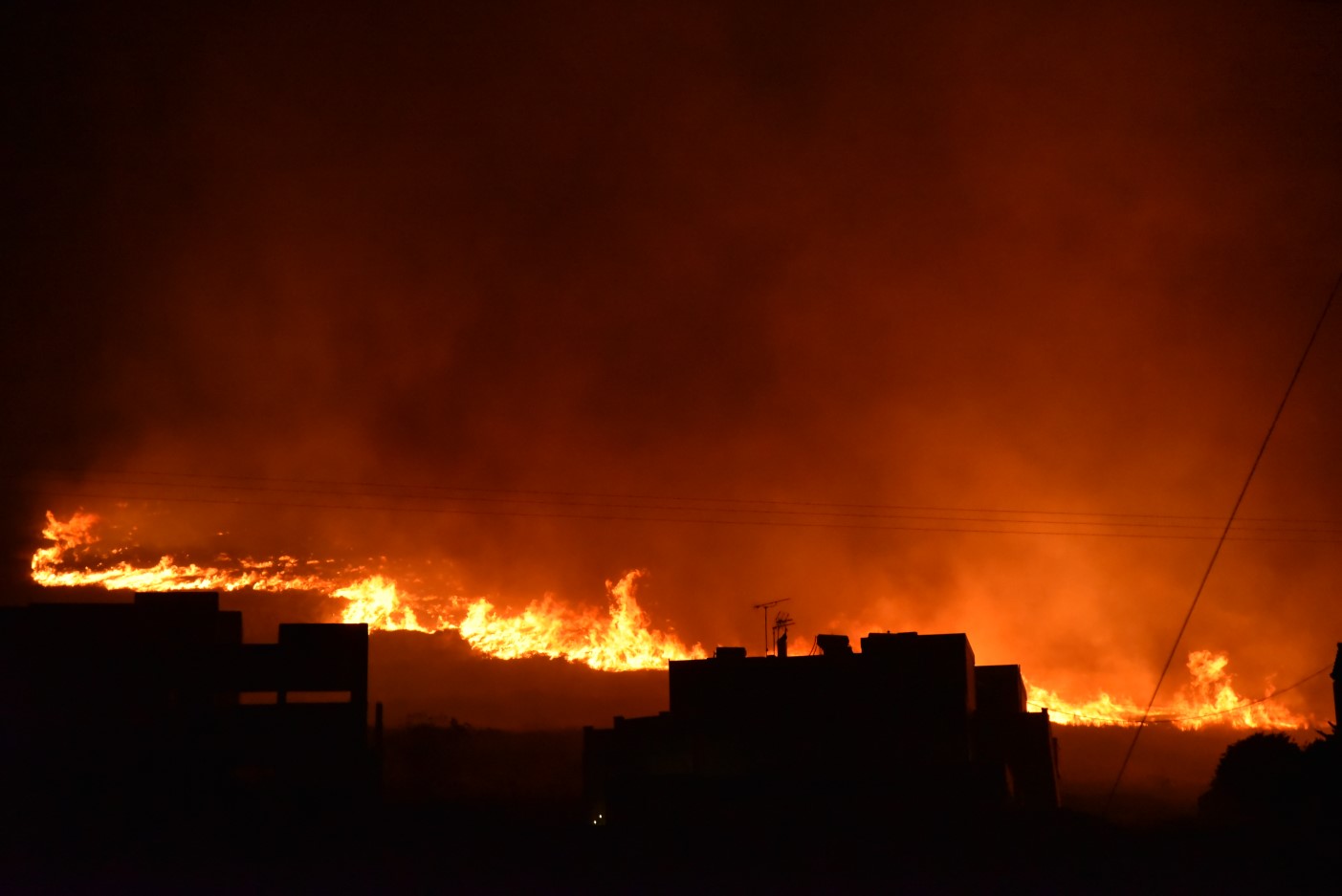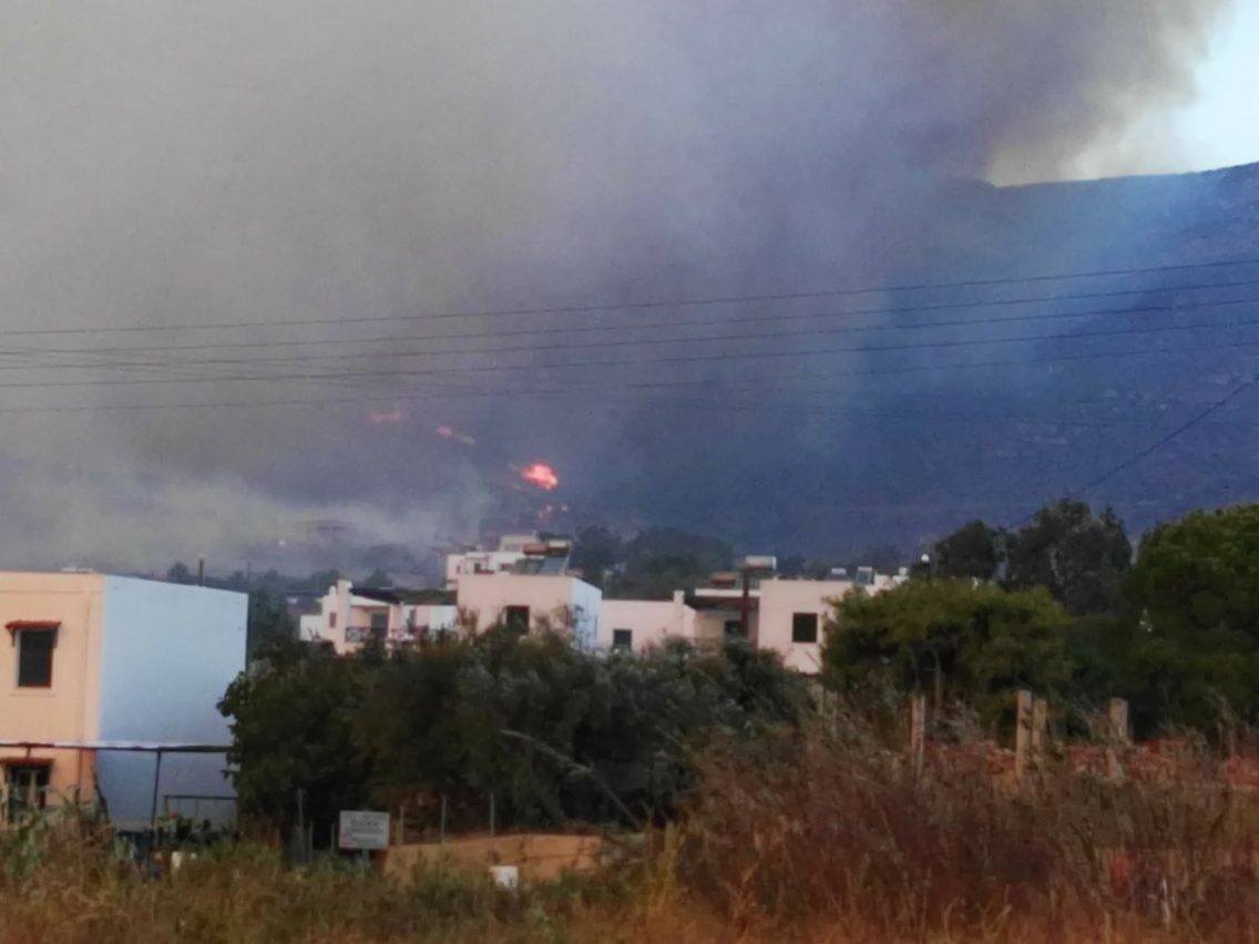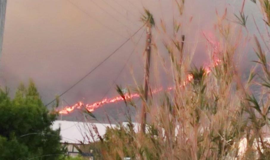 Μόλις μισή ώρα από την εκδήλωση της φωτιάς οι φλόγες είχαν ανέβει σε όλη την πλαγιά του λόφου και προχωρούσαν με μεγάλη ορμή, συνεχίζοντας να απειλεί κατοικίες, στις οποίες και προκλήθηκαν ζημιές.