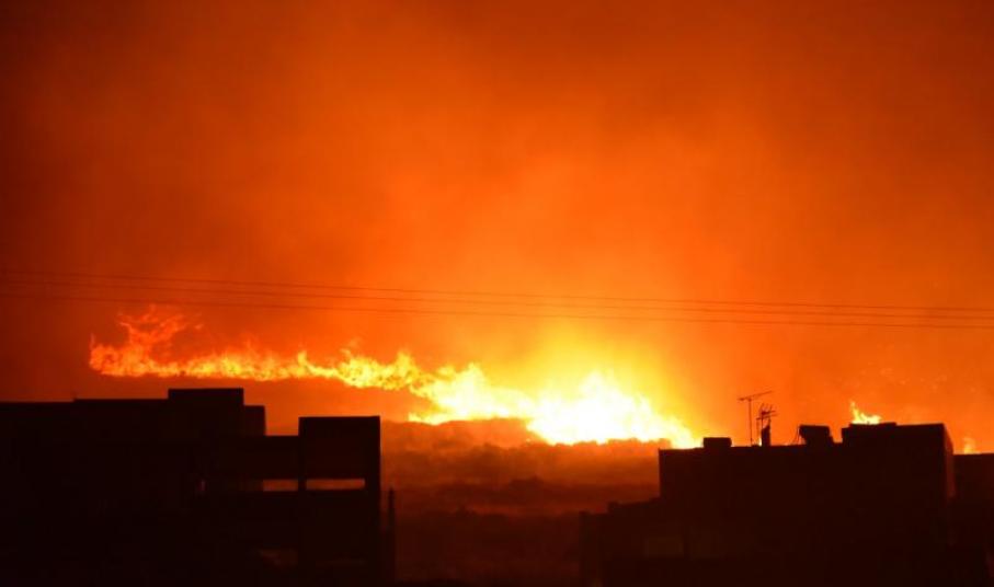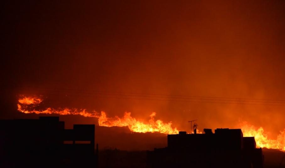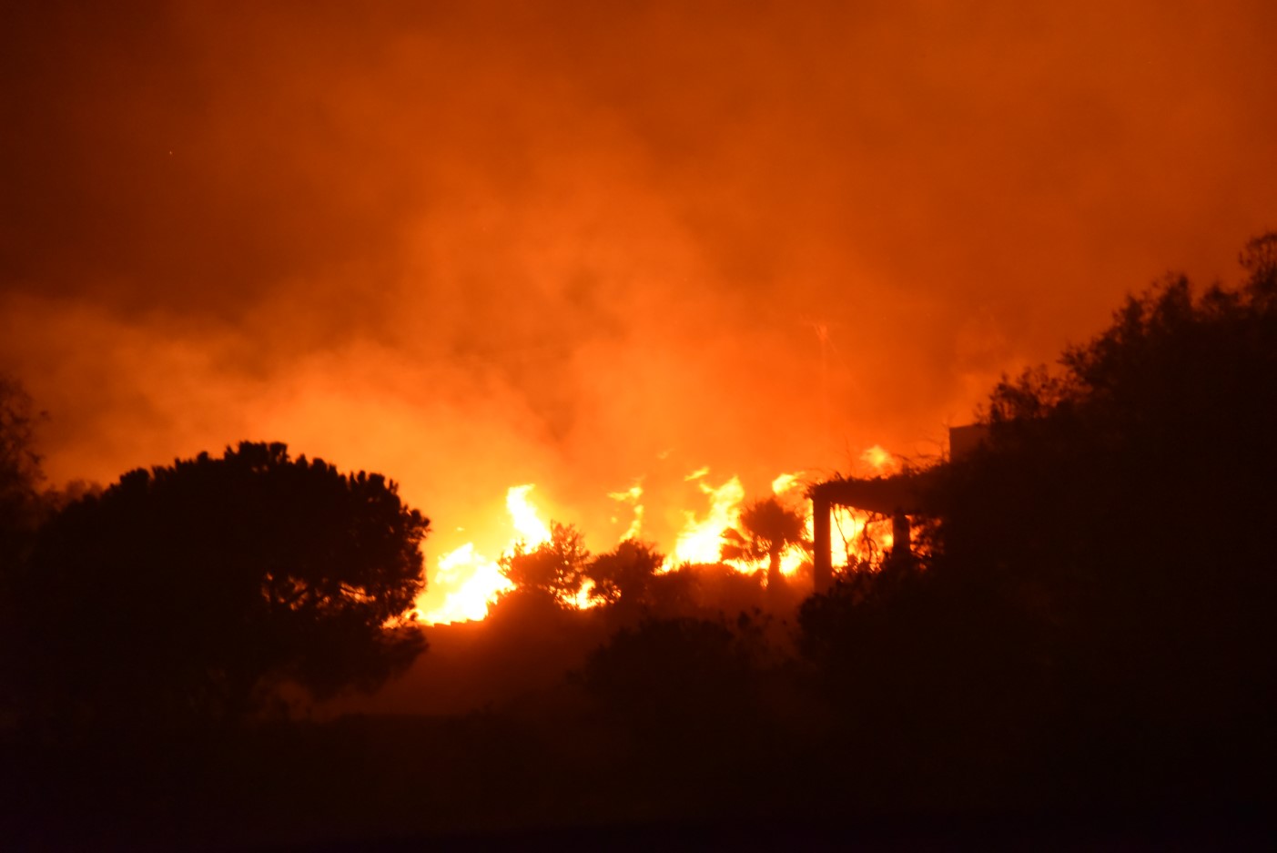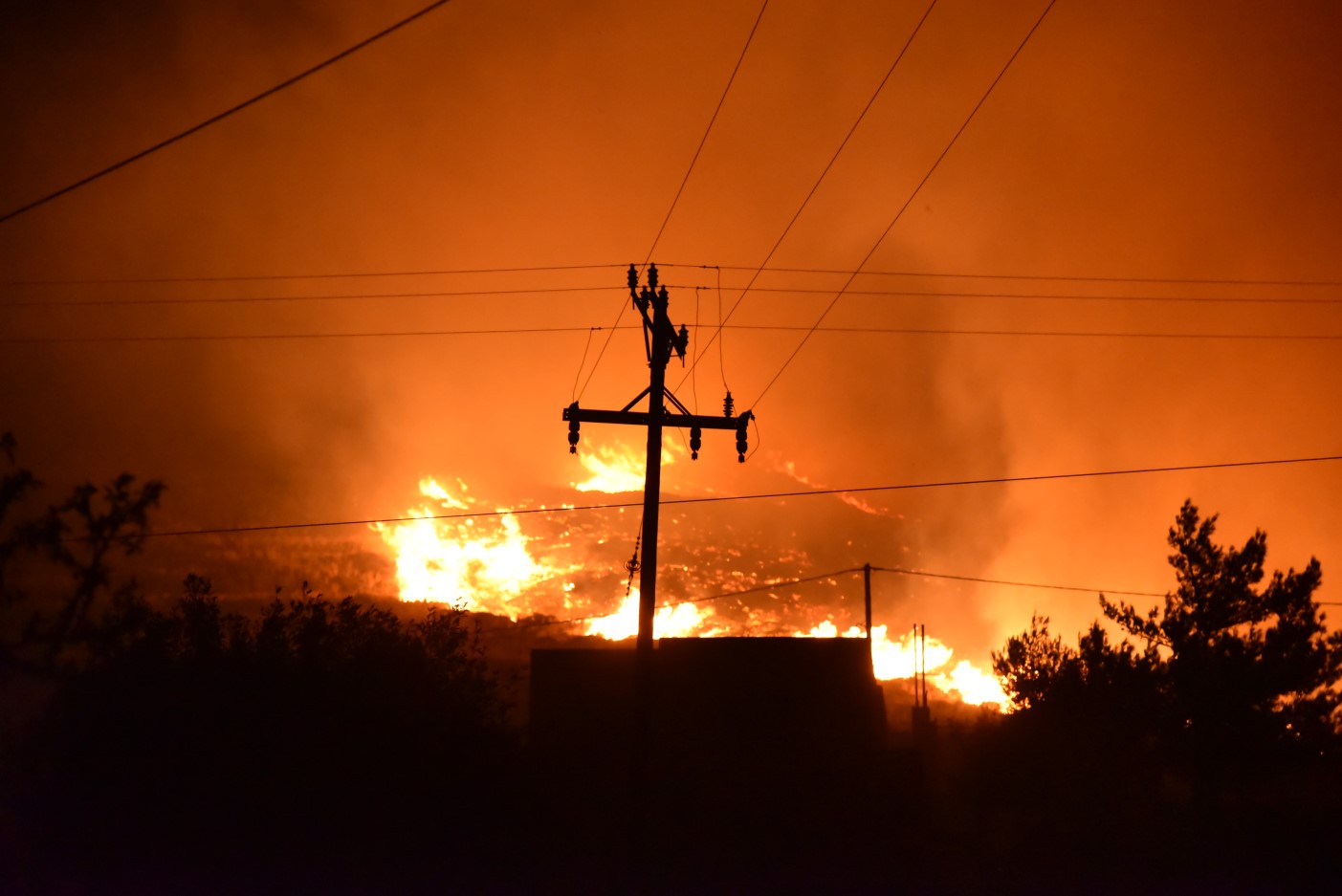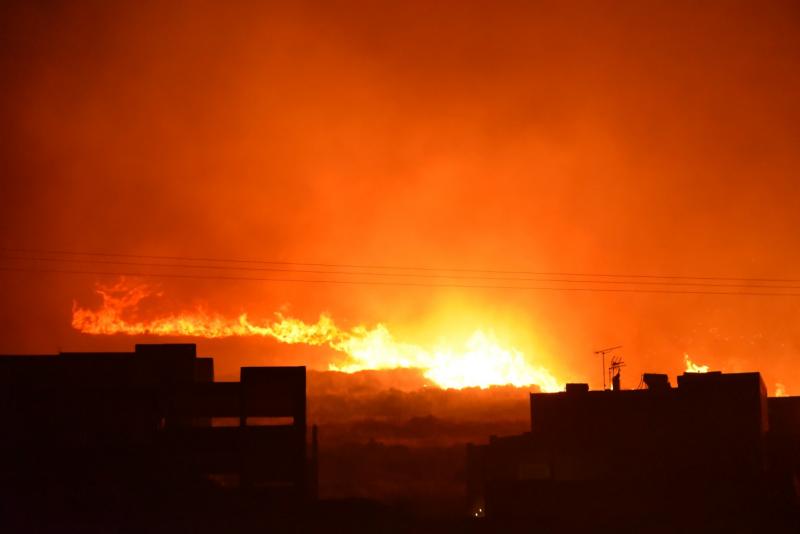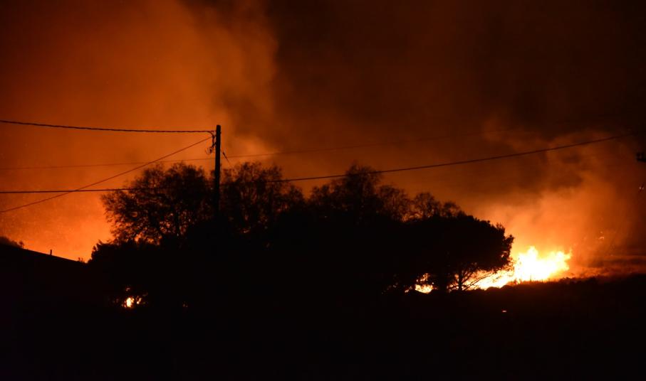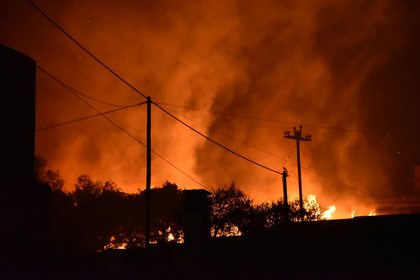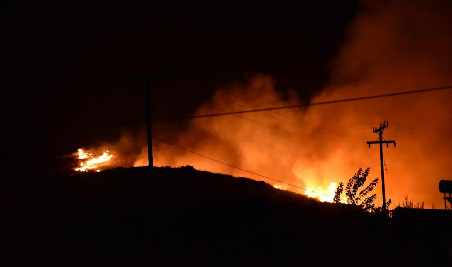 Μόλις μισή ώρα από την εκδήλωση της φωτιάς οι φλόγες είχαν ανέβει σε όλη την πλαγιά του λόφου και προχωρούσαν με μεγάλη ορμή, συνεχίζοντας να απειλεί κατοικίες, στις οποίες και προκλήθηκαν ζημιές.